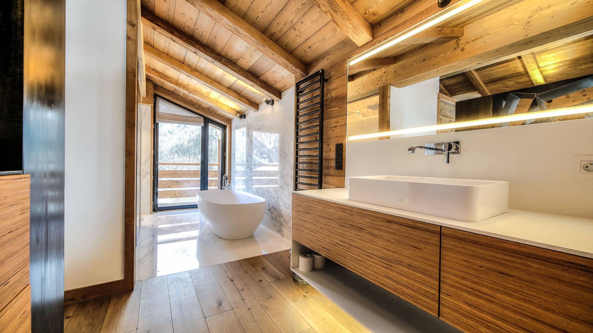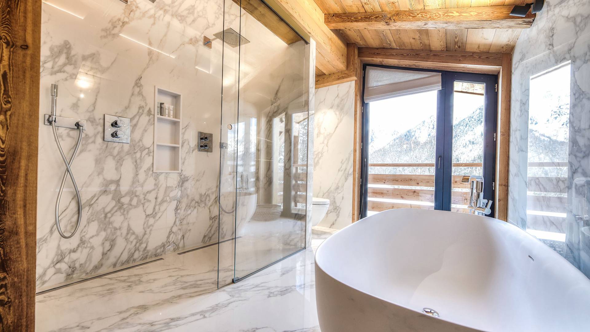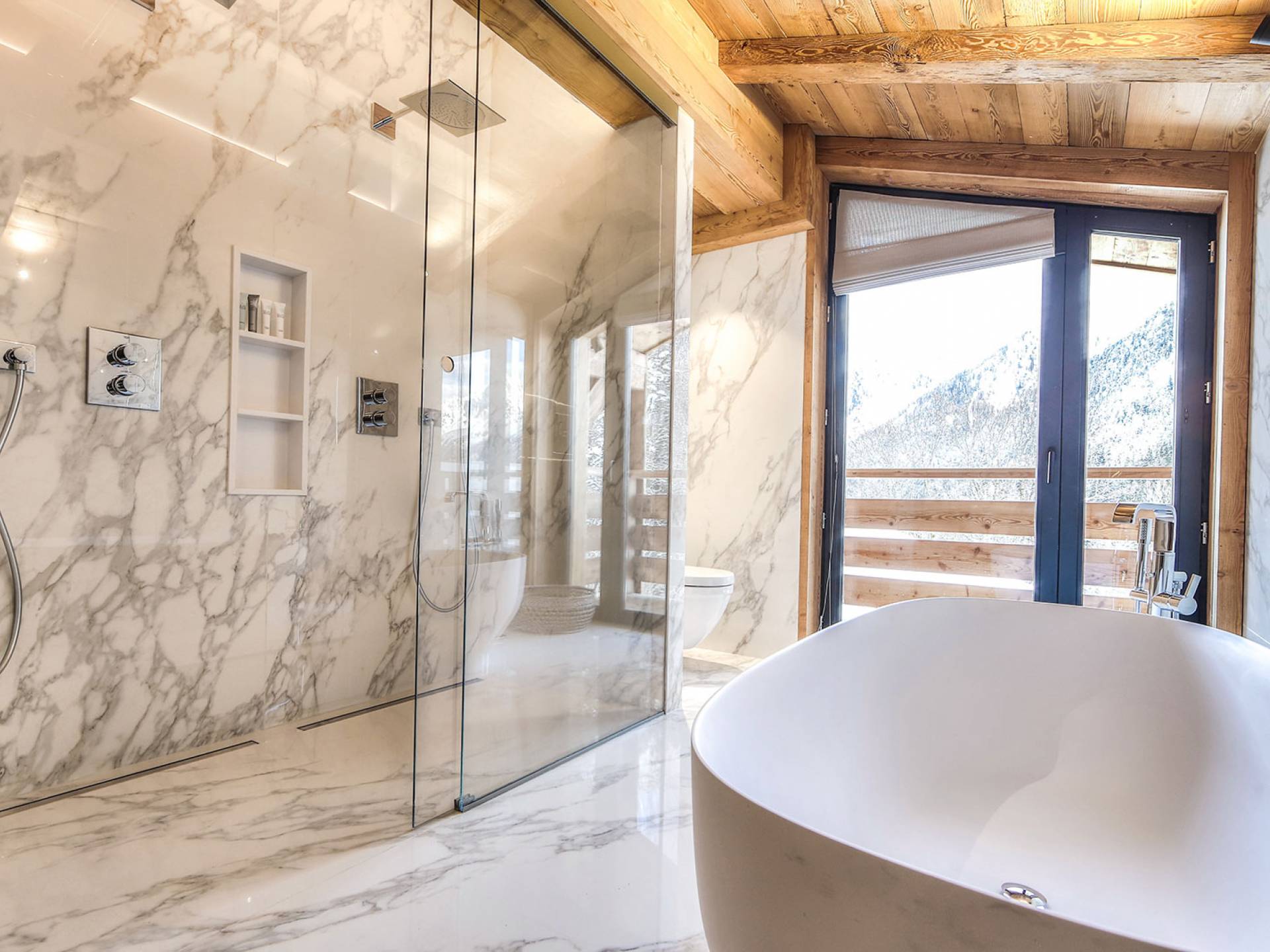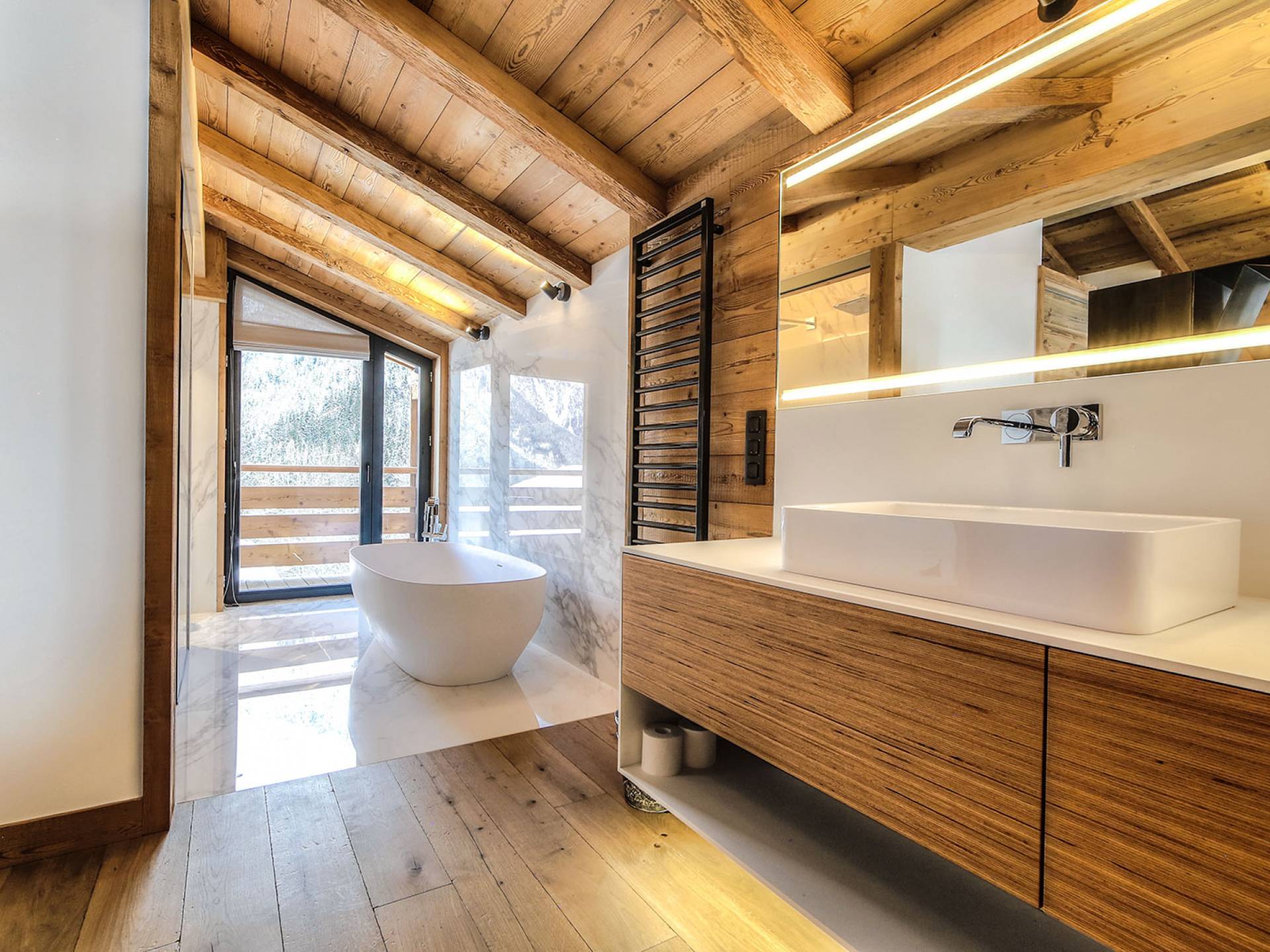 Chalet Kuma Chamonix est un chalet skis aux pieds à l'architecture vraiment unique avec sa suite parentale opulente, des vues incroyables et un bel espace spa comprenant un sauna, un hammam et une piscine.