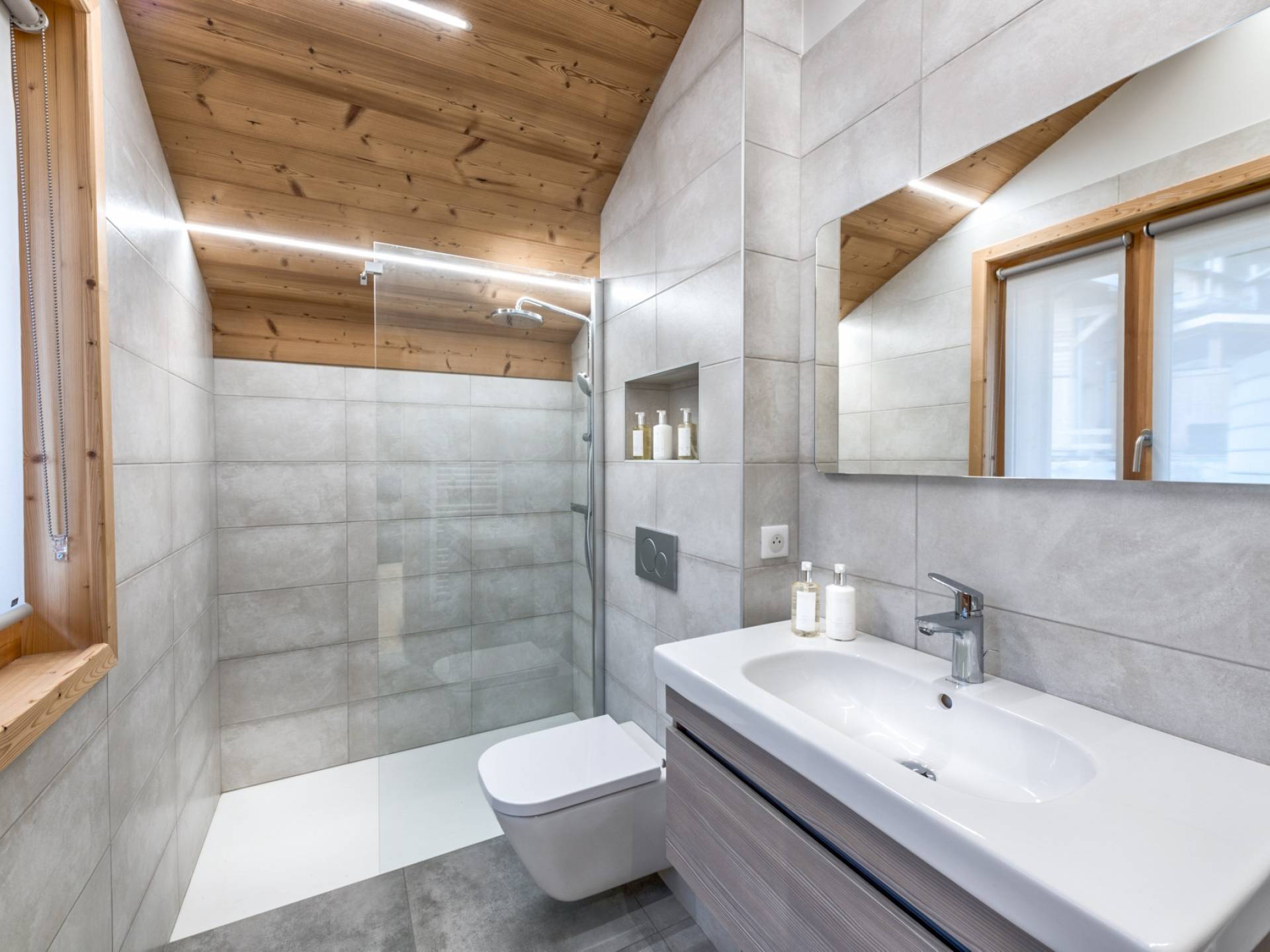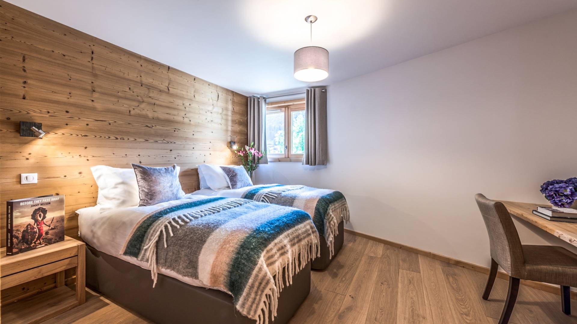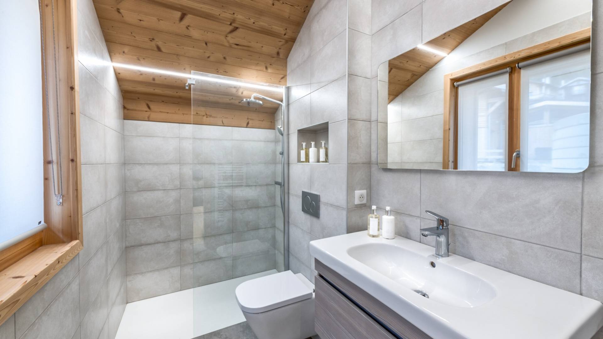 Au niveau inférieur du chalet, il y a deux chambres, une salle de cinéma et une buanderie. Avec ses plafonniers scintillants et sa télévision UK Sky, la salle de cinéma est parfaite pour se détendre et regarder un film après une journée à la montagne. Le canapé ici est convertible offrant des couchages flexibles pour les invités et peut être configuré en lit double si nécessaire. Les chambres du rez-de-chaussée peuvent toutes être aménagées en lits jumeaux ou en super king et chacune a sa propre salle de douche attenante. La buanderie est un espace d'accueil et pratique pour les familles et dispose d'un lave-linge et d'un sèche-linge à disposition des clients.