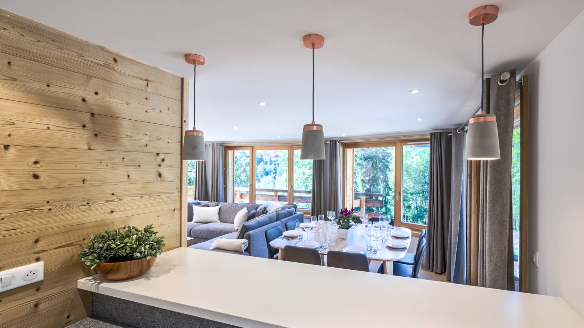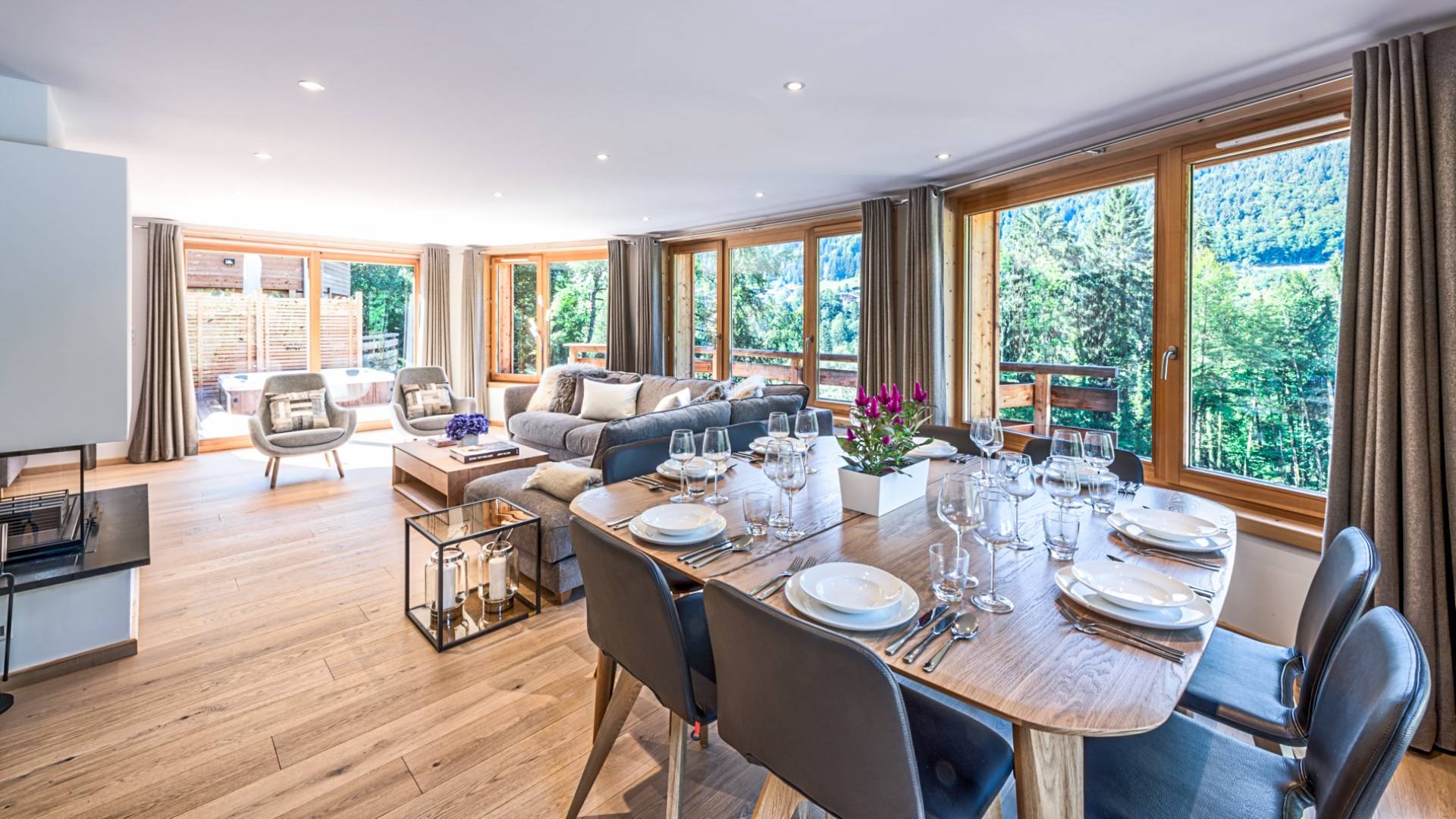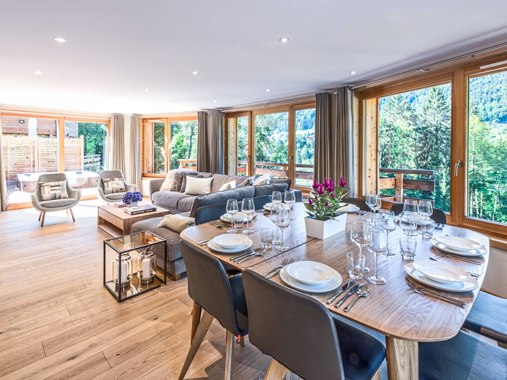 Le chalet Lorne Morzine est réparti sur trois étages spacieux et dispose d'une terrasse extérieure offrant une vue imprenable sur la vallée jusqu'aux pentes du Pleney et jusqu'au sommet du Roc D'enfer et le magnifique village alpin de la Côte d'Abroz. Le niveau d'entrée s'ouvre sur un beau salon et salle à manger à aire ouverte. Il y a deux coins salons permettant aux clients de profiter d'une soirée autour de la cheminée ou de se détendre devant la télévision. La salle à manger et la cuisine sont situées à ce niveau afin que les clients puissent profiter de la vue à travers les baies vitrées qui donnent sur la forêt. Depuis le salon, une terrasse fantastique est baignée de soleil tout au long de la journée. Parfait pour les repas en plein air en été ou pour déguster une coupe de champagne dans le bain à remous entouré de neige en hiver !
