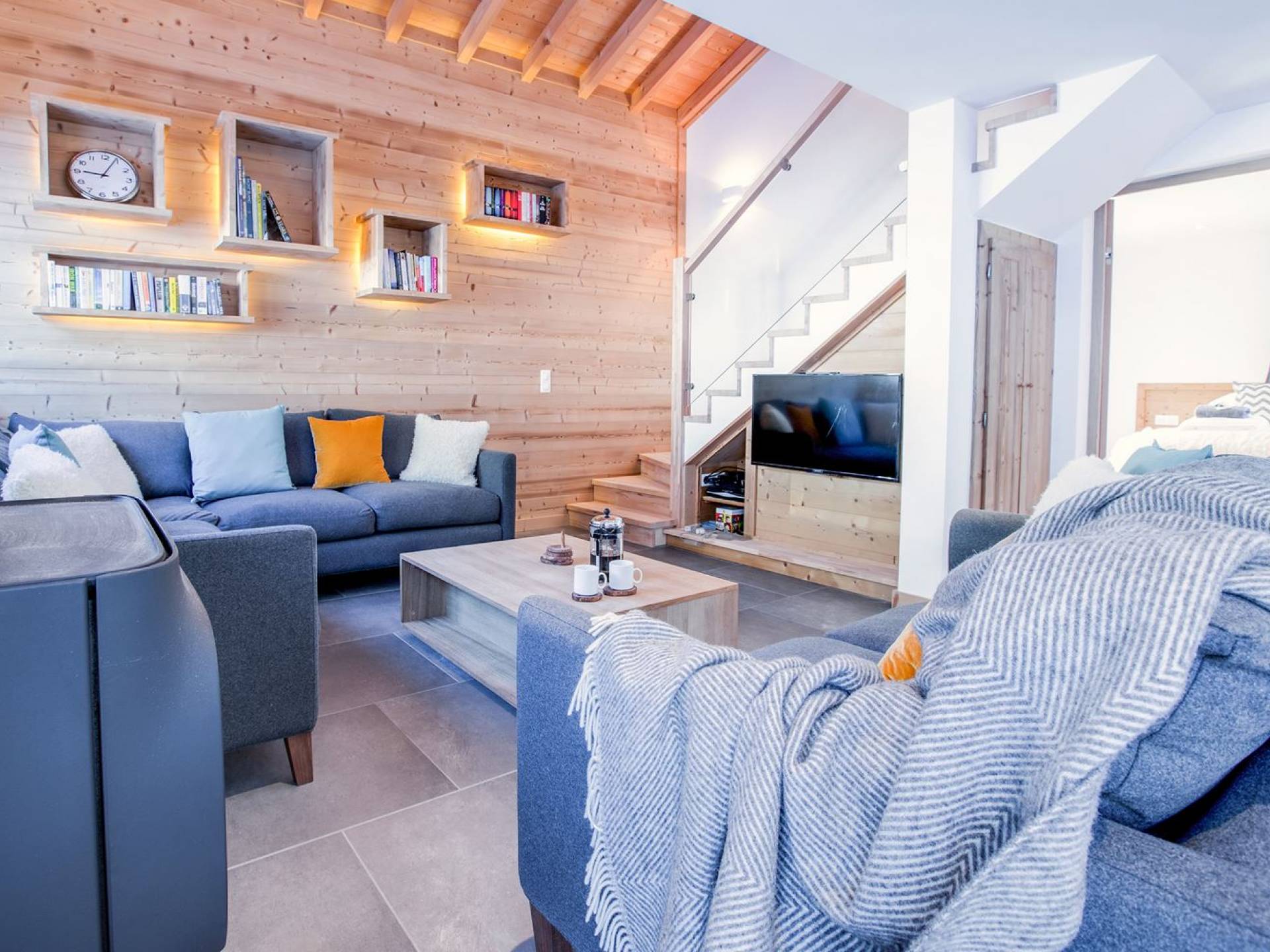 Dans le salon d'en face, se trouve un superbe poêle à bois Jogul, un joli point central à apprécier tout en se relaxant sur les canapés confortables. Vous pouvez également rester connecté en utilisant les nombreuses installations technologiques du chalet ; Wifi, Sky Smart TV, système audio Sonos, Nintendo Wii et Apple TV.