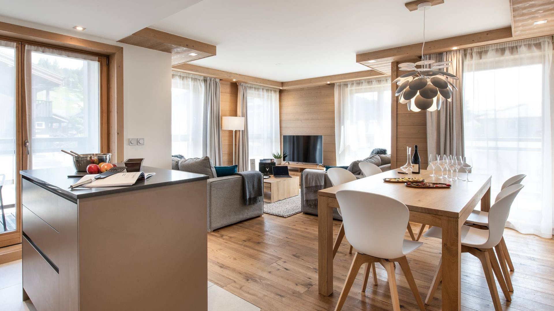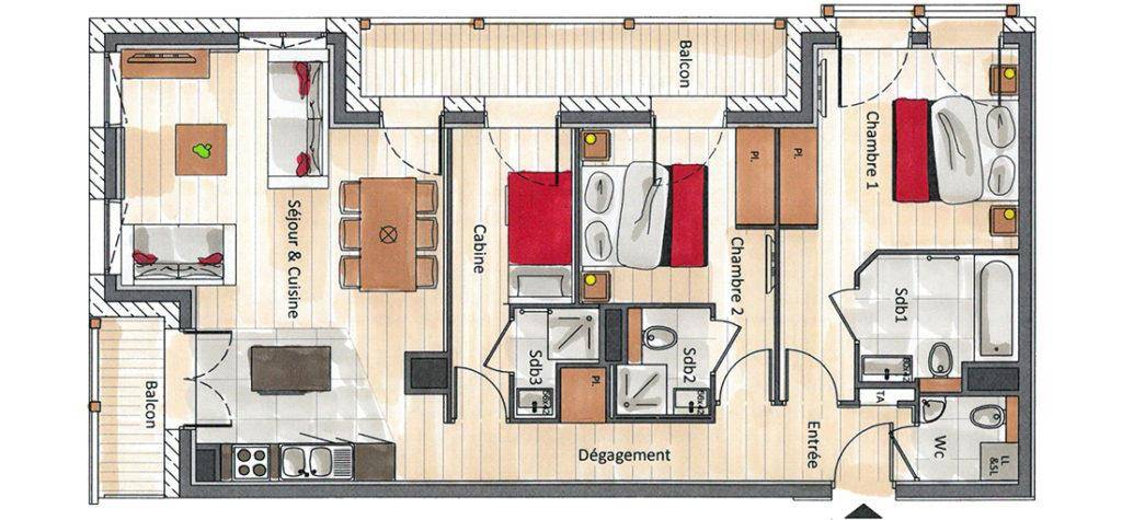 L'Appartement A202, situé au 2ème étage de la Résidence Annapurna Les Gets, d'une superficie de 82 m², est parfait pour accueillir 6 personnes. Cet appartement dispose de deux chambres avec un lit double, d'une chambre cabine avec un lit superposé et de trois salles de bains. Le salon avec une télévision dispose également d'un îlot de cuisine entièrement équipé et d'un balcon. Pendant vos vacances, vous pourrez bénéficier d'une place de parking dans le parking privé, d'un casier à skis et d'un accès Wifi.