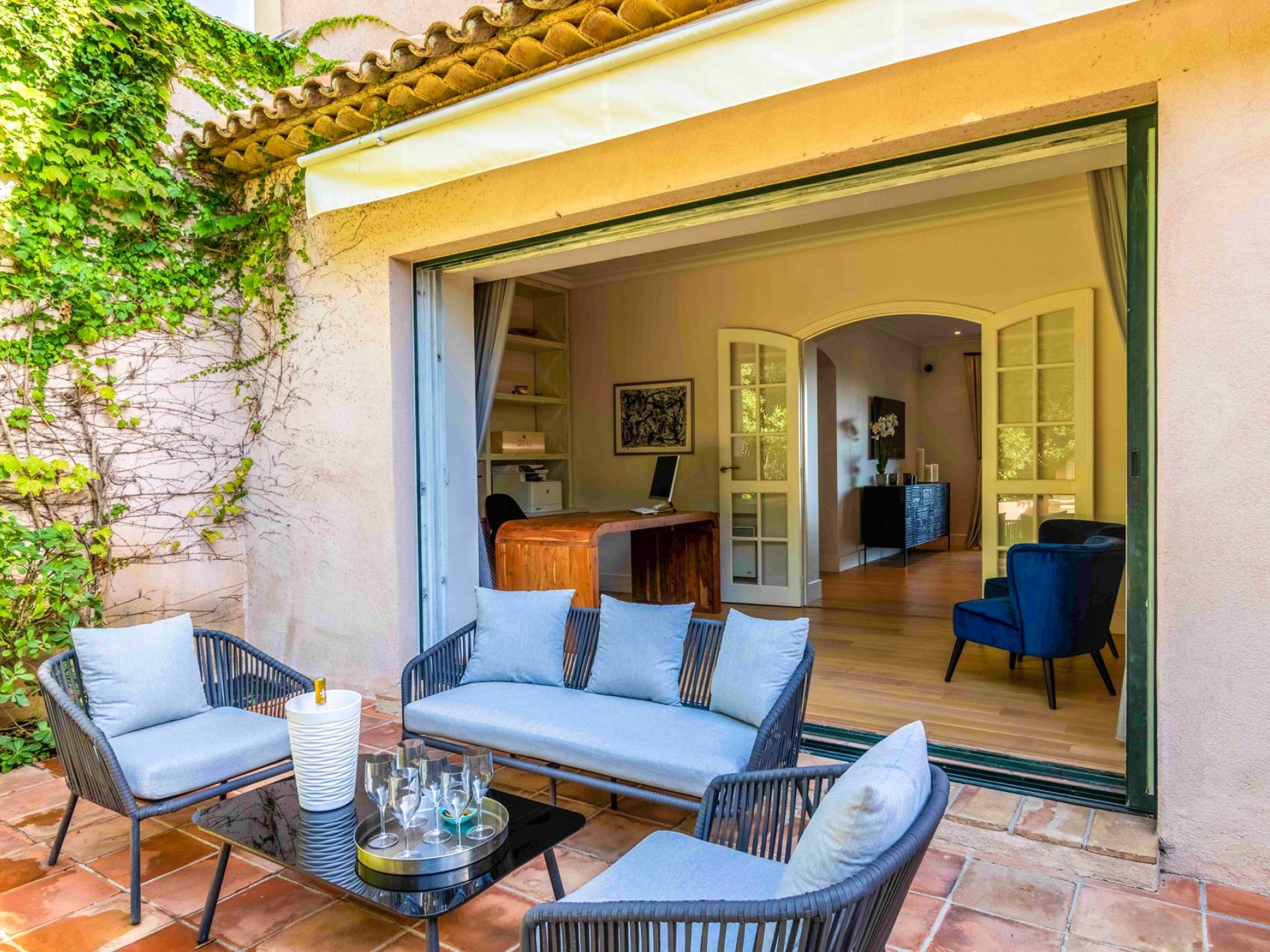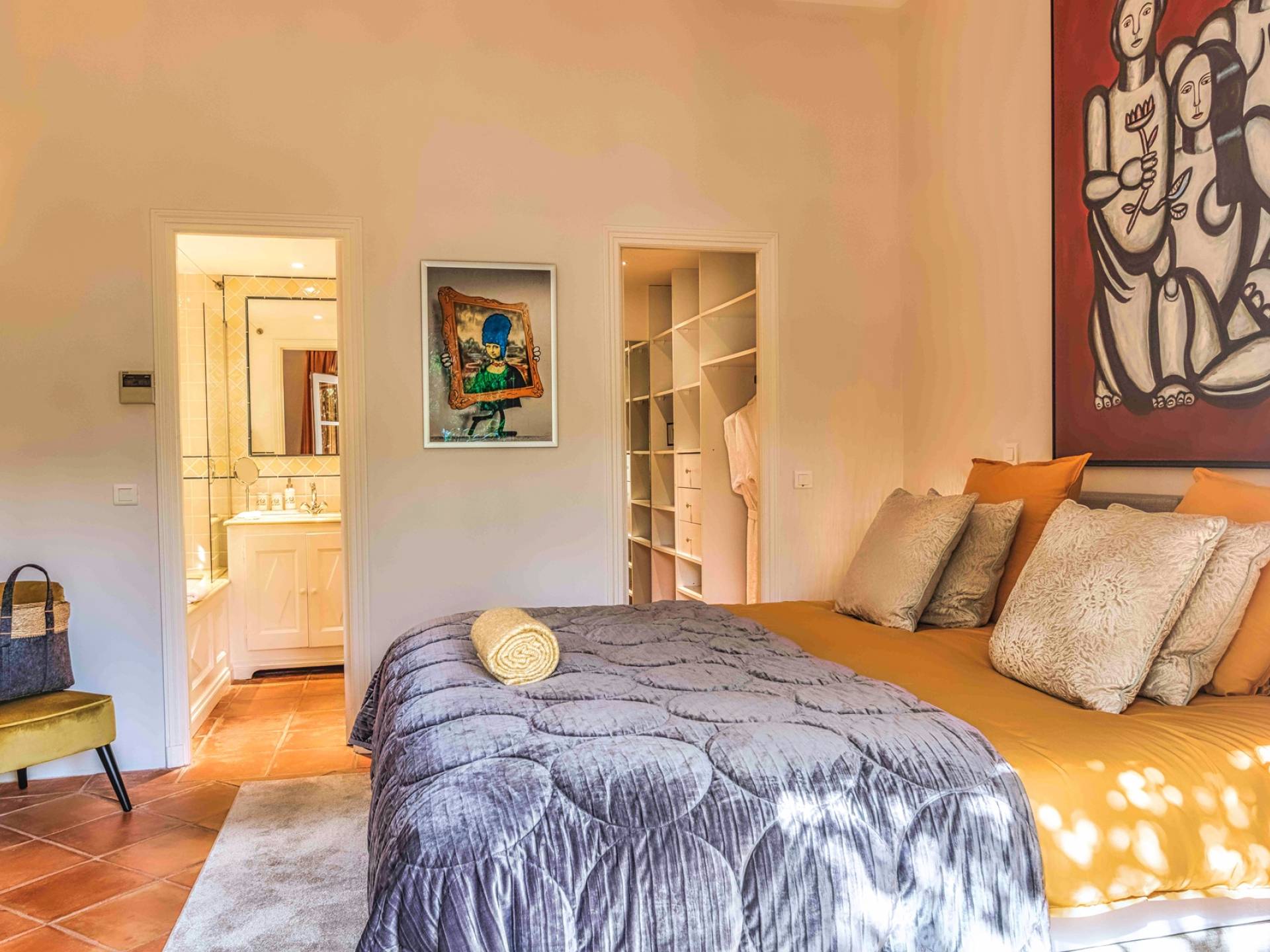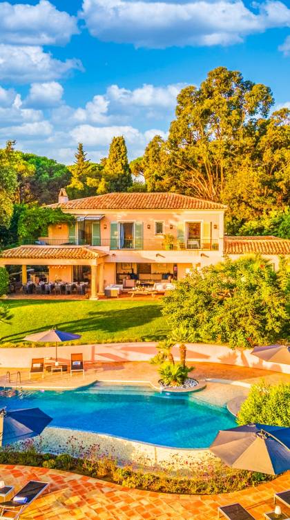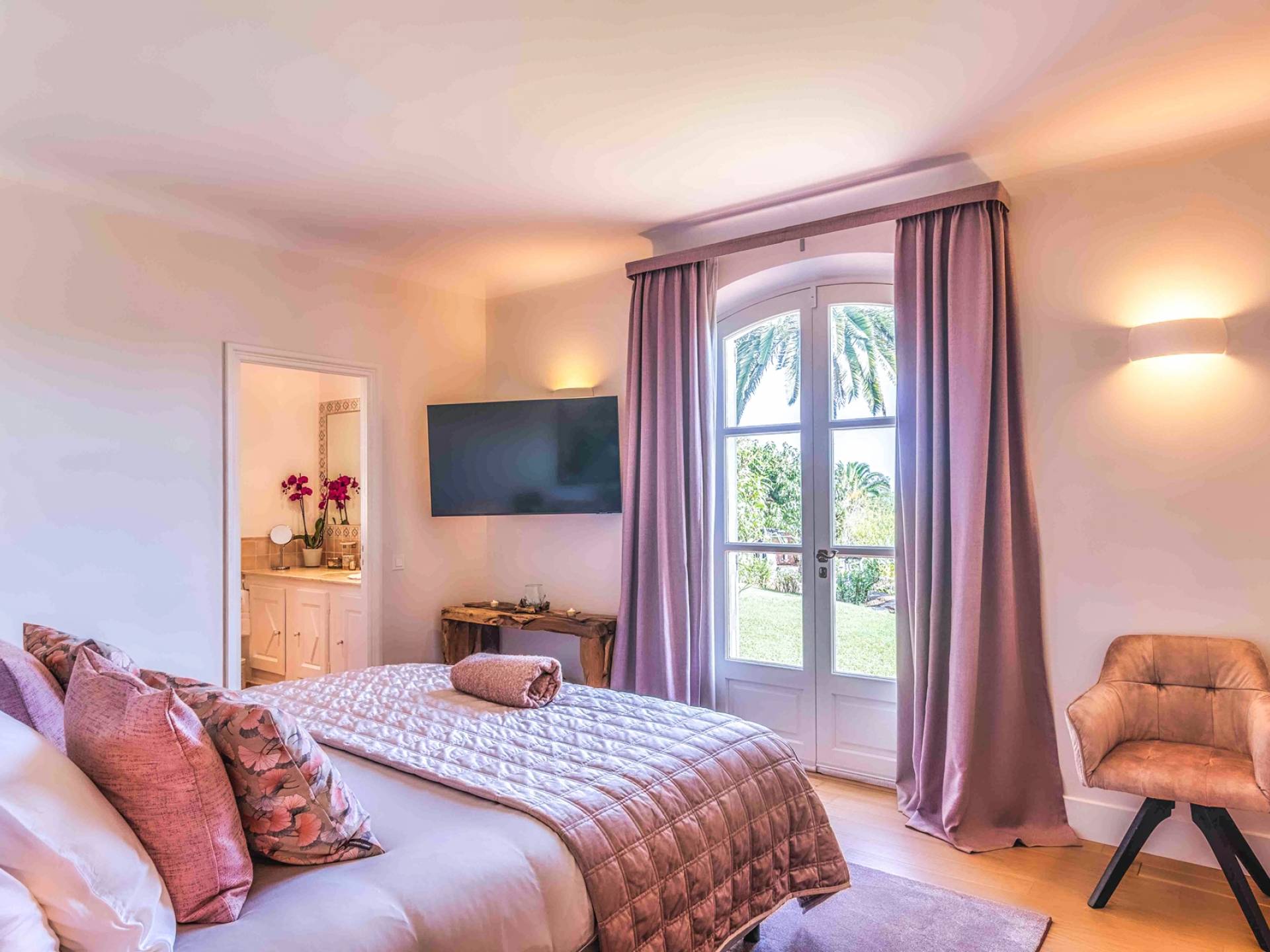 Hameau provençal à la rencontre de la Provence Chemin de Style et Vue Mer à couper le souffle sur 4 800m2 de terrain. Composée de la villa principale (4 chambres, 8 invités), d'une maison d'amis (1 chambre indépendante, 2 invités), et d'une maison de gardien (2 pers.) le tout sur 320 m2 habitables (250 m2 réservés aux VIP) + 200 m2 d'espaces de vie extérieurs (terrasses couvertes, pergola, ramade, et balcons) sur 4 800 m2 de terrain arboré et paysager d'essences méditerranéennes surplombant les vignobles de la colline de Belle Isnarde (vue mer dominante sur la Baie des Canoubiers et Château Borelli). Idéalement Situé A mi-chemin entre la Place des Lices et la plage de Tahiti (5 min en voiture), et à 200 m du Château de la Messardière Palace 5.