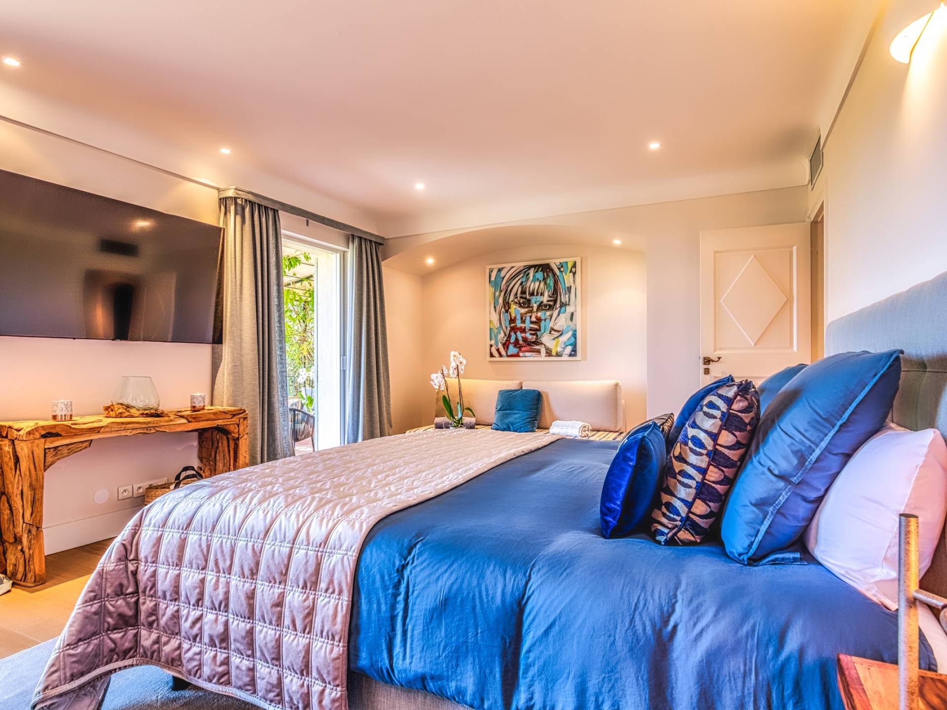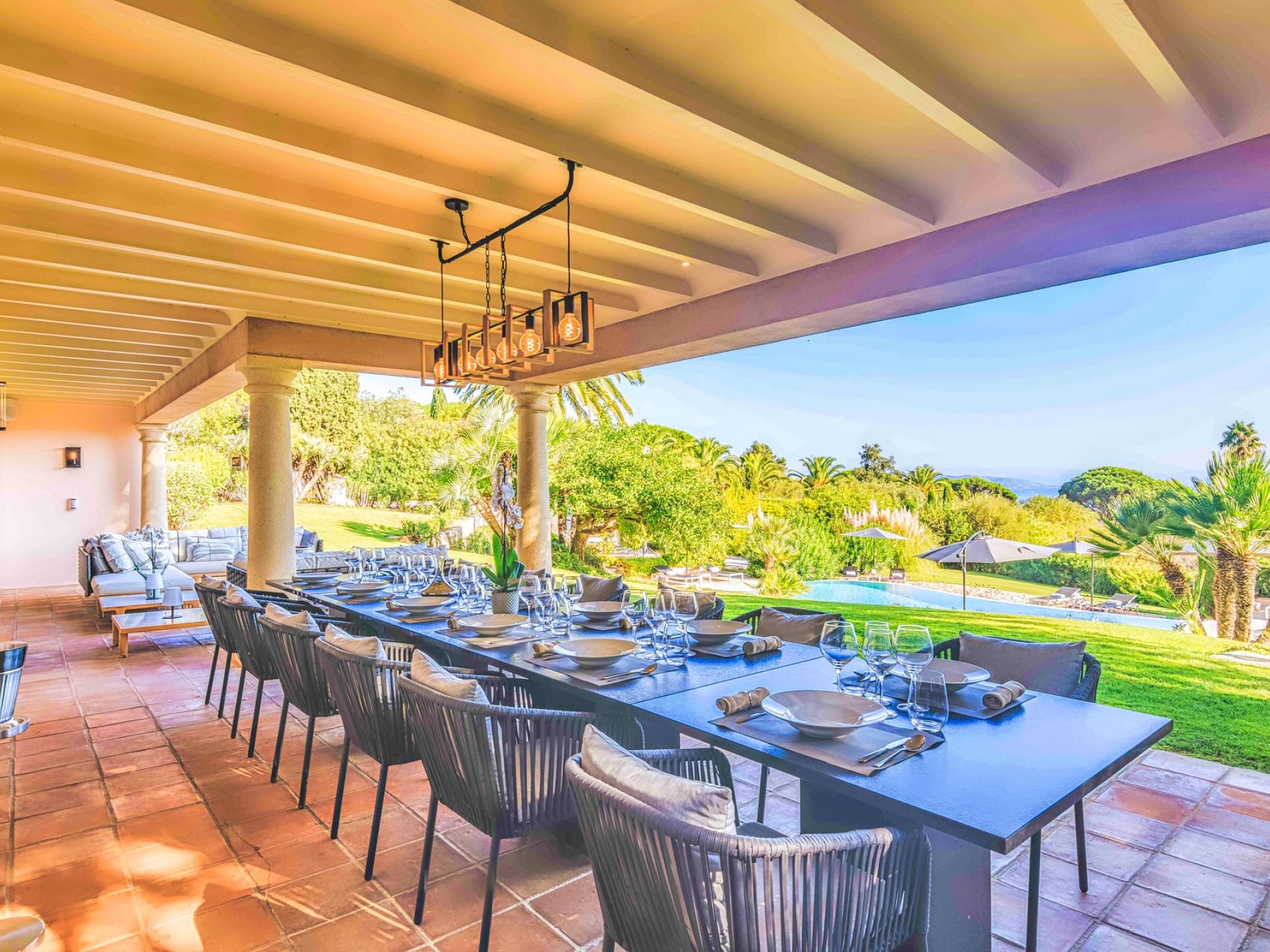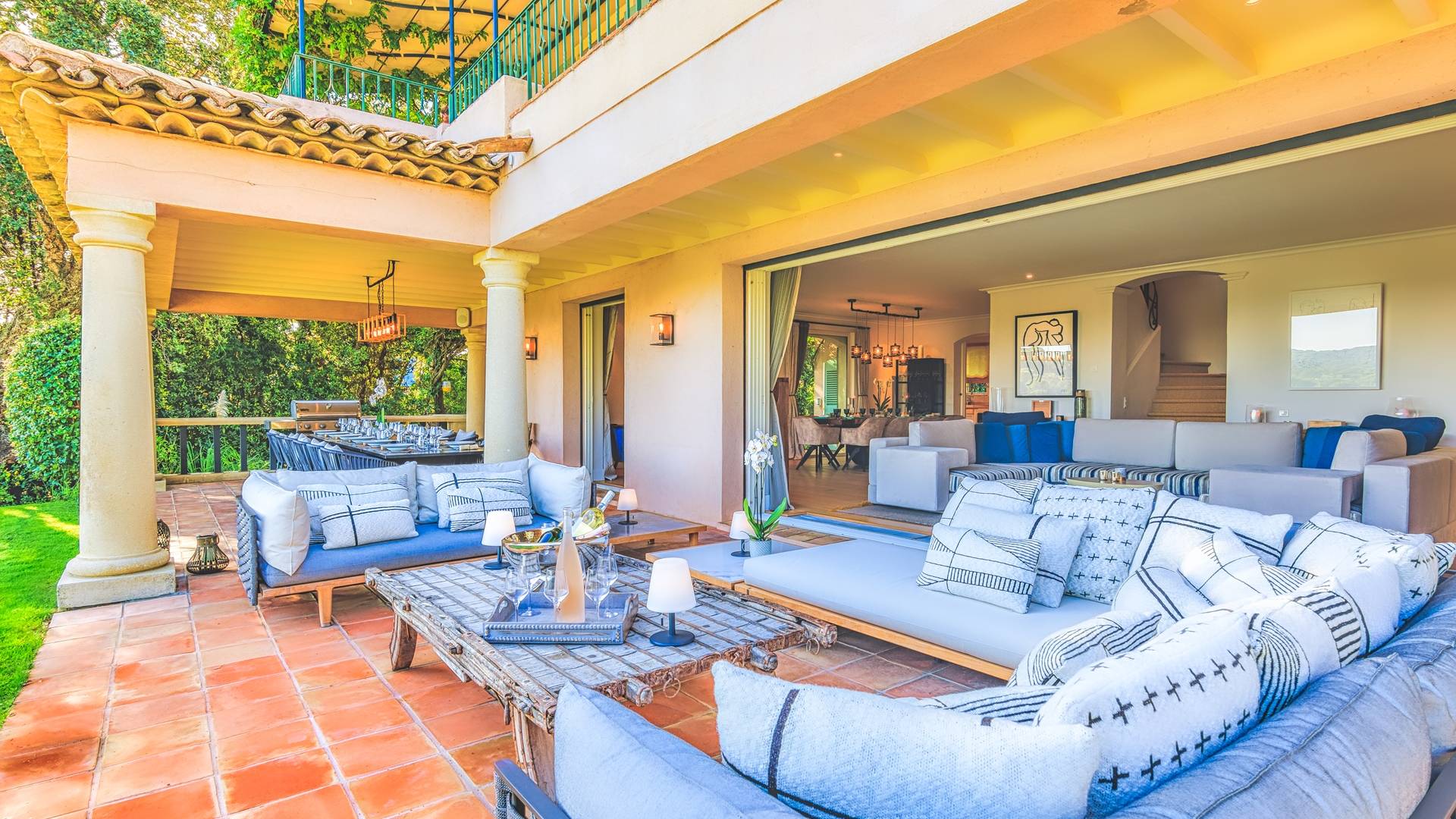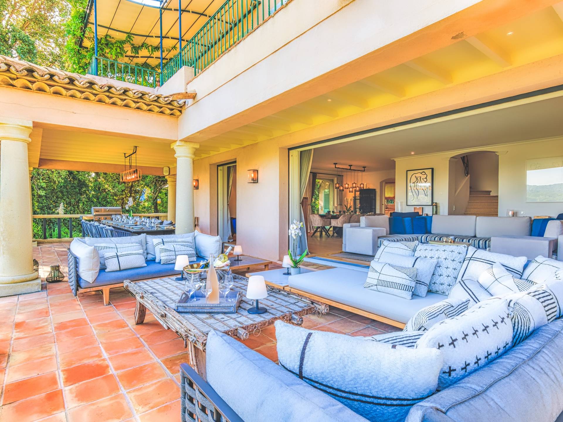 Hameau provençal à la rencontre de la Provence Chemin de Style et Vue Mer à couper le souffle sur 4 800m2 de terrain. Composée de la villa principale (4 chambres, 8 invités), d'une maison d'amis (1 chambre indépendante, 2 invités), et d'une maison de gardien (2 pers.) le tout sur 320 m2 habitables (250 m2 réservés aux VIP) + 200 m2 d'espaces de vie extérieurs (terrasses couvertes, pergola, ramade, et balcons) sur 4 800 m2 de terrain arboré et paysager d'essences méditerranéennes surplombant les vignobles de la colline de Belle Isnarde (vue mer dominante sur la Baie des Canoubiers et Château Borelli). Idéalement Situé A mi-chemin entre la Place des Lices et la plage de Tahiti (5 min en voiture), et à 200 m du Château de la Messardière Palace 5.