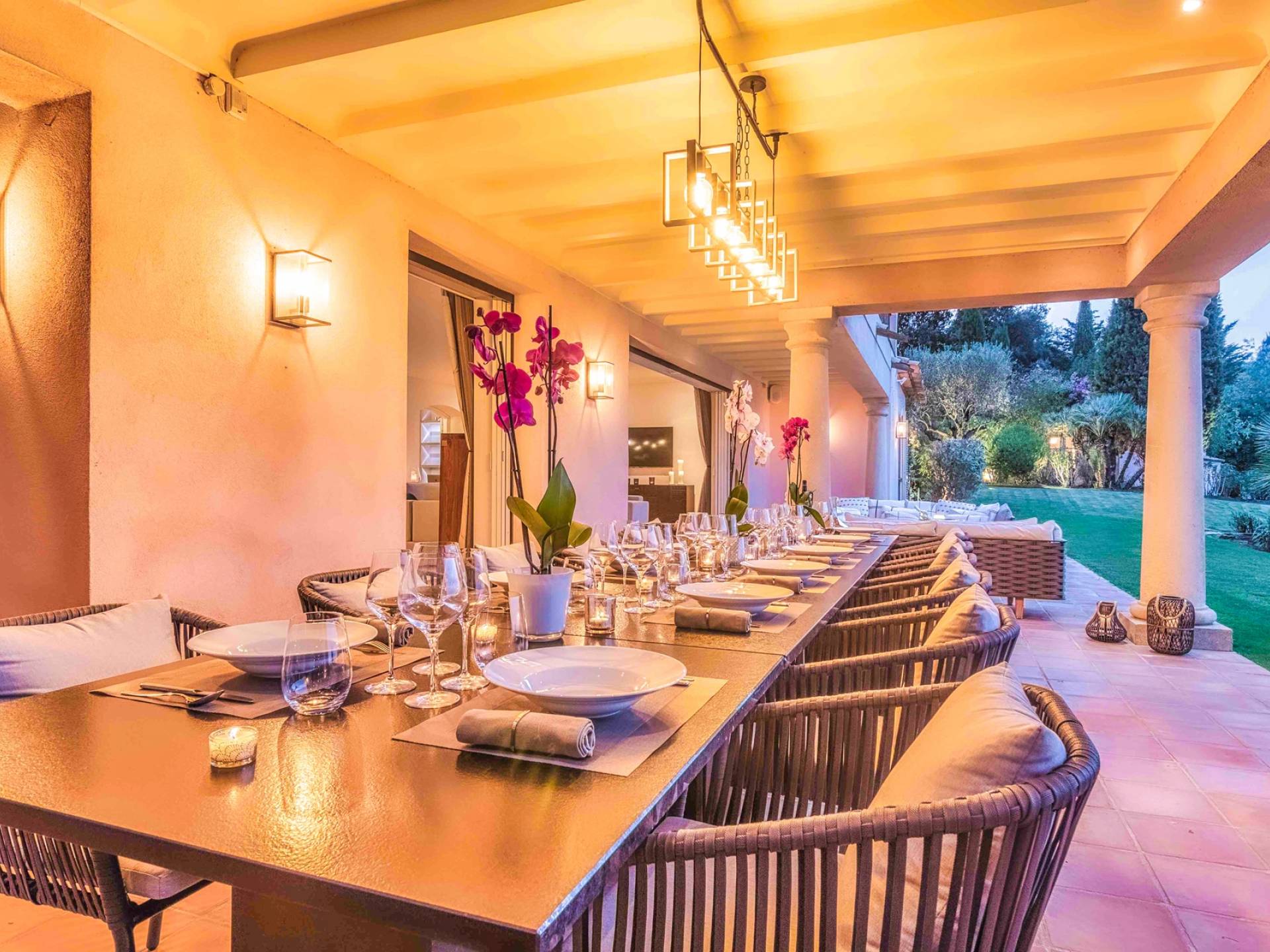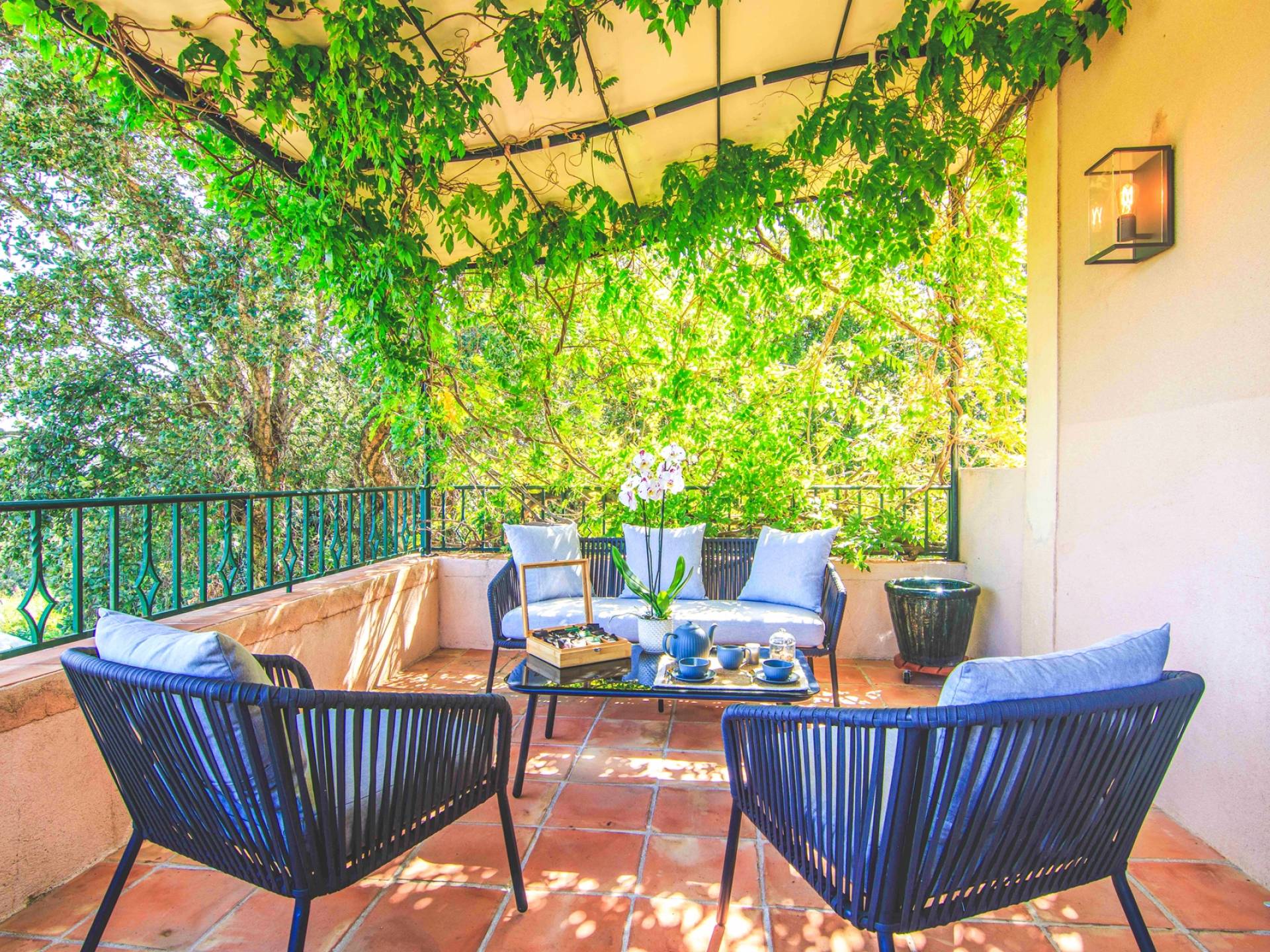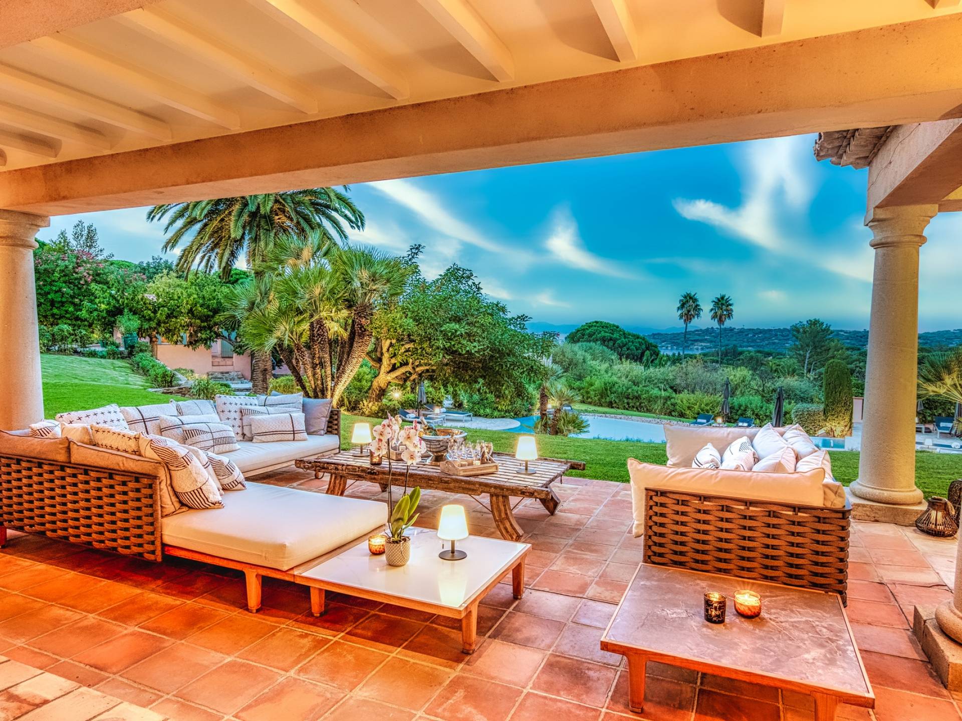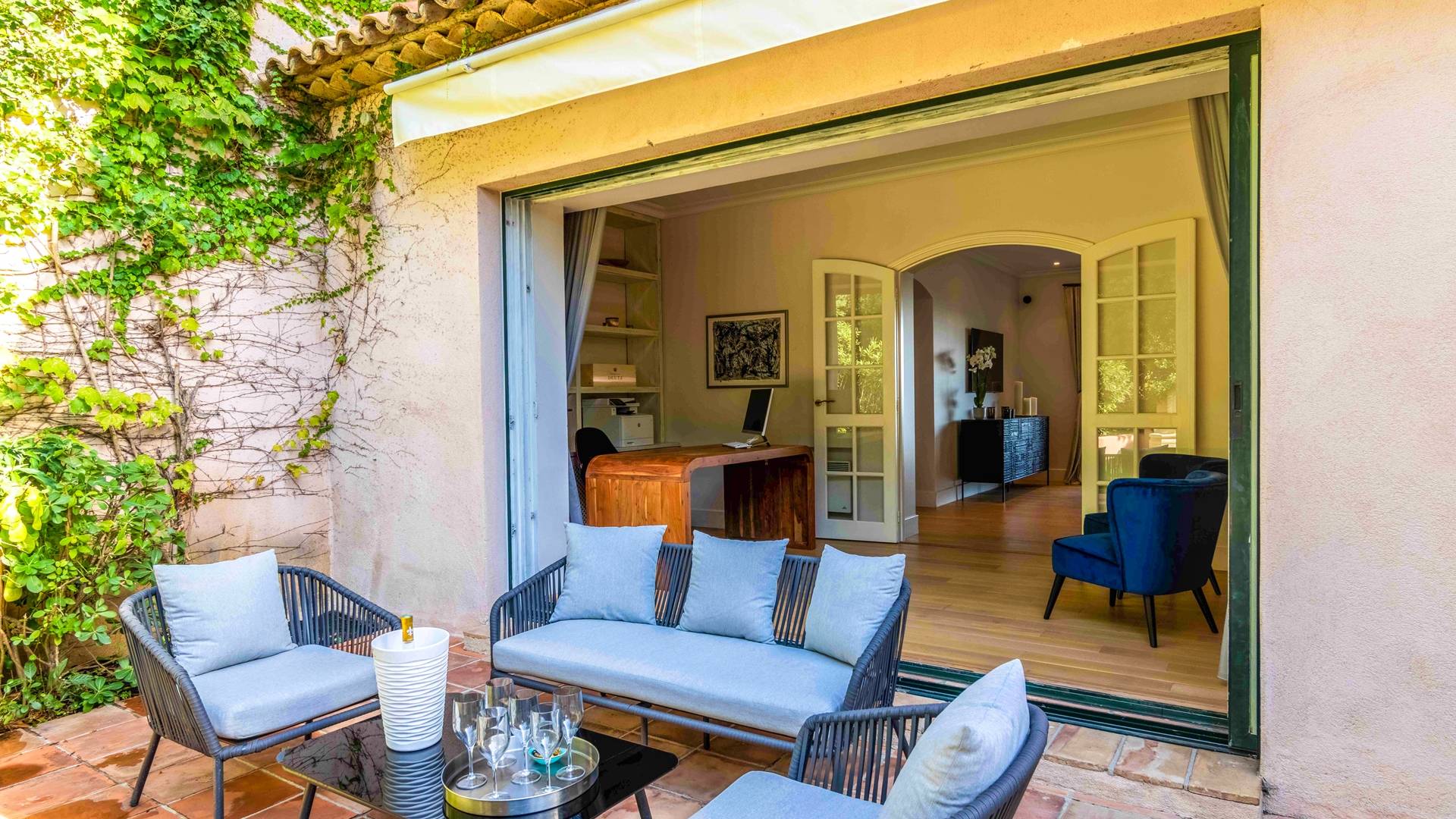 Hameau provençal à la rencontre de la Provence Chemin de Style et Vue Mer à couper le souffle sur 4 800m2 de terrain. Composée de la villa principale (4 chambres, 8 invités), d'une maison d'amis (1 chambre indépendante, 2 invités), et d'une maison de gardien (2 pers.) le tout sur 320 m2 habitables (250 m2 réservés aux VIP) + 200 m2 d'espaces de vie extérieurs (terrasses couvertes, pergola, ramade, et balcons) sur 4 800 m2 de terrain arboré et paysager d'essences méditerranéennes surplombant les vignobles de la colline de Belle Isnarde (vue mer dominante sur la Baie des Canoubiers et Château Borelli). Idéalement Situé A mi-chemin entre la Place des Lices et la plage de Tahiti (5 min en voiture), et à 200 m du Château de la Messardière Palace 5.