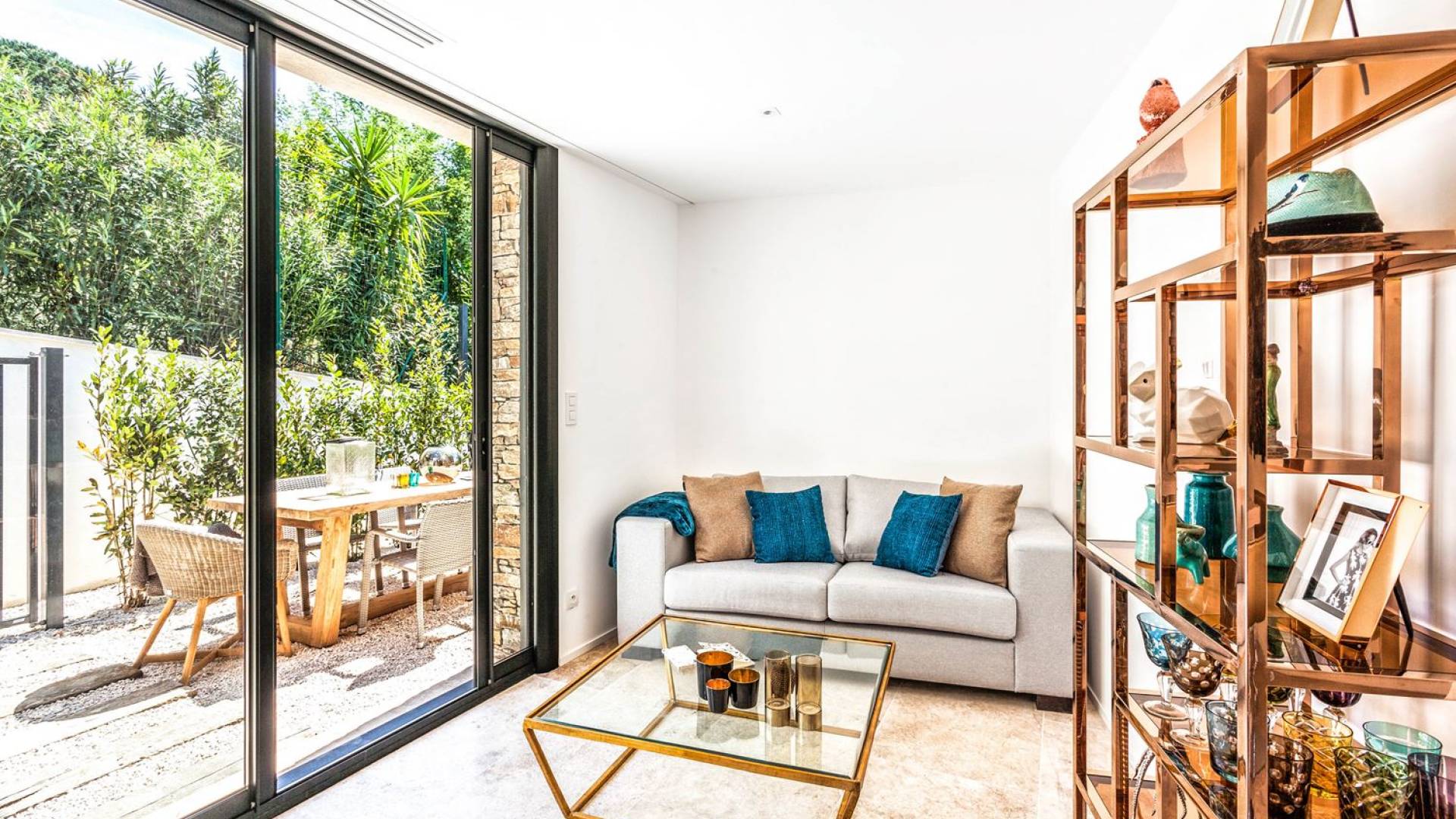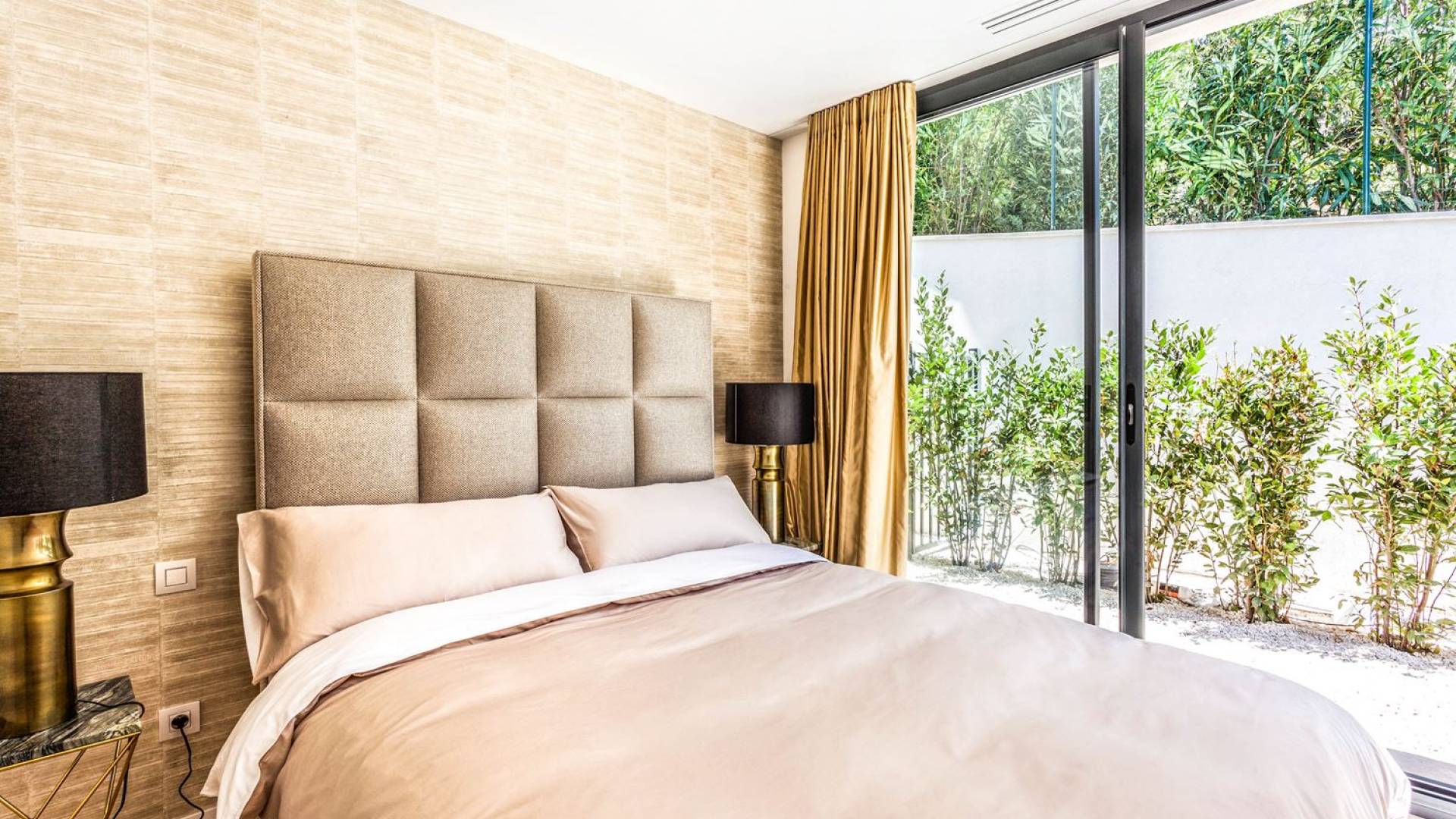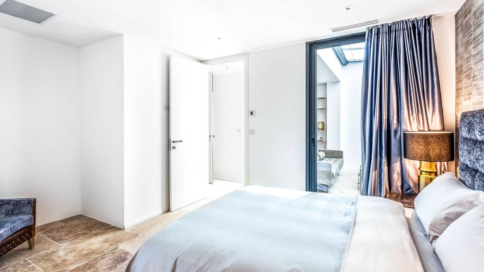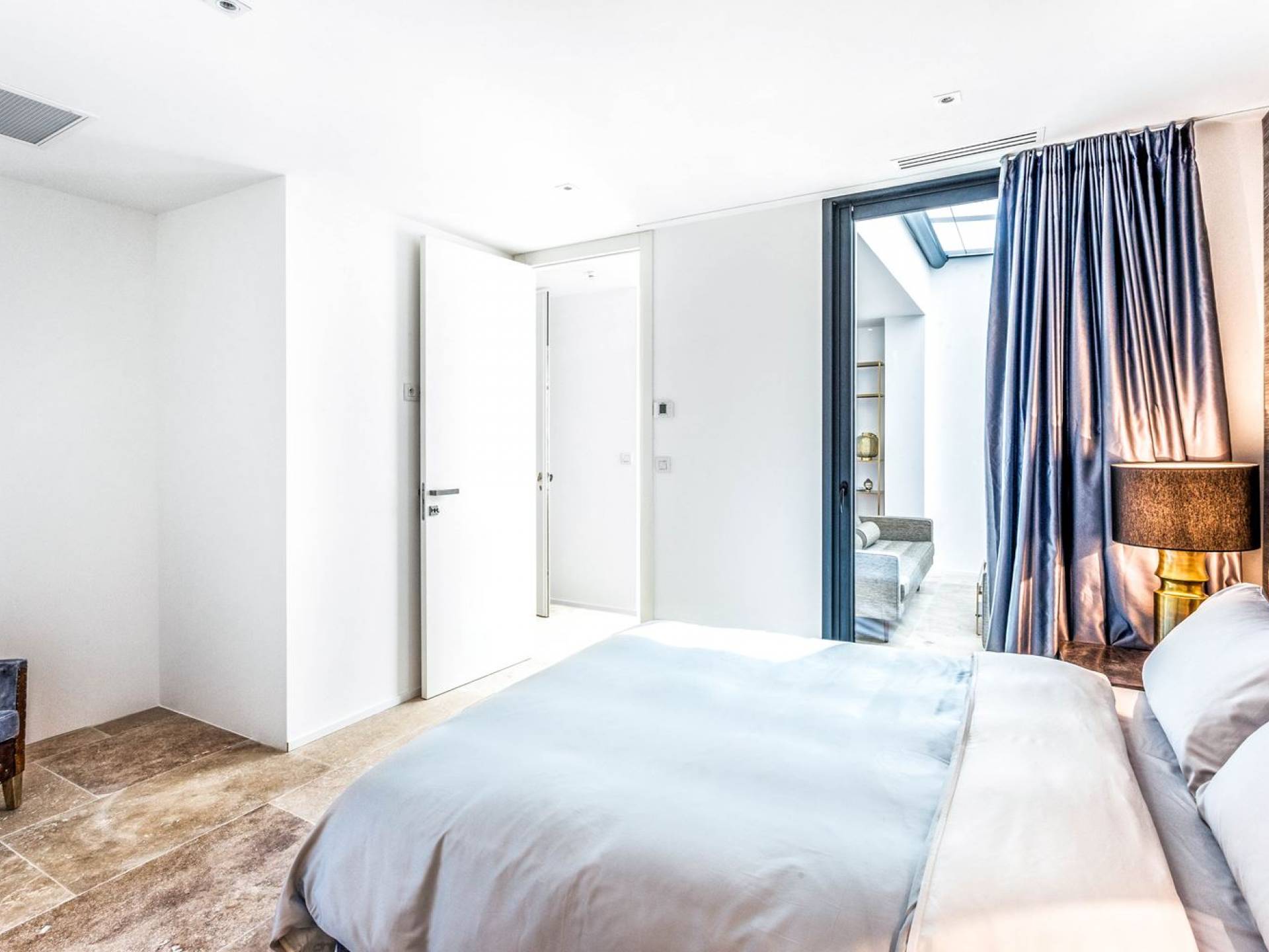 Au premier étage se trouve une immense chambre principale avec cheminée, douche et baignoire et deux autres chambres avec salles de bains. Toutes les chambres ont une vue imprenable sur l'océan et s'ouvrent sur une terrasse avec transats. À l'étage inférieur, vous trouverez une salle de cinéma, deux autres chambres (dont une avec un immense patio avec un olivier) et une buanderie.