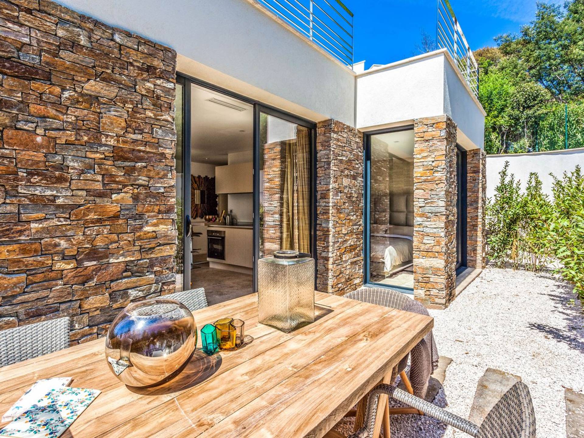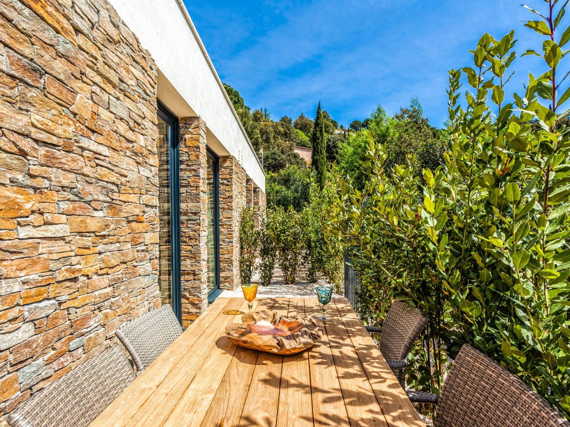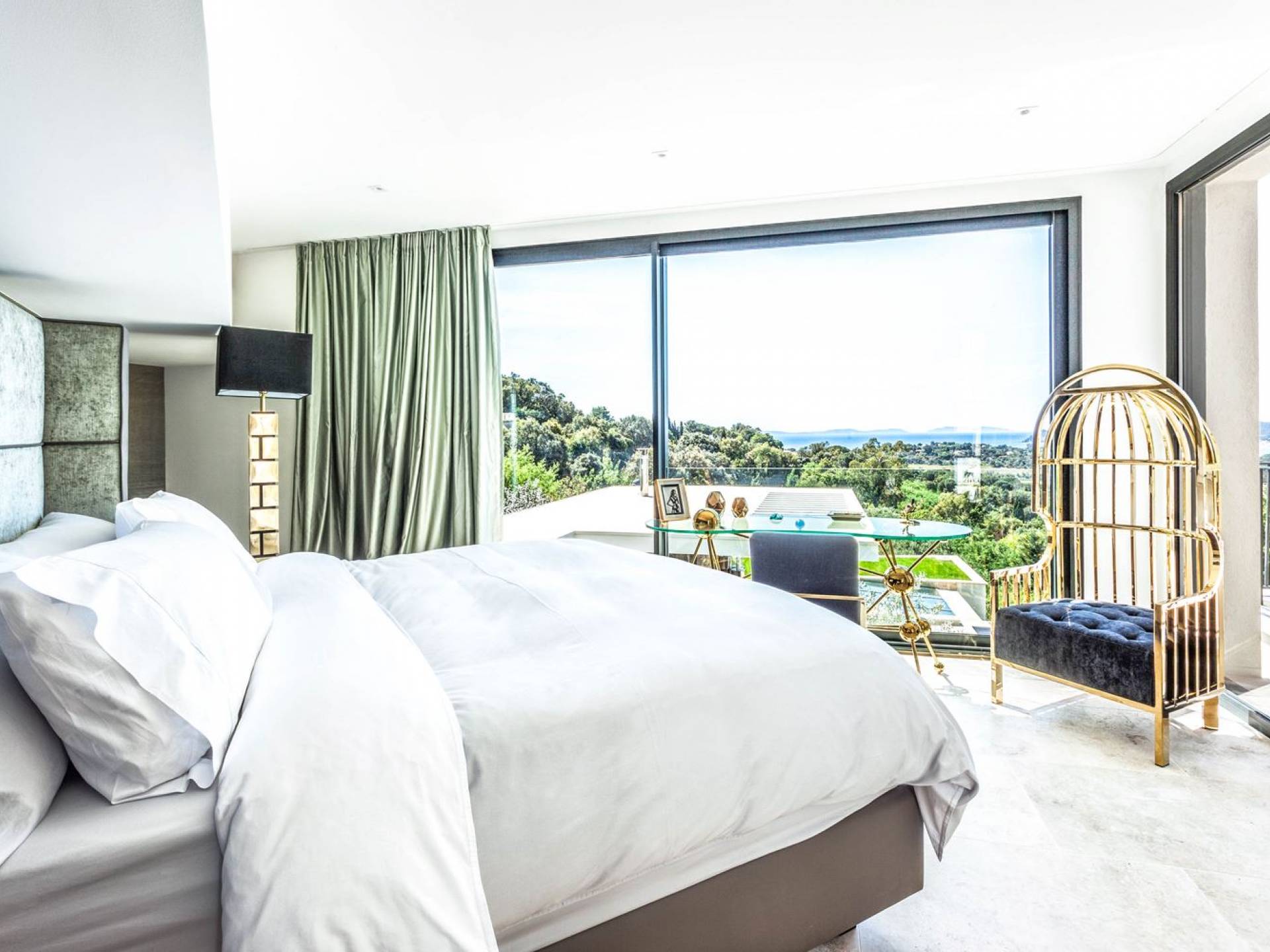 L'espace extérieur est tout aussi magnifique et se compose d'une piscine à débordement chauffée et d'un immense jacuzzi. Le pool house est équipé d'un barbecue et l'immense table en bois offre la plus belle vue sur l'océan et les Iles d'Or.