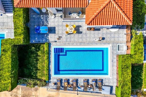 Villa bleue à Elio Villas Hersonissos - Vivez l'évasion estivale ultime dans cette villa perchée à Hersonissos, où les vues panoramiques sur la mer Égée rencontrent un style sans effort. Idéal pour les familles et les groupes, à quelques minutes de la ville animée d'Hersonissos et des plages et attractions les plus emblématiques de Crète.