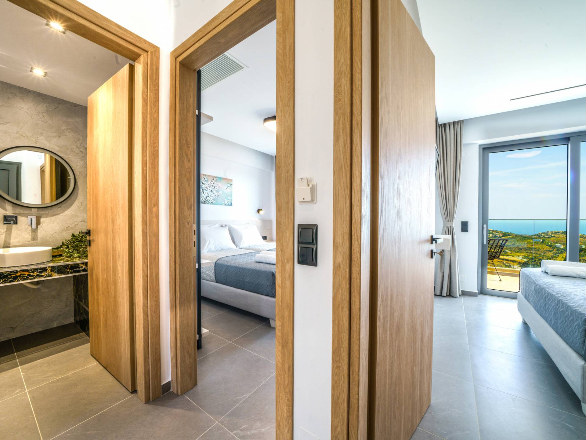 Quand il est temps de se retirer pour la nuit, 3 chambres conçues vous attendent. Chaque chambre dispose d'un lit de 1,60 X 2,00, complété par une télévision de 32 pouces, la climatisation et une armoire pour votre confort. toutes les chambres donnent accès à un balcon et à une véranda équipée d'un coin salon confortable, vous invitant à vous réveiller chaque matin avec une vue fascinante sur la mer.