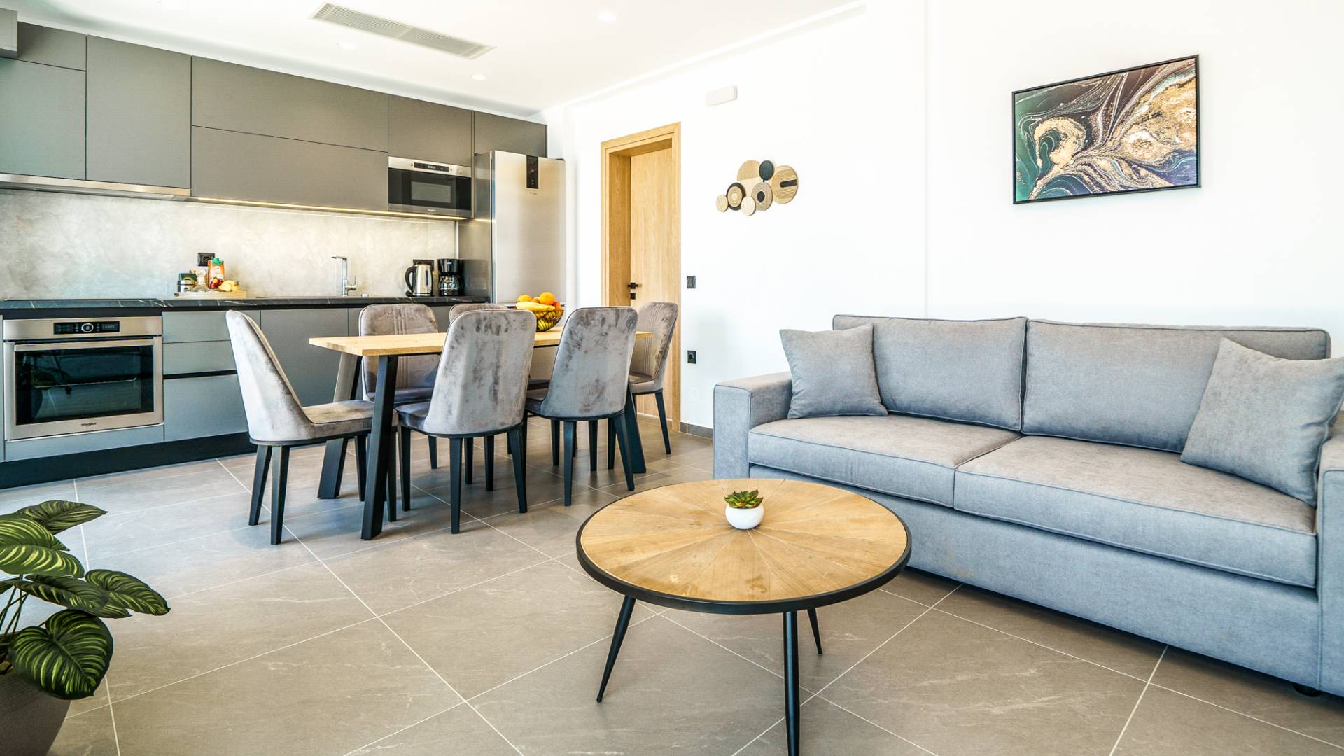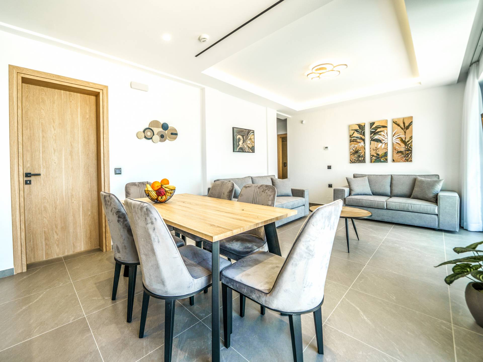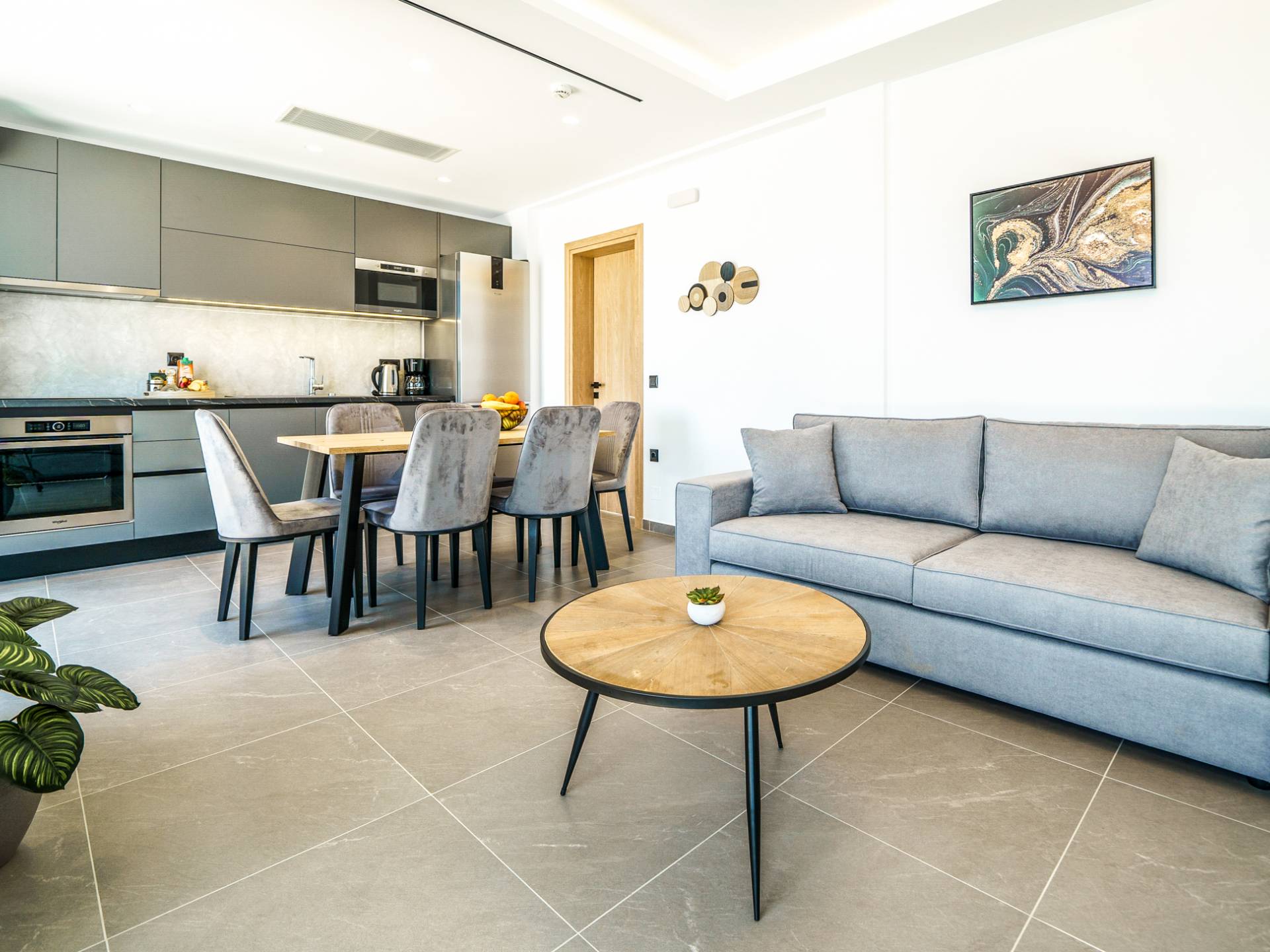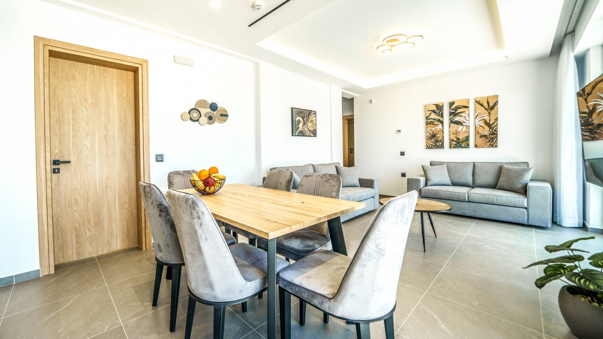 Le salon vous accueille avec un coin salon élégant avec une télévision intelligente de 50 pouces, parfait pour des soirées de détente tandis que vous explorez plus loin, vous serez enchanté par le point central du salon : un spacieux véranda offrant une vue imprenable sur la mer, vous invitant à vous prélasser dans la beauté de la nature.