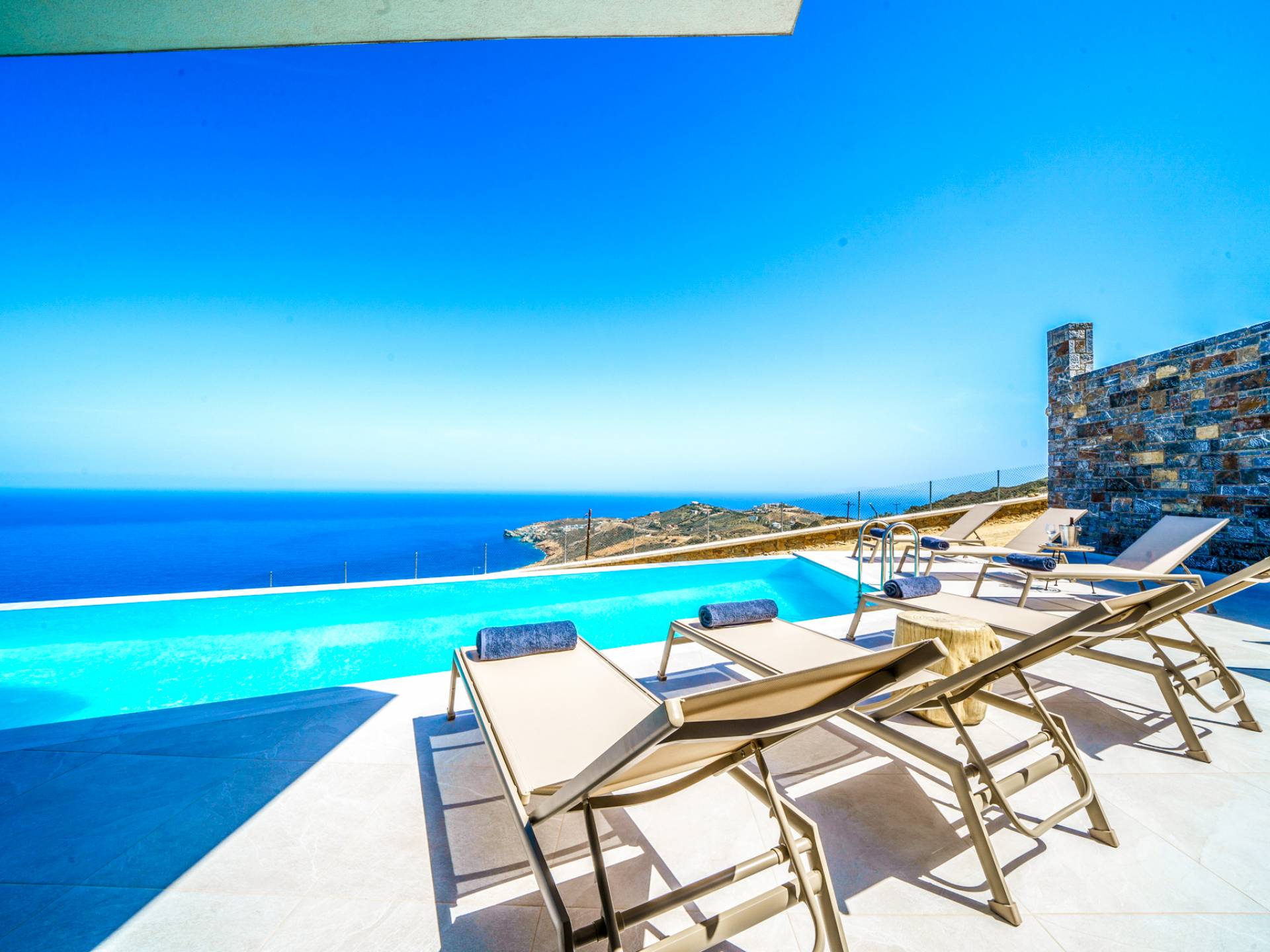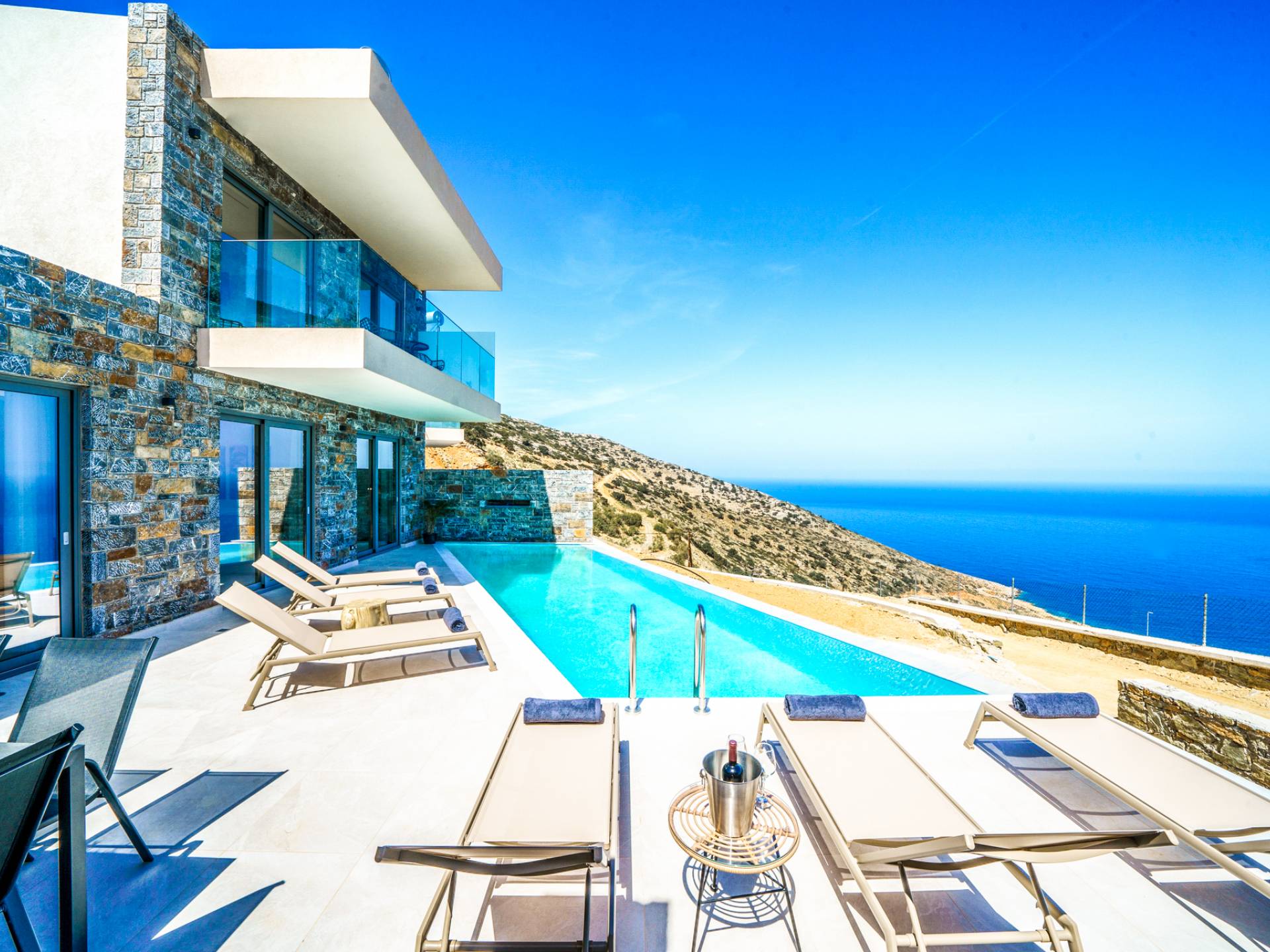 Les villas à Agia Pelagia vont du cocon romantique pour deux aux grandes maisons familiales avec plusieurs chambres, piscines privées et jardins. Certaines proposent même des services haut de gamme : chef à domicile, massages, conciergerie... pour des vacances inoubliables.
