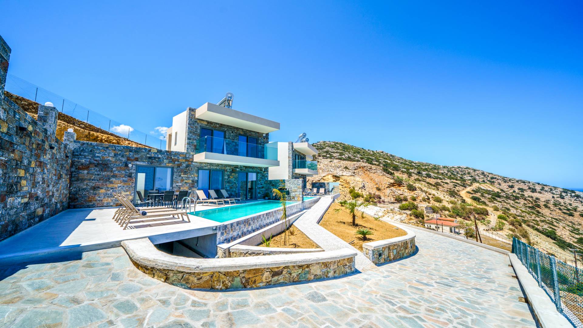 Découvrez l'incarnation de l'exclusivité et du luxe aux Hilltop Villas. Perchées au sommet des collines sereines de Crète, nos villas offrent des vues imprenables sur la plage immaculée en contrebas et sur les majestueuses montagnes au-delà.