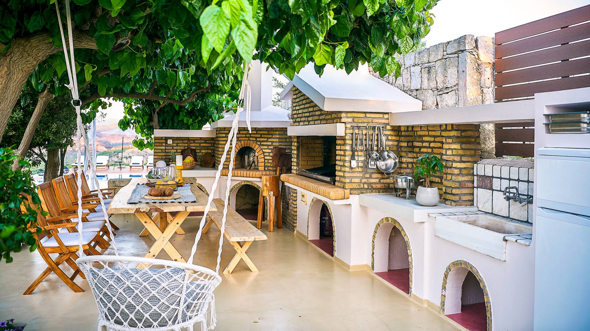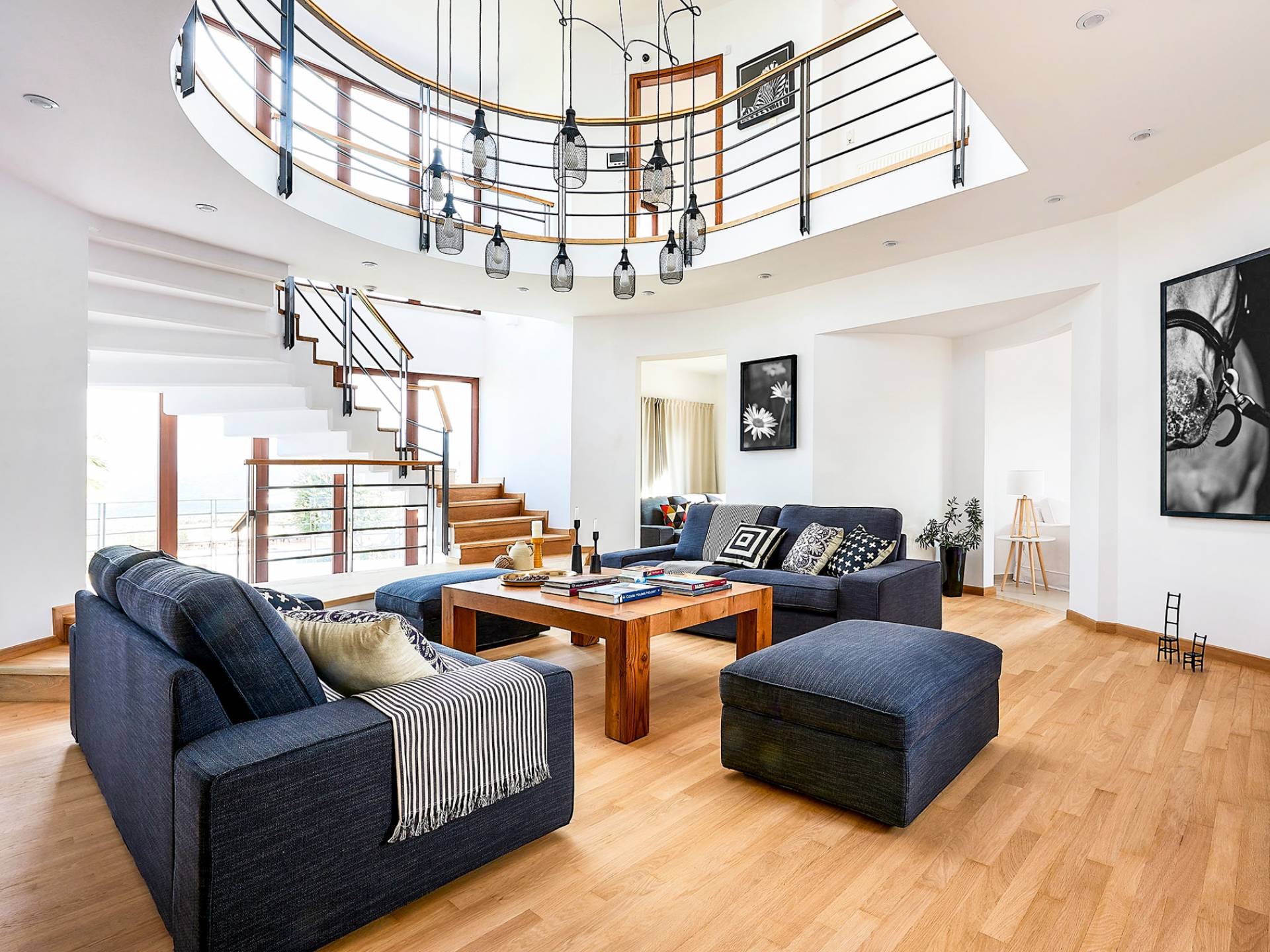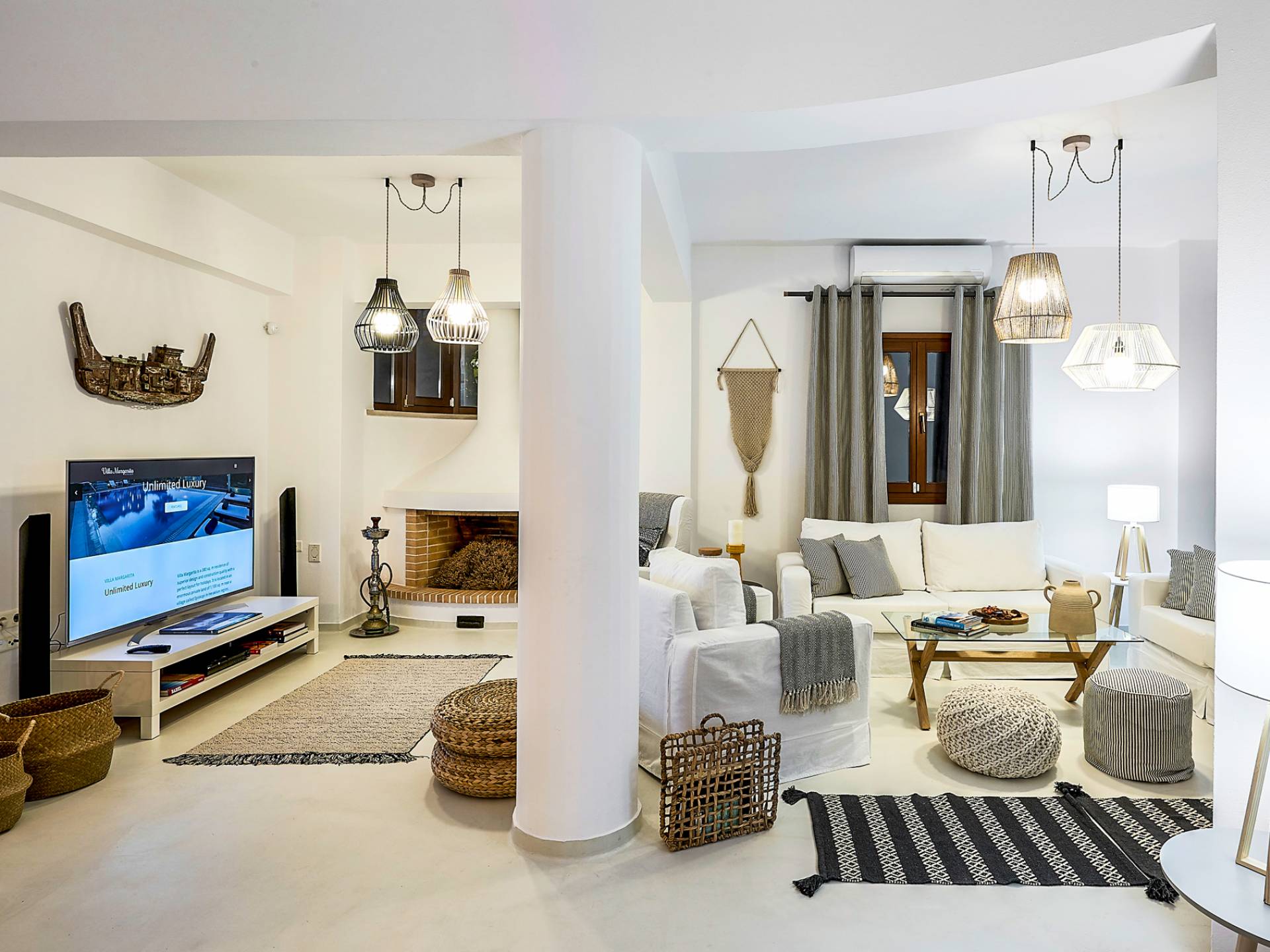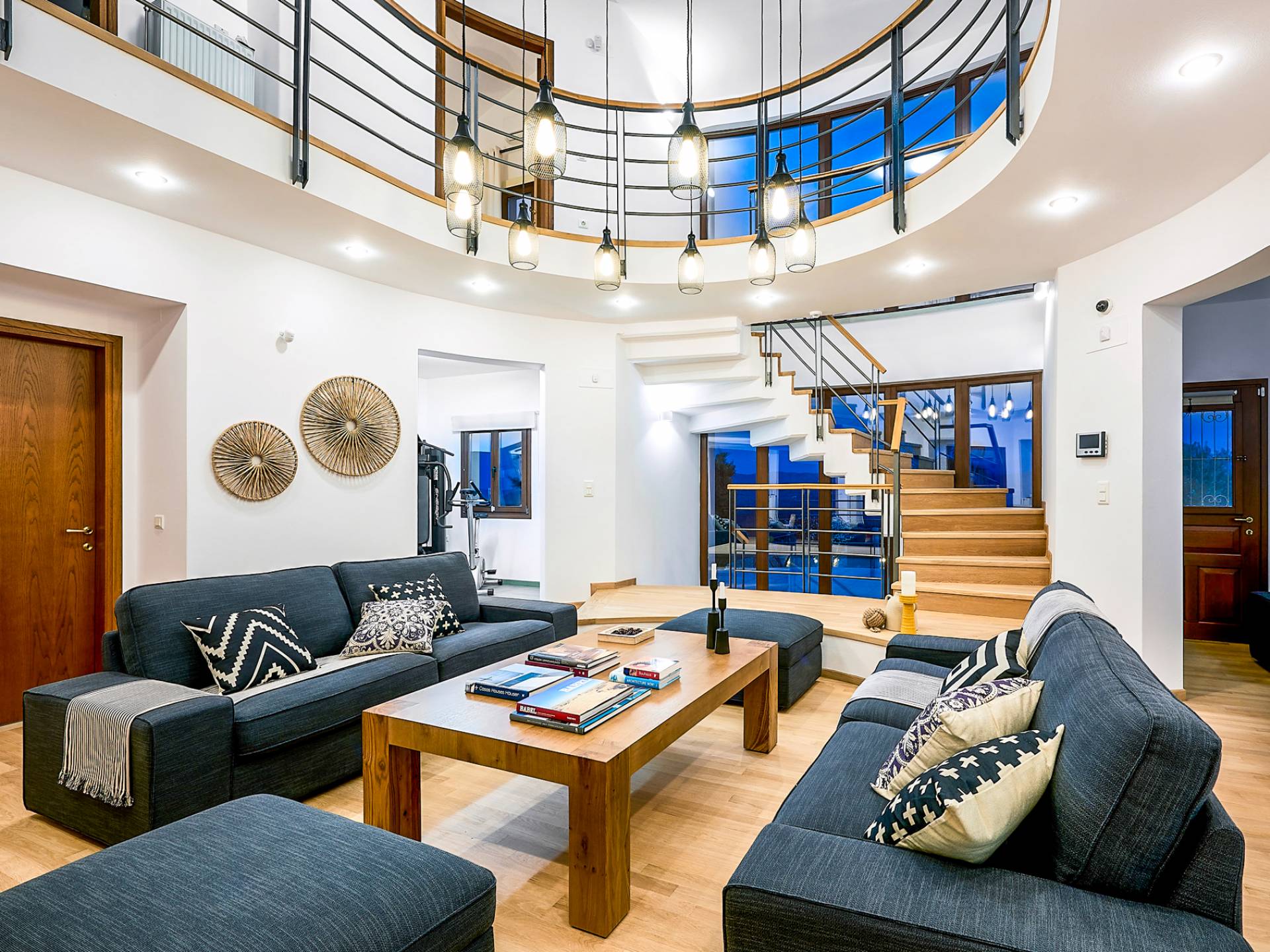 À l'intérieur de la Villa Margarita Crete, vous vous souvenez constamment de la vie de grande classe, du mobilier de haute qualité à la vue imprenable sur la montagne visible depuis la plupart des pièces de la propriété. Ce qui fait de cette villa un choix idéal pour des vacances inoubliables, c'est le fait que la lumière naturelle règne dans la plupart des pièces tout au long de la journée. Le salon offre beaucoup d'espace aux amis et à la famille pour profiter du temps social tout en conservant un grand sens de la fonctionnalité et de la vie facile. La cuisine est bien équipée pour cuisiner et préparer les repas. La salle d'échecs vous met au défi de tester vos compétences aux échecs contre votre famille ou vos amis tout en passant du bon temps avec eux dans un environnement très convivial. Alors qu'une partie d'échecs peut entraîner votre esprit, la salle de gym peut garder vos capacités physiques élevées et garder votre corps en forme pendant vos vacances. Après votre formation, vous pourrez profiter d'un bain d'hydromassage relaxant dans l'une des quatre salles de bains de la maison. Dans l'ensemble, ce n'est pas une maison de vacances commune. C'est un chef-d'œuvre qui attend d'être apprécié.