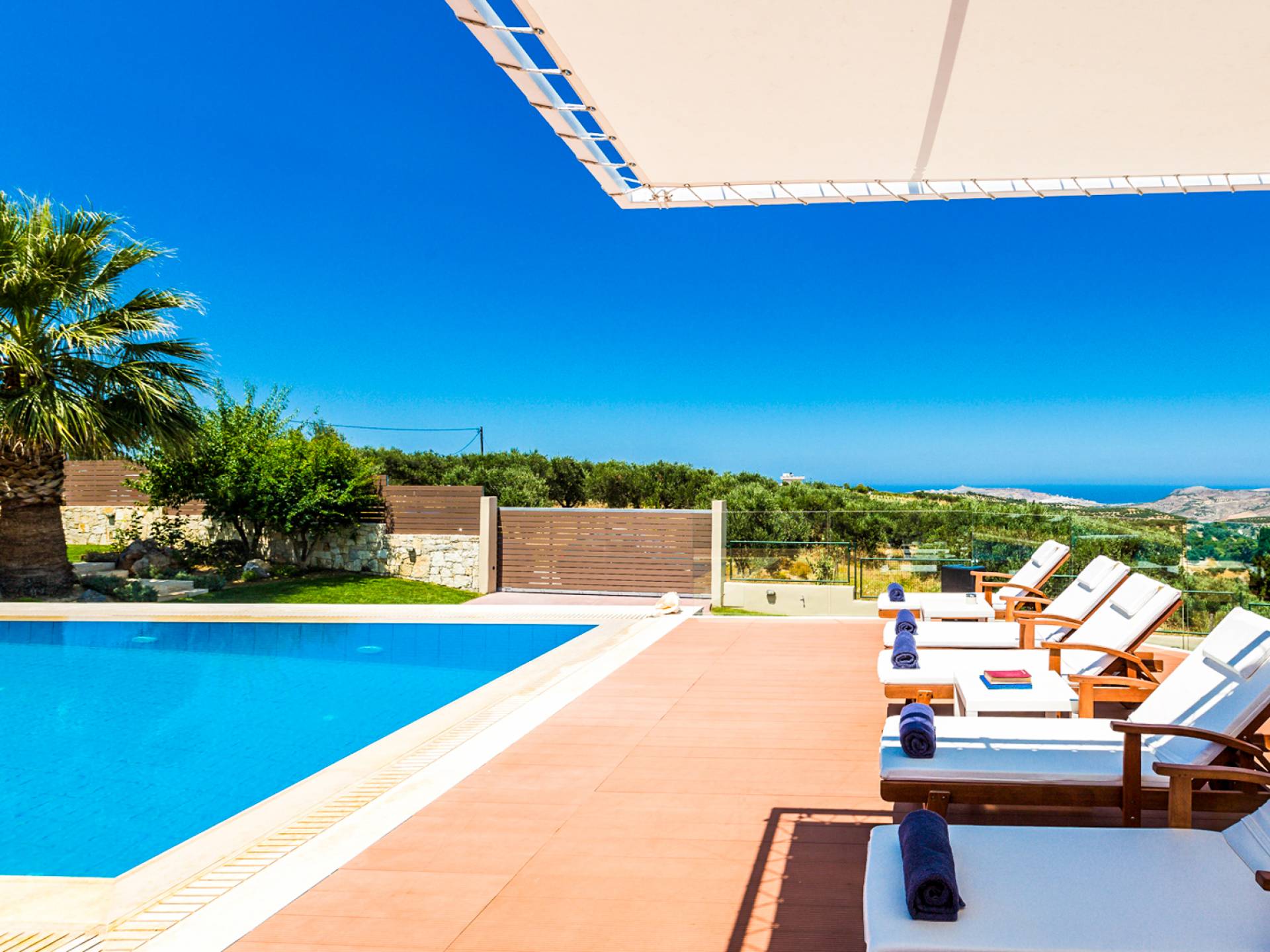 Villa Margarita Crete est une résidence de 380 m² de qualité supérieure de conception et de construction avec un agencement parfait pour les vacances. Il est situé sur un énorme terrain privé de 1 100 m² près d'un village appelé Episkopi dans la région d'Héraklion, offrant une intimité totale et une vue magnifique sur les montagnes environnantes et la mer.
