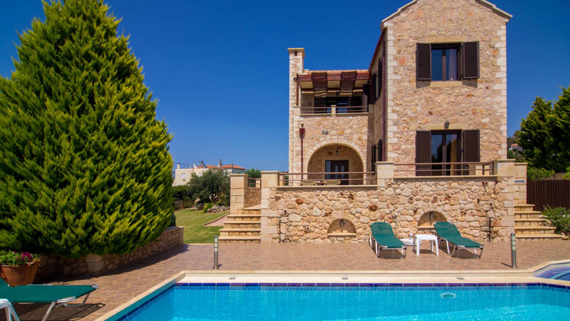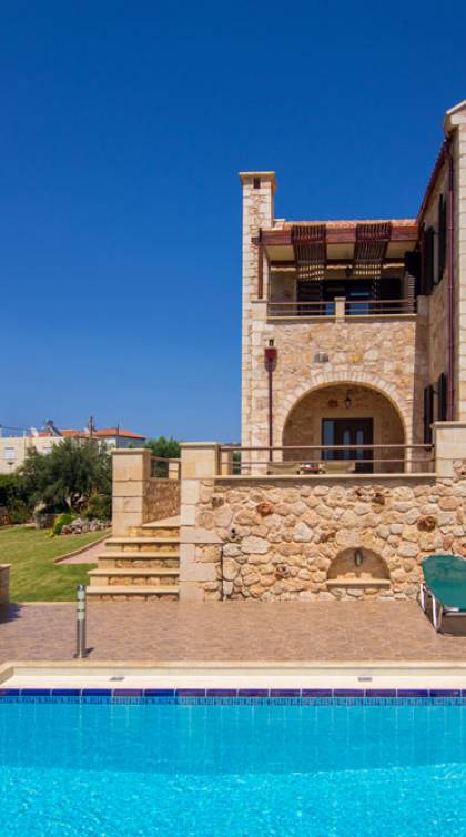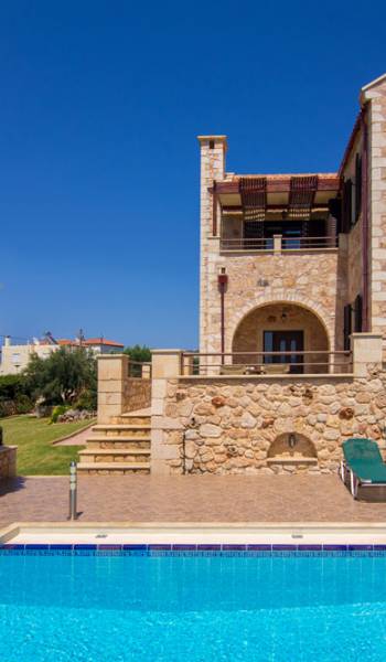Située à Kokkino Chorio dans la région d'Apokoronas, Afrati Villas Chania, deux villas individuelles en pierre de 100 m² chacune, avec leurs vérandas privées, offrent une vue spectaculaire sur la mer et les montagnes imposantes. La beauté architecturale exceptionnelle des villas peut promettre une expérience unique tandis que les cours spacieuses avec pelouse et barbecue en combinaison avec la grande piscine offrent des moments de détente paisibles. Chacun peut accueillir jusqu'à 6 personnes.