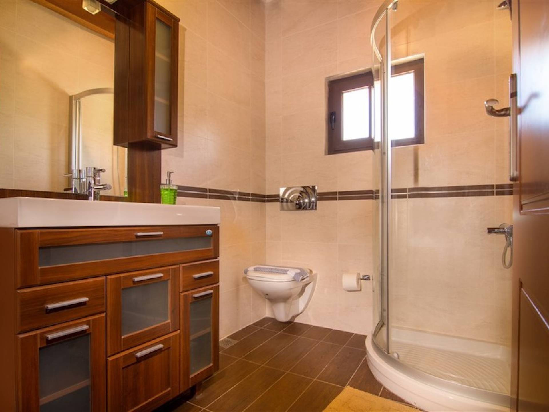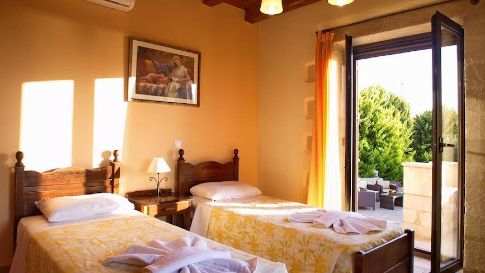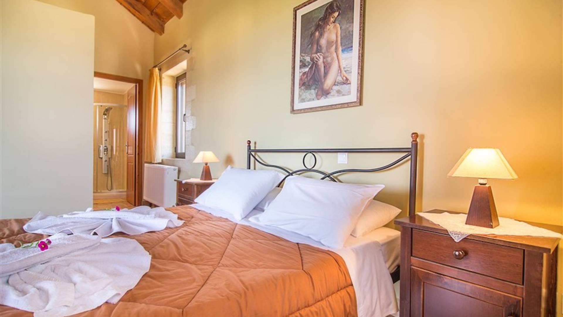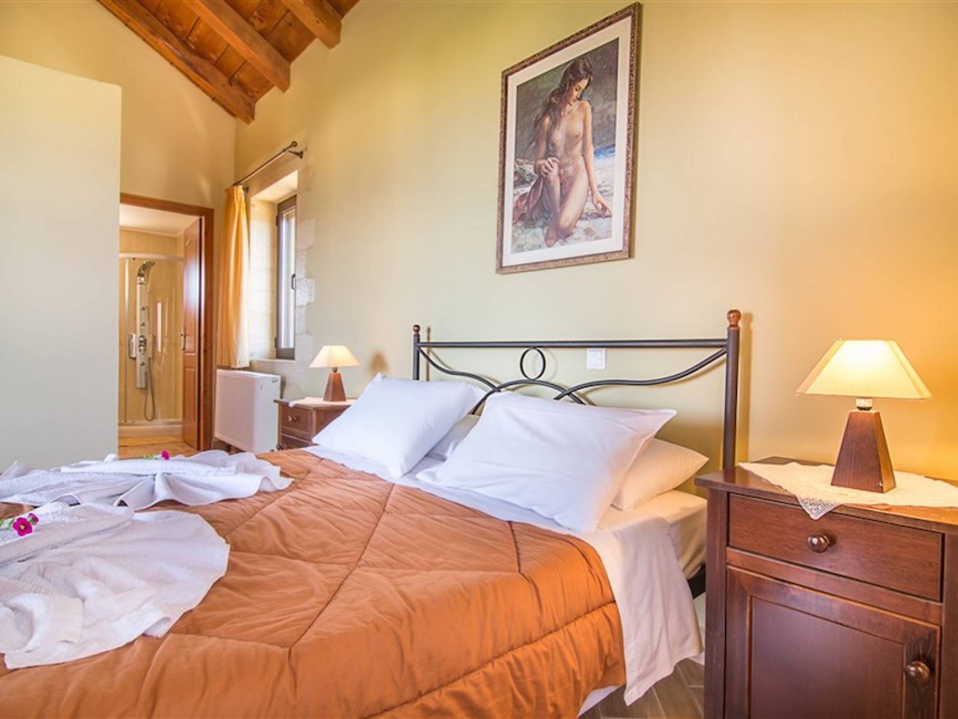 Au rez-de-chaussée d'Afrati Villas Chania, il y a une chambre avec deux lits simples et une salle de bain, une cuisine entièrement équipée et un salon avec une cheminée et une télévision par satellite. Au premier étage de chaque villa il y a un une chambre avec un lit double et une salle de bain avec une cabine jacuzzi, une chambre avec deux lits simples et une salle de bain avec une cabine jacuzzi. En sortant de la Villa Afrati, nos clients peuvent profiter d'un beau balcon-terrasse, d'une incroyable piscine privée de 40 m² avec escalier romain, de vastes patios, de chaises longues et de parasols, et d'un beau jardin avec des fleurs d'herbe et des oliviers, pour une détente et une fraîcheur absolues. ombre. Afrati Villas Chania est une destination paradisiaque de vacances de rêve, idéale pour des vacances détendues sous le soleil crétois.
