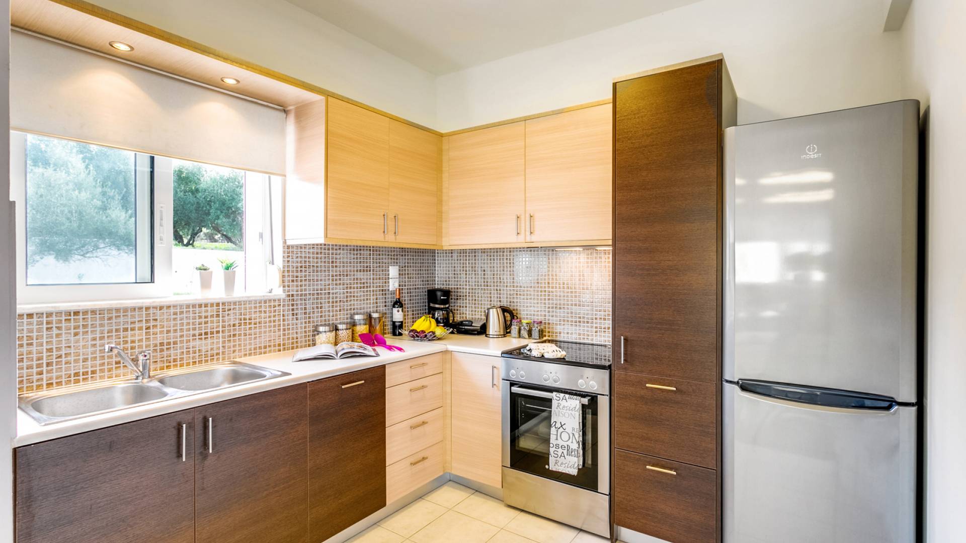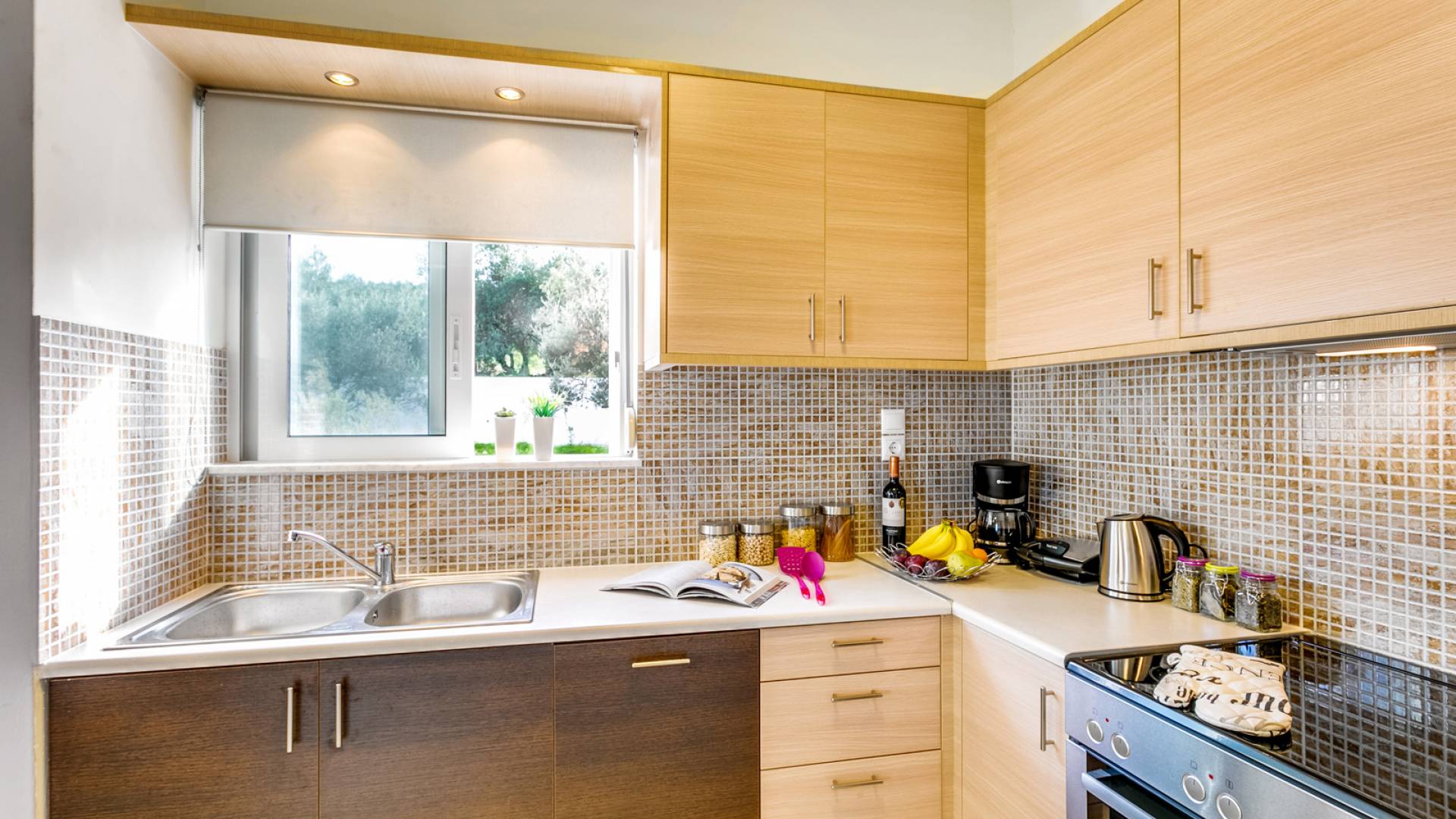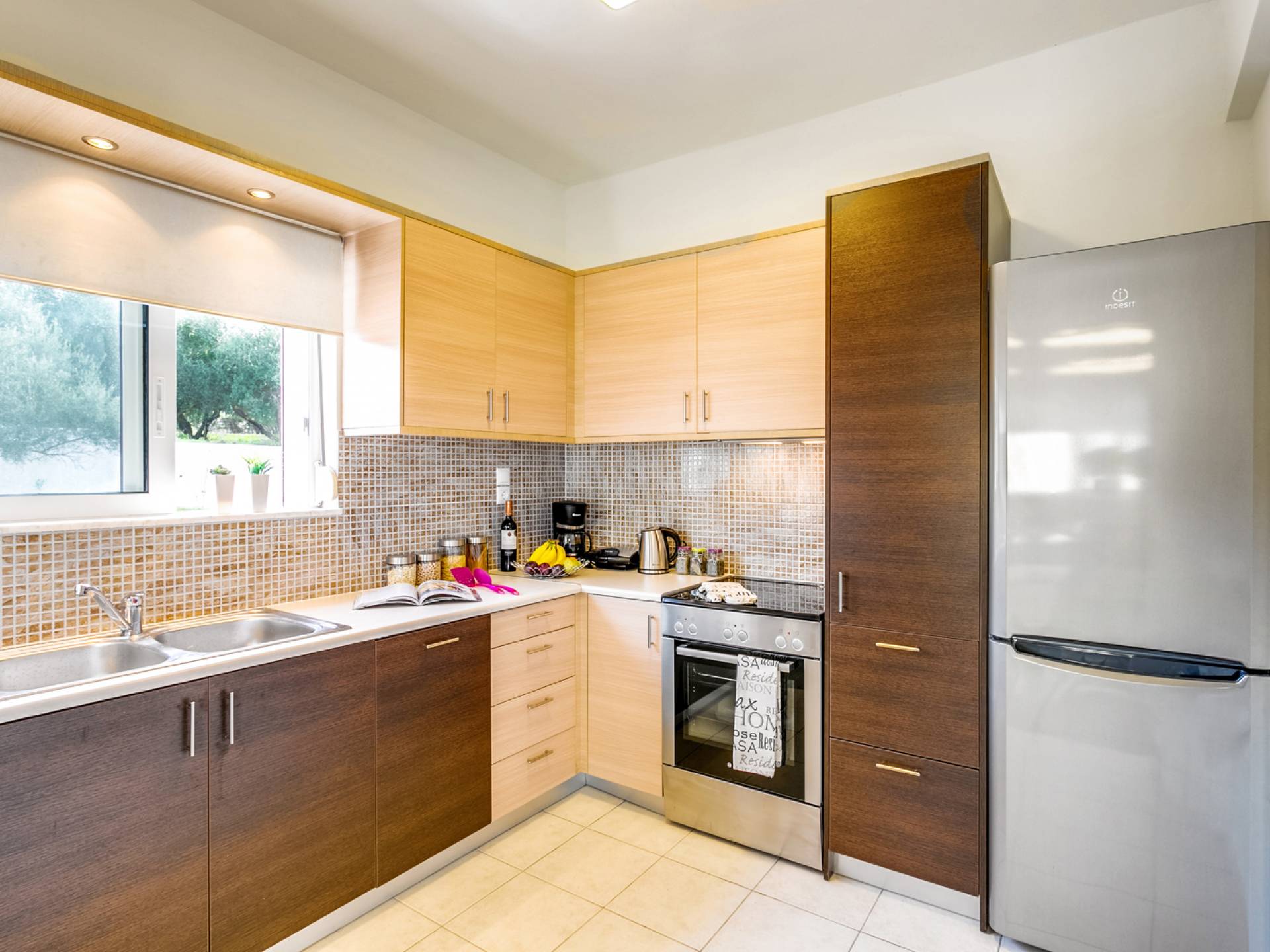 Au rez-de-chaussée, il y a une entrée mais dès que vous entrez dans la maison et traversez le salon, vous vous retrouverez sur un balcon de niveau supérieur avec une vue à couper le souffle. Le caractère unique du terrain montagneux a inspiré l'architecte pour concevoir les irrégularités créatives de la villa. Le salon spacieux offre également une table à manger pour 6 personnes, où vous et vos proches pourrez déguster les spécialités locales que vous créerez dans la cuisine entièrement équipée avec réfrigérateur/congélateur, four/plaque de cuisson, lave-vaisselle, cafetière, grille-pain, etc. .