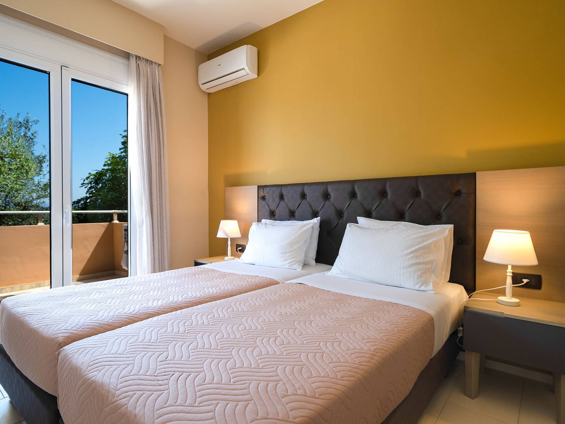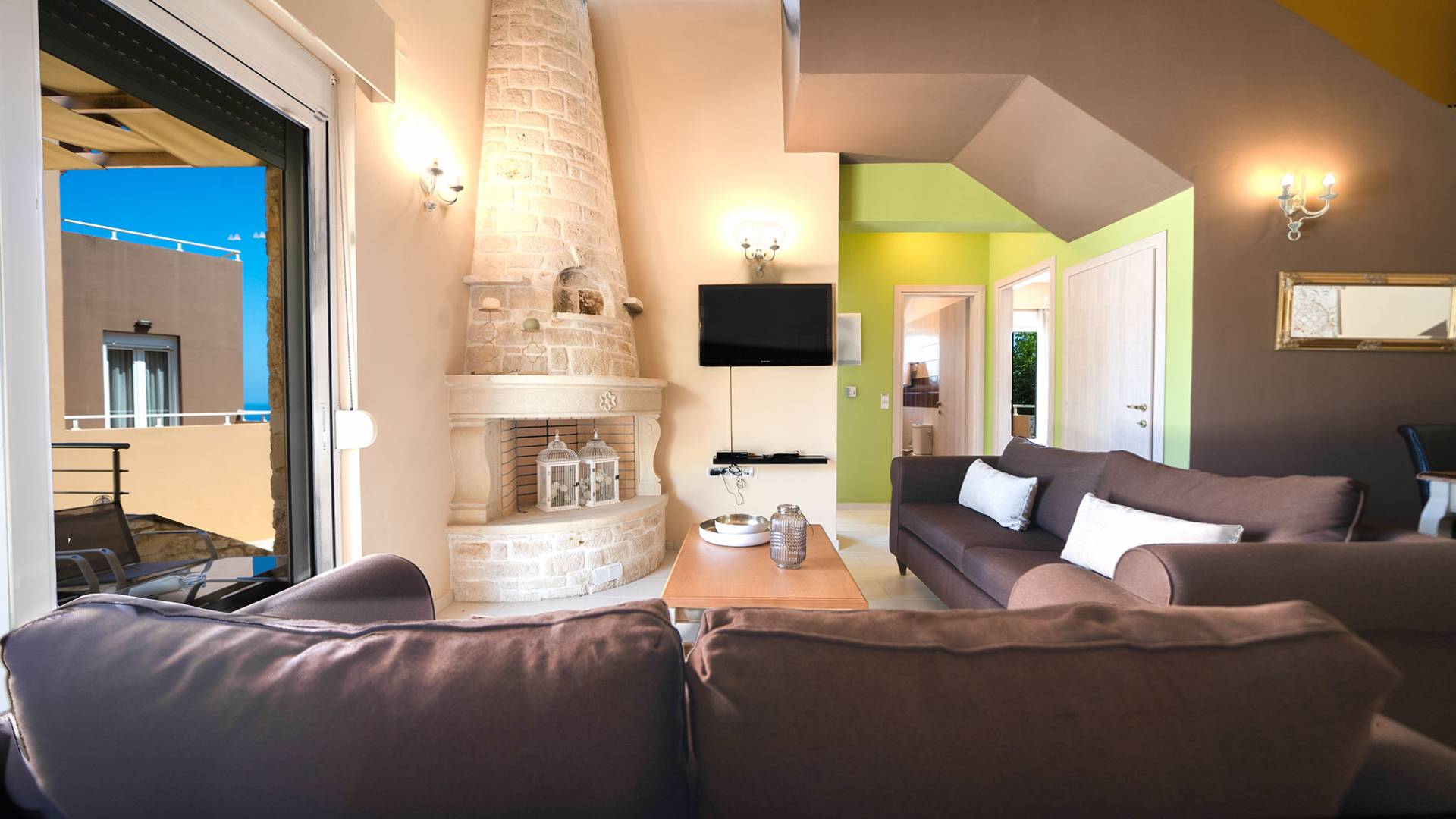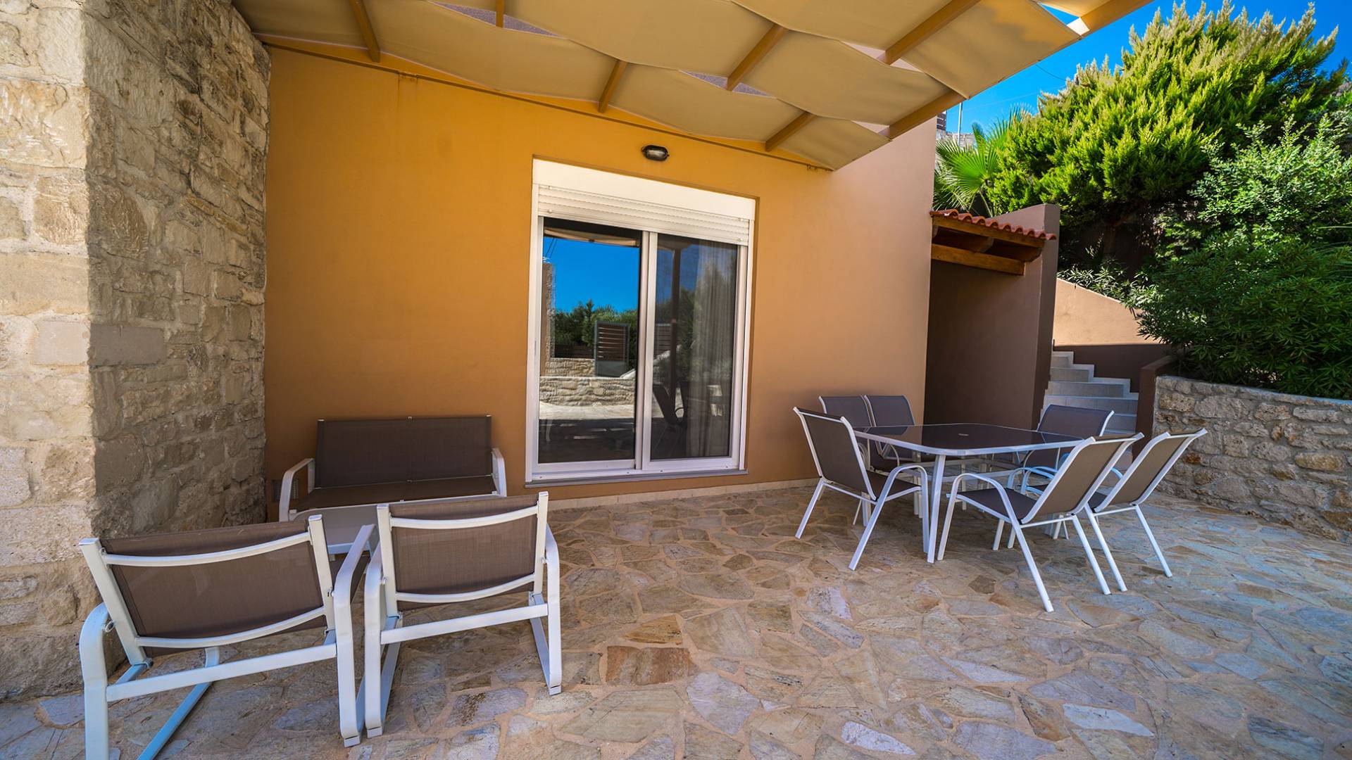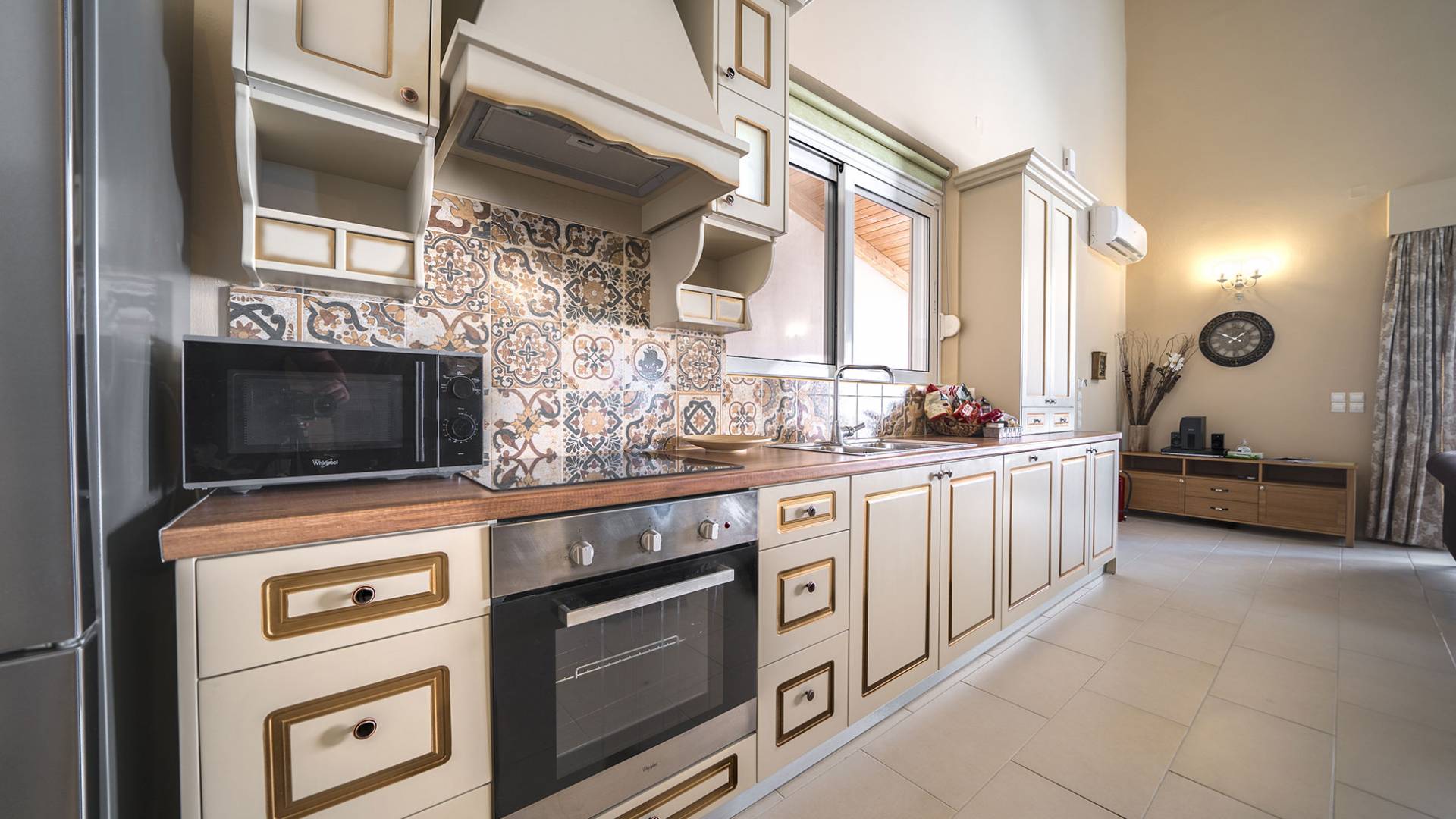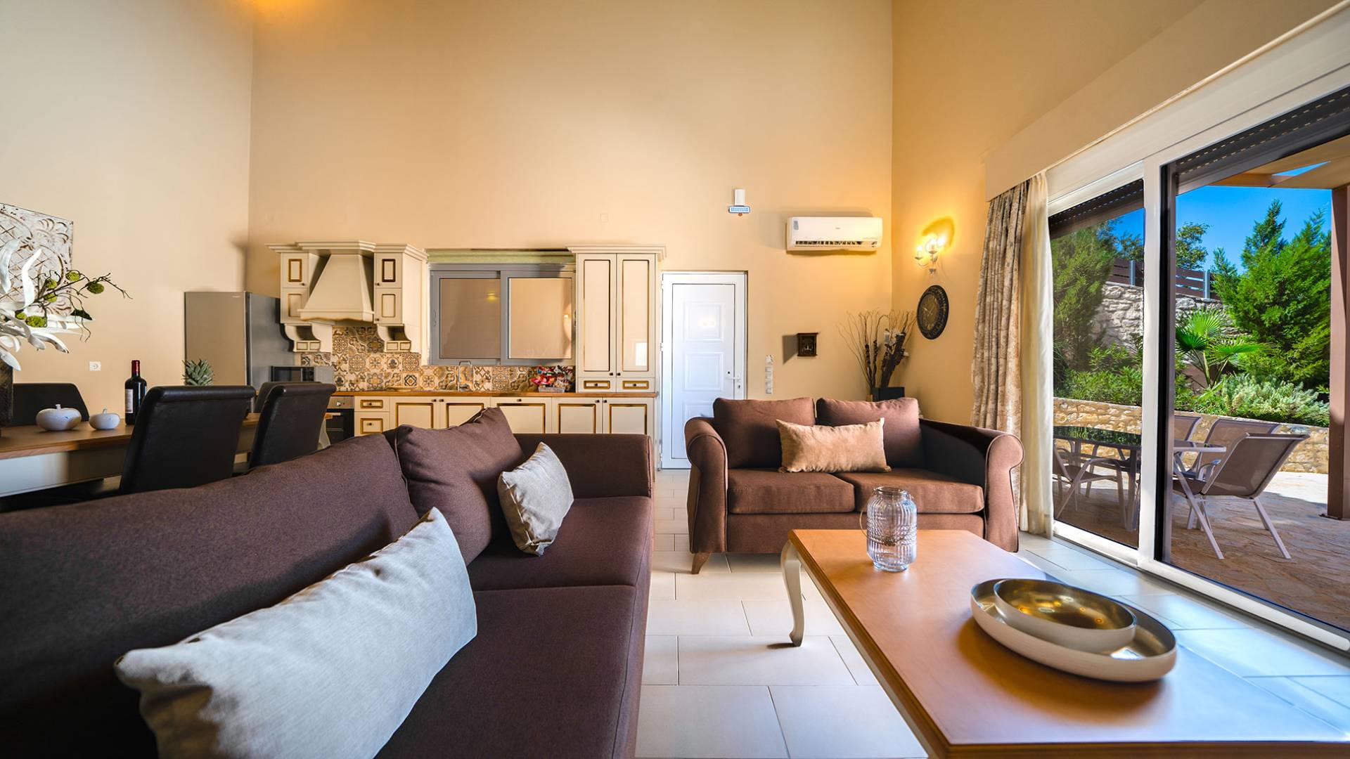 Amoena Villa à Theo Villas Chania est une location de villa de luxe avec 3 chambres et une piscine privée. La Villa Amoena est une luxueuse maisonnette néo-classique construite en hauteur avec une vue magnifique sur les oliveraies, les montagnes et la mer.