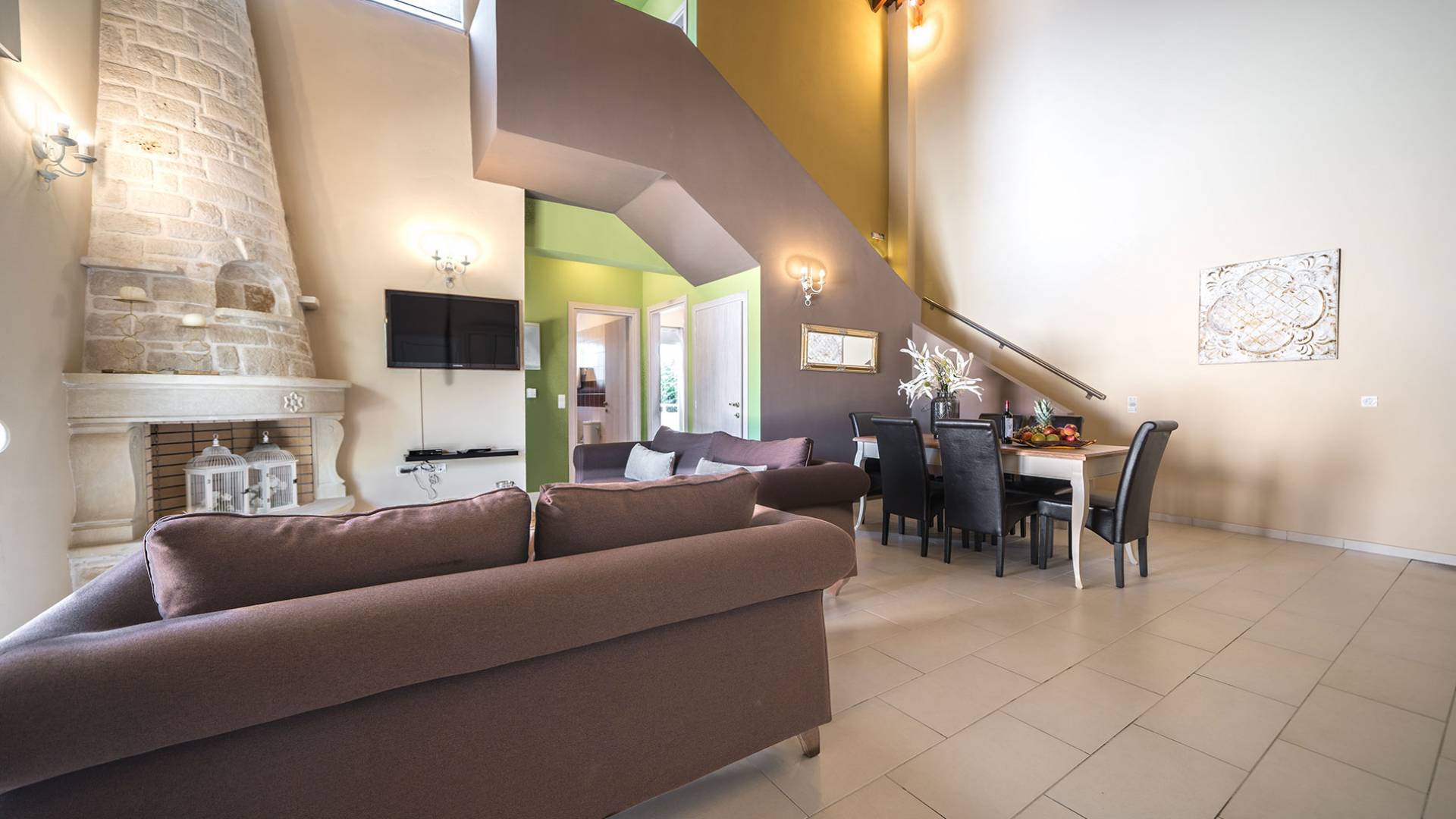 Le design intérieur comprend une belle cheminée et un imposant plafond en bois. Comprend une cuisine entièrement équipée, un salon et une salle à manger confortables avec télévision à écran plasma, lecteur CD, DVD et WIFI. Au rez-de-chaussée de la maison, se trouvent deux chambres confortables, une avec des lits jumeaux et la seconde avec un lit double, une décoration chaleureuse et une salle de bain confortable avec douche.