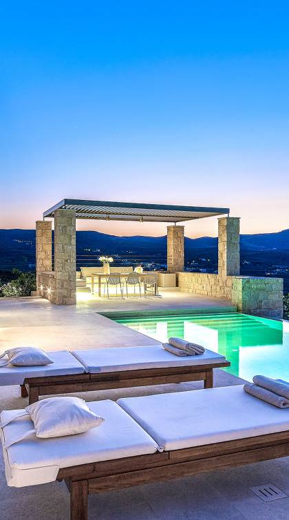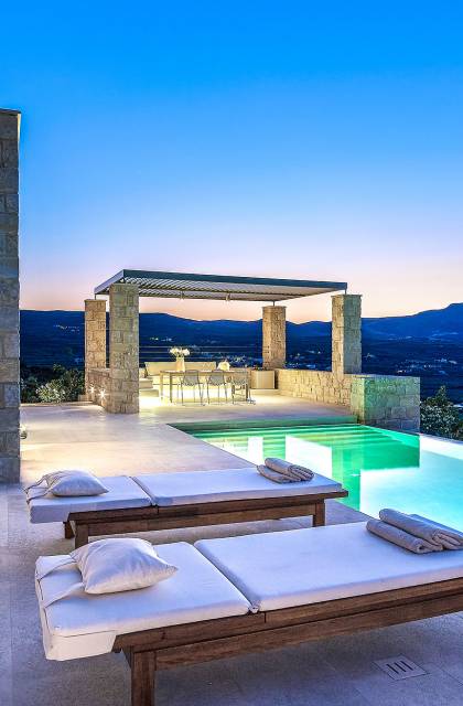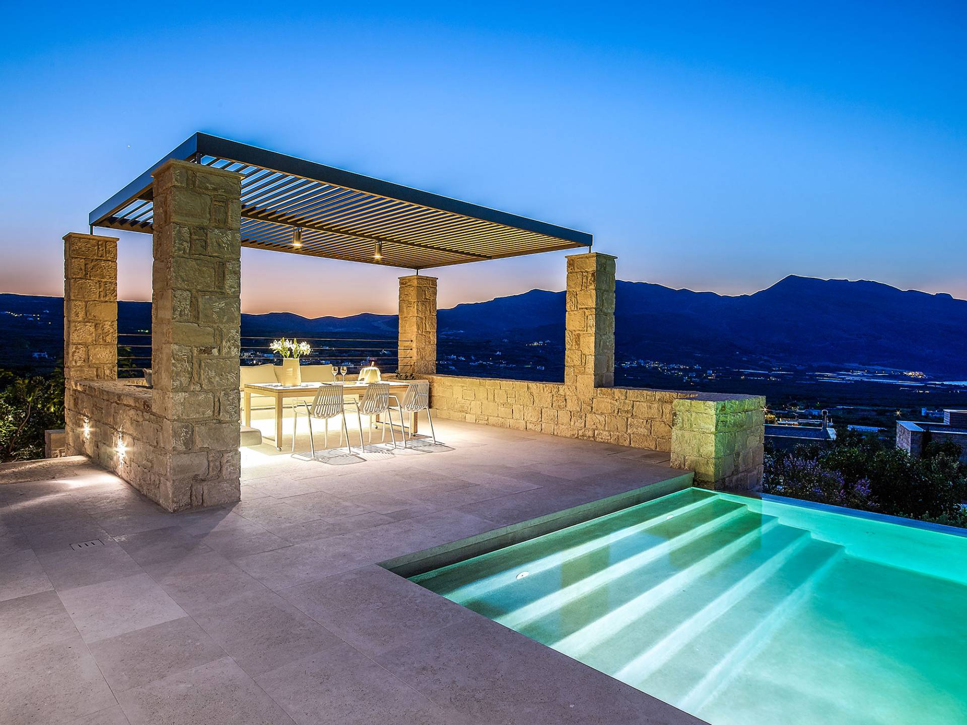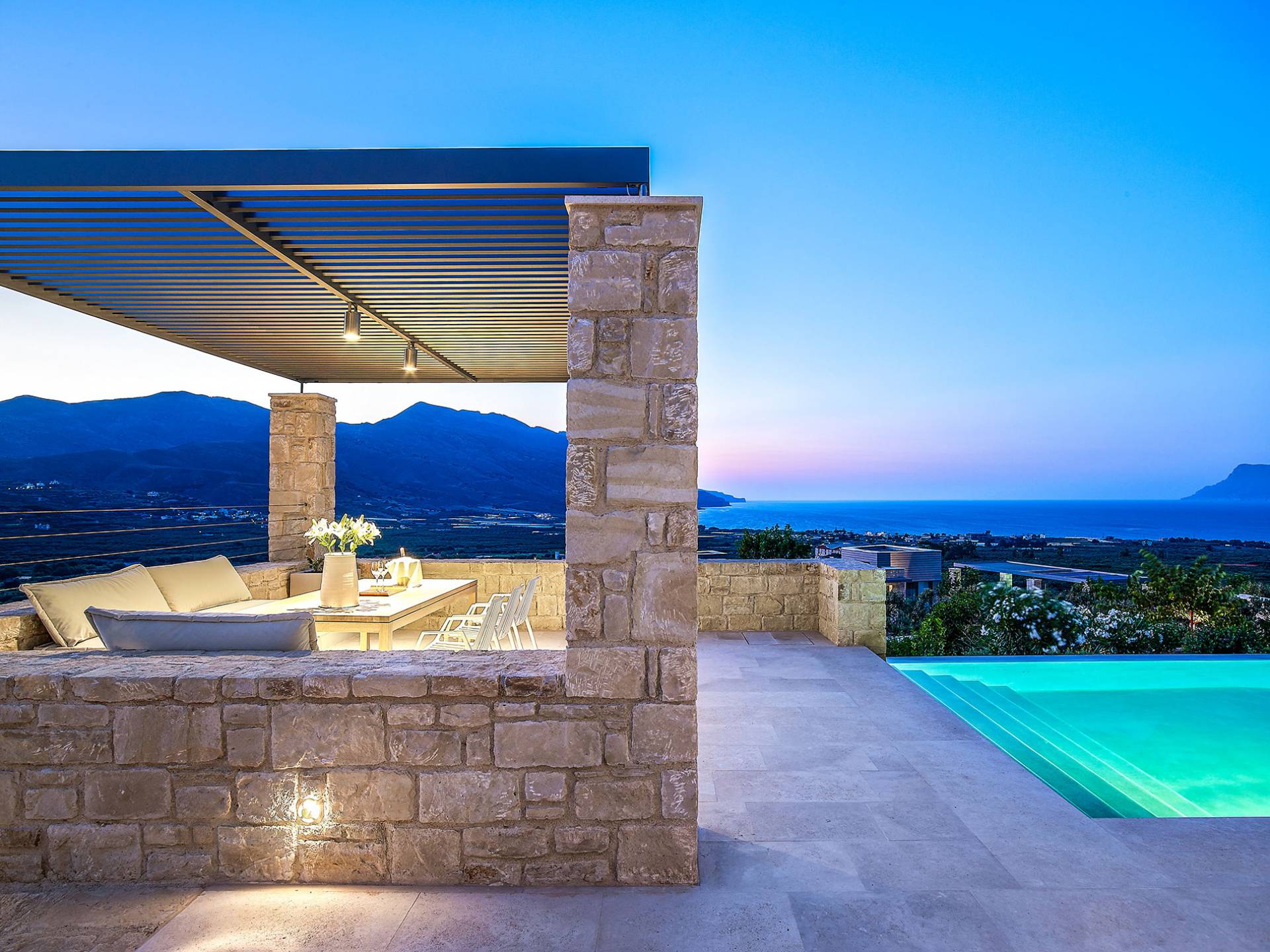 Située dans un cadre semblable à une peinture, surplombant la péninsule de Gramvousa et la baie de Kissamos, la villa Anassa est en totale harmonie avec son ambiance utilisant des éléments naturels de pierre et de bois dans sa belle terrasse avec une piscine privée à débordement et un charmant coin repas extérieur avec une pergola où vous pourrez profiter du soleil et de la brise marine avec vos proches. Les jardins paysagers environnants se conforment à l'environnement naturel et créent un paysage typiquement méditerranéen.