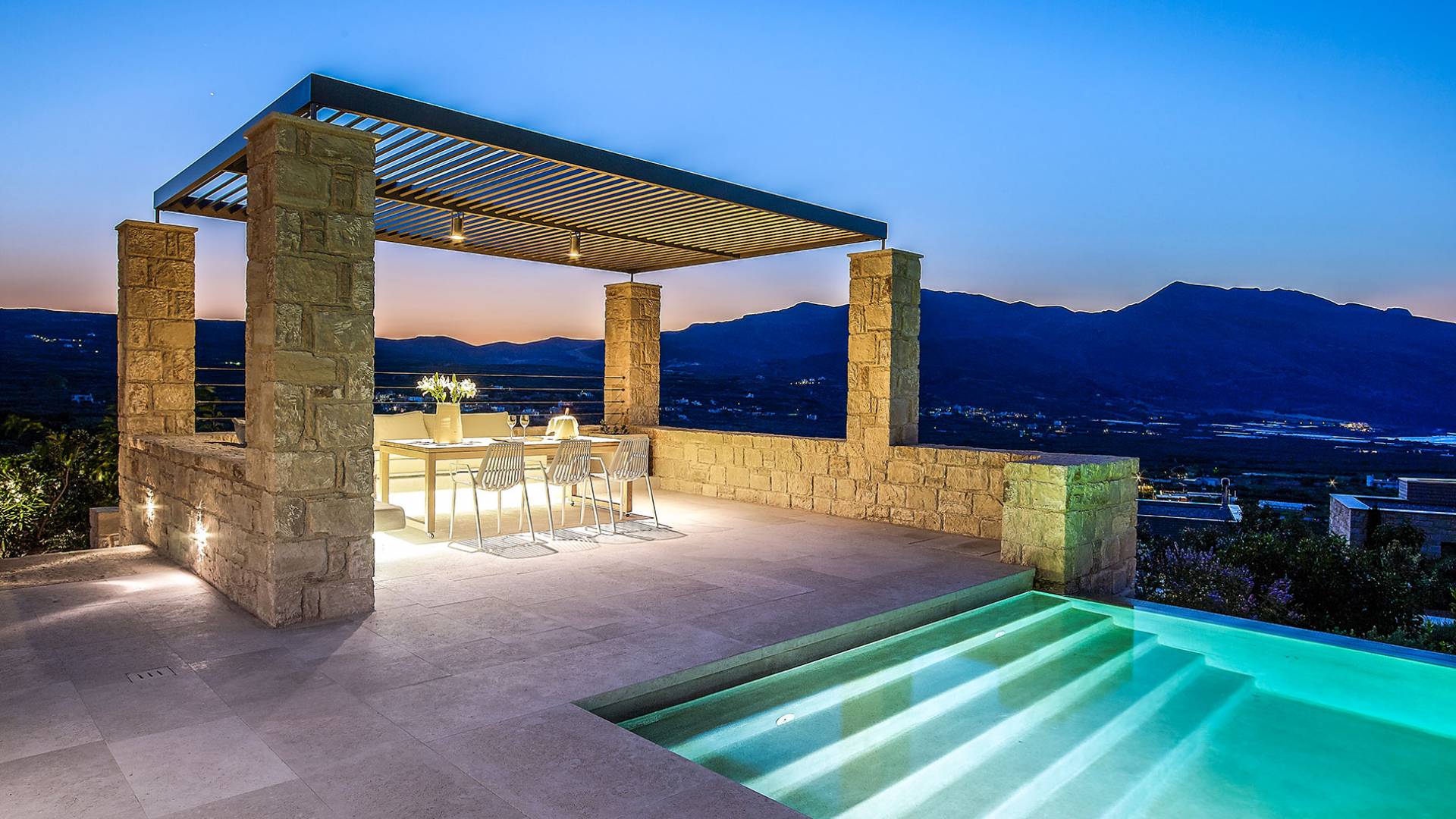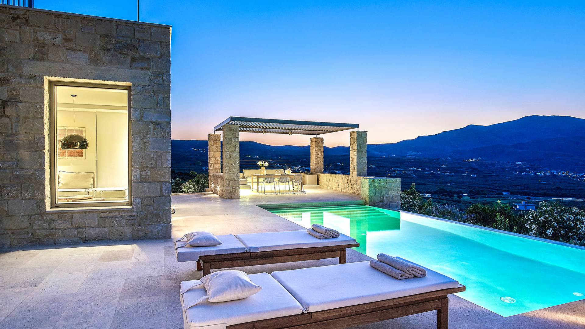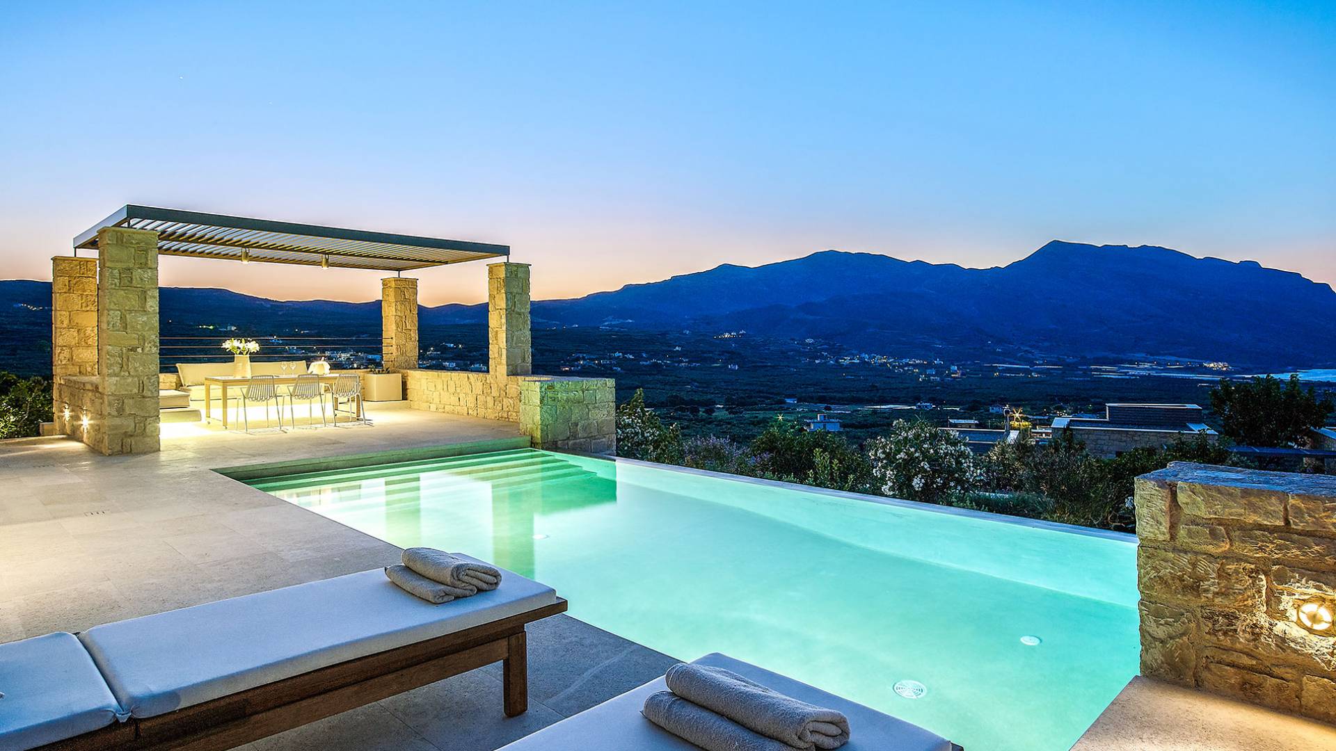 Située dans un cadre semblable à une peinture, surplombant la péninsule de Gramvousa et la baie de Kissamos, la villa Anassa est en totale harmonie avec son ambiance utilisant des éléments naturels de pierre et de bois dans sa belle terrasse avec une piscine privée à débordement et un charmant coin repas extérieur avec une pergola où vous pourrez profiter du soleil et de la brise marine avec vos proches. Les jardins paysagers environnants se conforment à l'environnement naturel et créent un paysage typiquement méditerranéen.