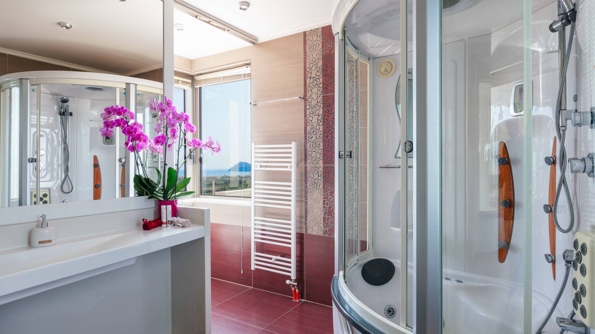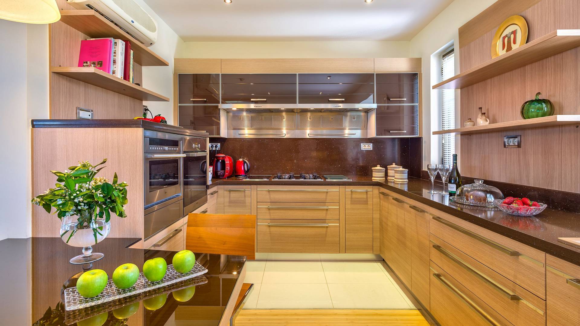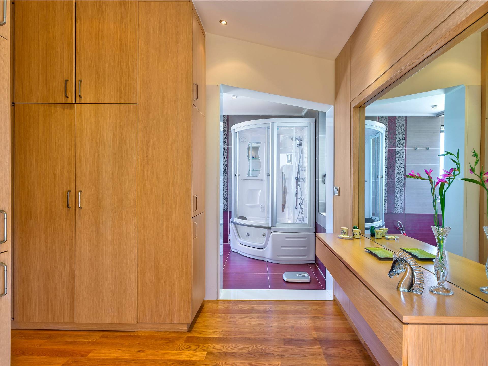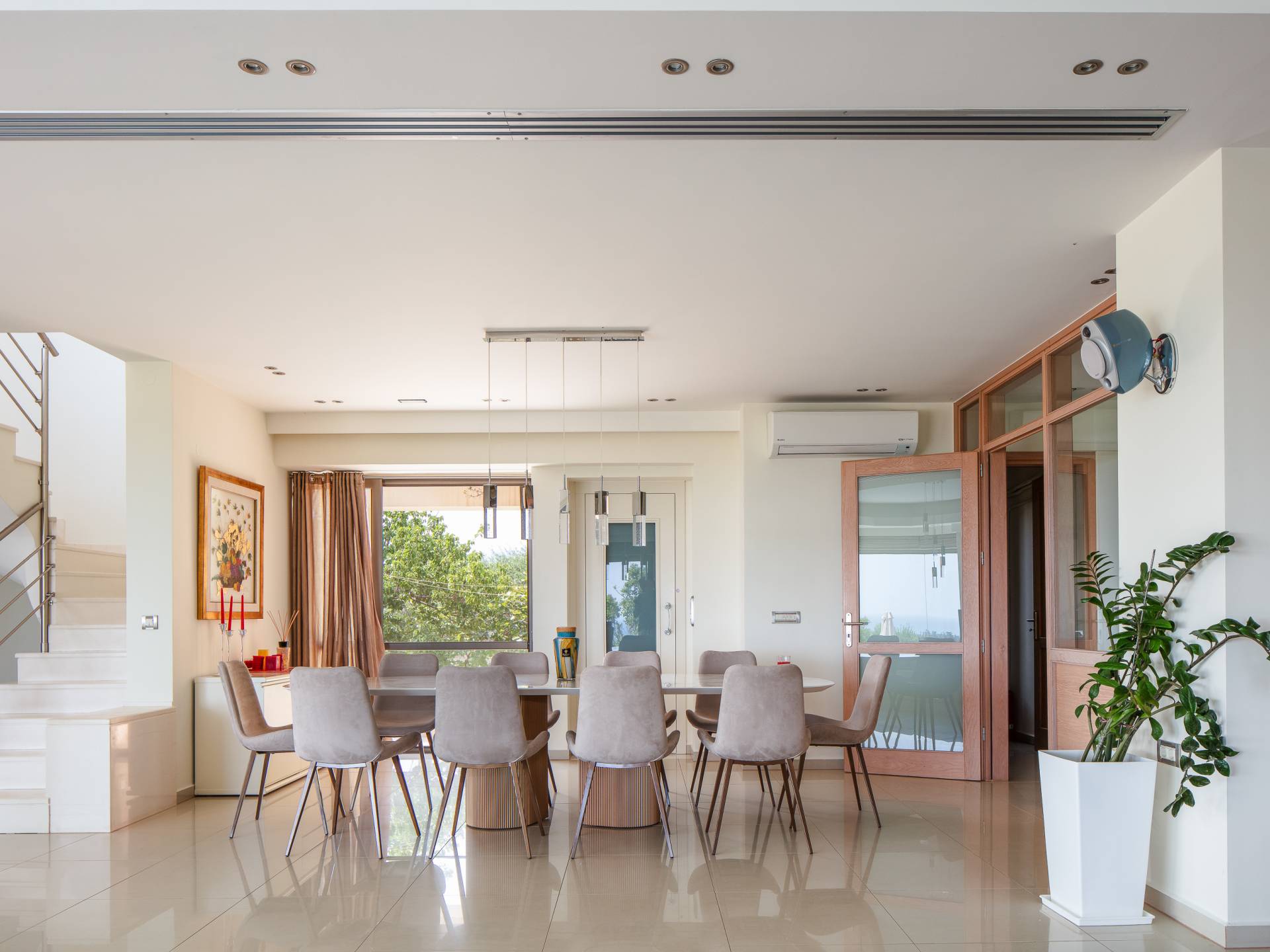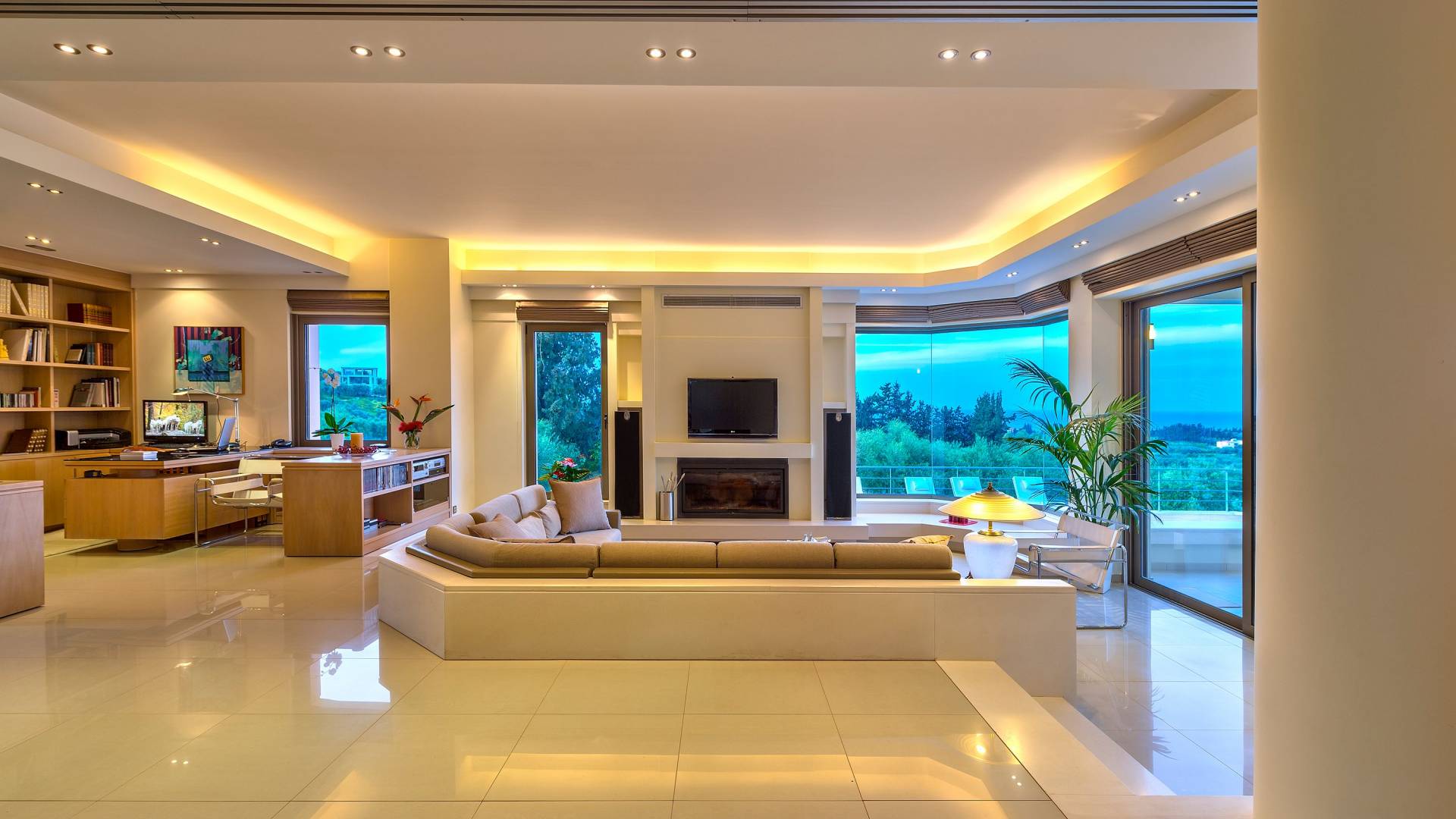 Aménagement intérieur : en entrant dans la villa Anastasia au rez-de-chaussée, vous trouverez un espace ouvert spacieux composé d'un salon avec une cheminée, d'une télévision HD par satellite de 40 pouces, d'une salle à manger intérieure et d'une cuisine entièrement équipée avec des accessoires de qualité supérieure et appareils électroménagers. Le salon s'ouvre sur une véranda avec un coin salon et une table à manger qui vous mène également à la piscine et au jardin. Un espace bureau organisé avec un système de son et un ordinateur portable et des toilettes se trouvent également au même étage. Le rez-de-chaussée accueille une chambre avec un lit king-size et une salle de bain en suite. Atteindre le premier étage par un escalier, il y a une chambre principale avec un lit king-size, un dressing et une salle de bain avec baignoire jacuzzi et douche hydro-massage. La chambre principale a accès à une grande véranda avec un coin salon qui offre une vue imprenable sur la mer.