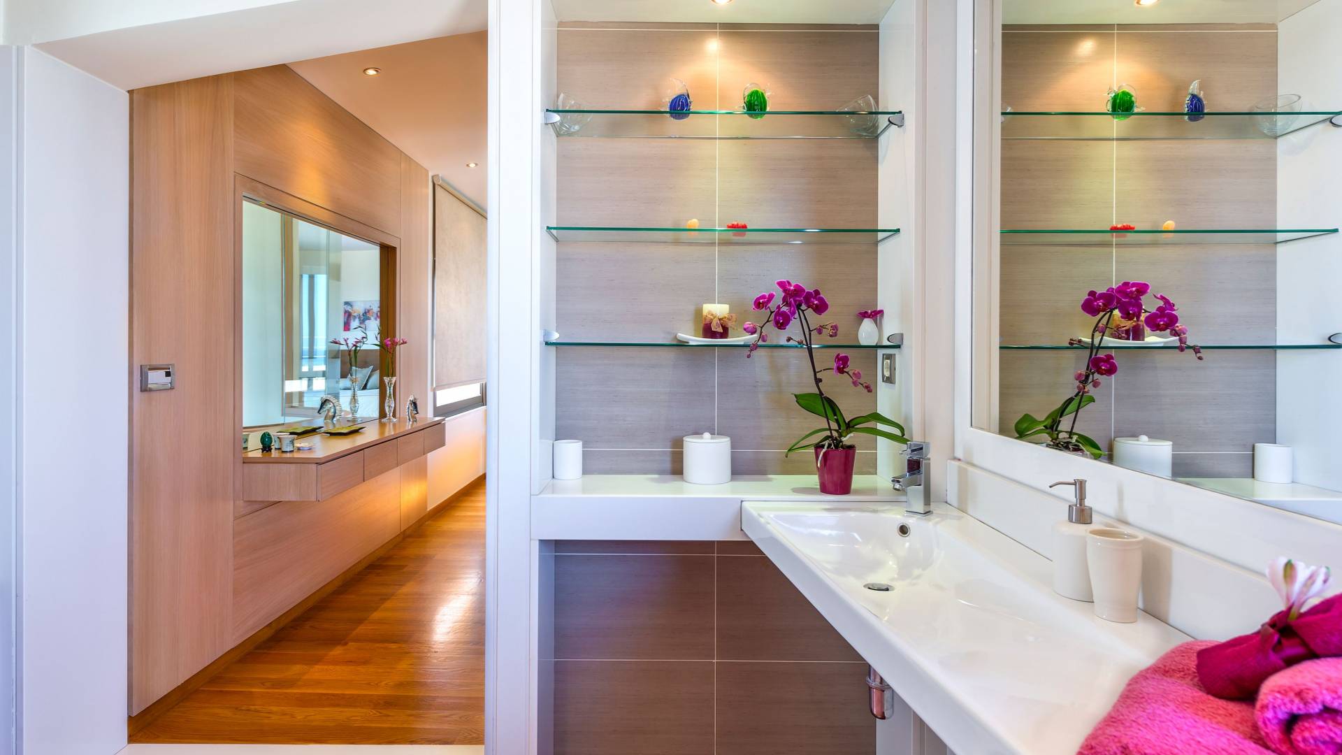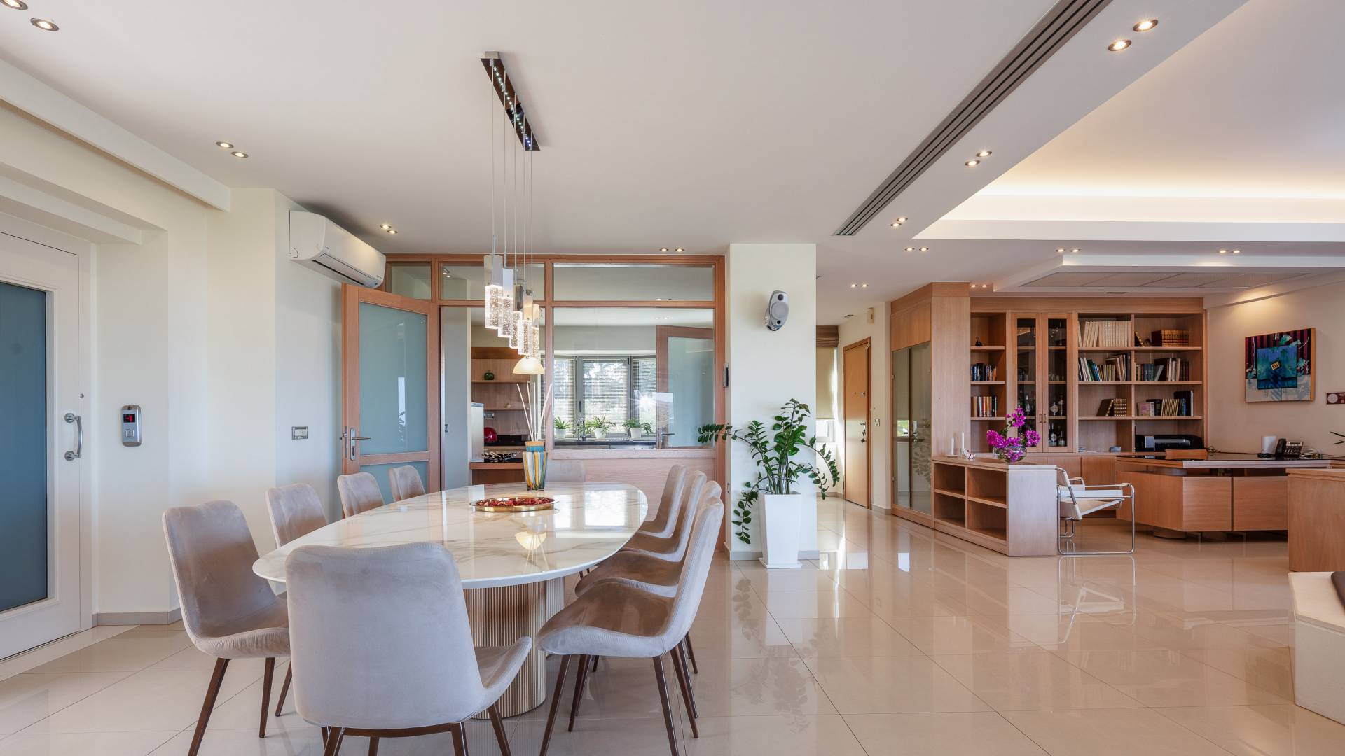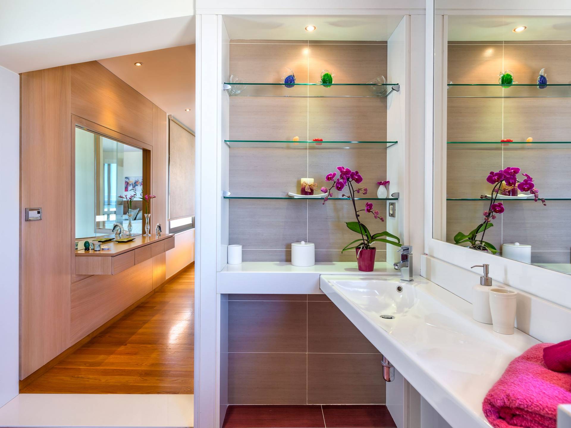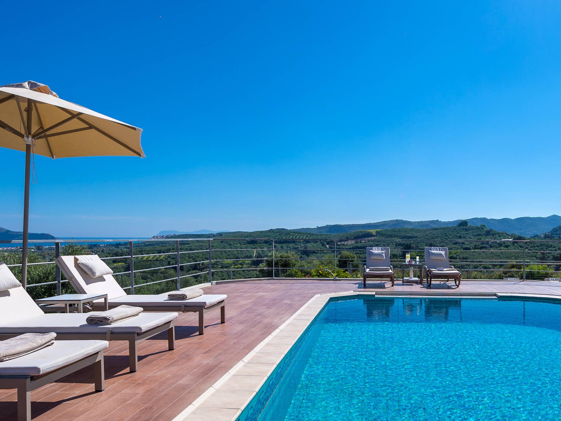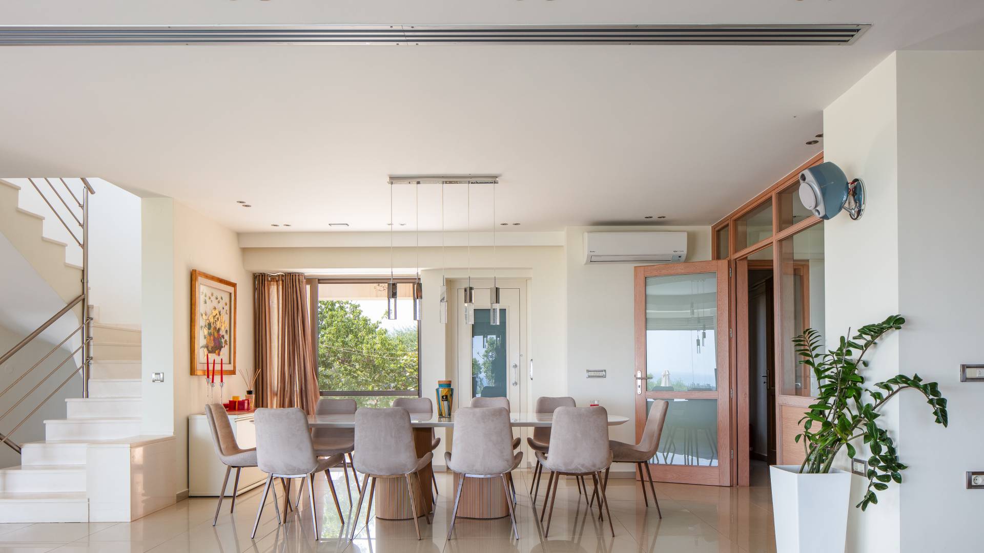 Aménagement intérieur : en entrant dans la villa Anastasia au rez-de-chaussée, vous trouverez un espace ouvert spacieux composé d'un salon avec une cheminée, d'une télévision HD par satellite de 40 pouces, d'une salle à manger intérieure et d'une cuisine entièrement équipée avec des accessoires de qualité supérieure et appareils électroménagers. Le salon s'ouvre sur une véranda avec un coin salon et une table à manger qui vous mène également à la piscine et au jardin. Un espace bureau organisé avec un système de son et un ordinateur portable et des toilettes se trouvent également au même étage. Le rez-de-chaussée accueille une chambre avec un lit king-size et une salle de bain en suite. Atteindre le premier étage par un escalier, il y a une chambre principale avec un lit king-size, un dressing et une salle de bain avec baignoire jacuzzi et douche hydro-massage. La chambre principale a accès à une grande véranda avec un coin salon qui offre une vue imprenable sur la mer.