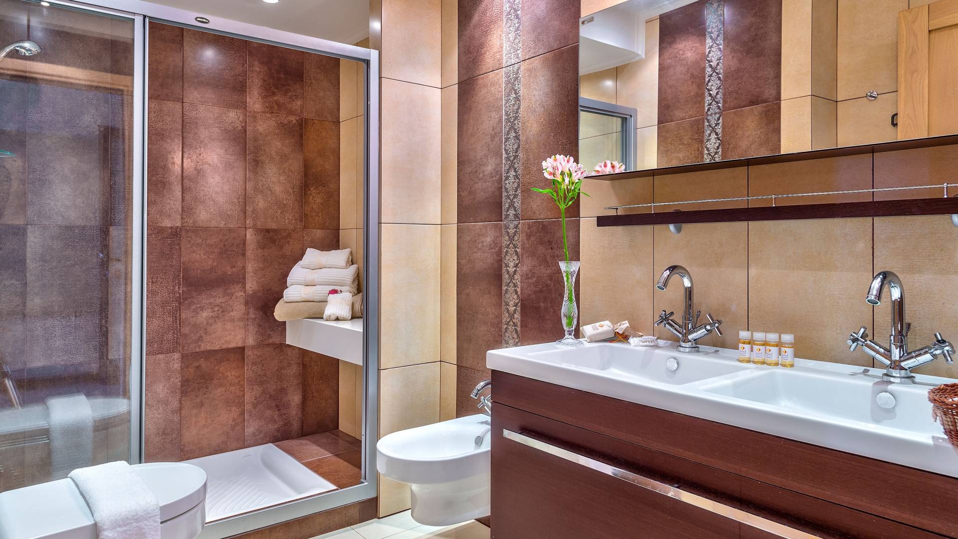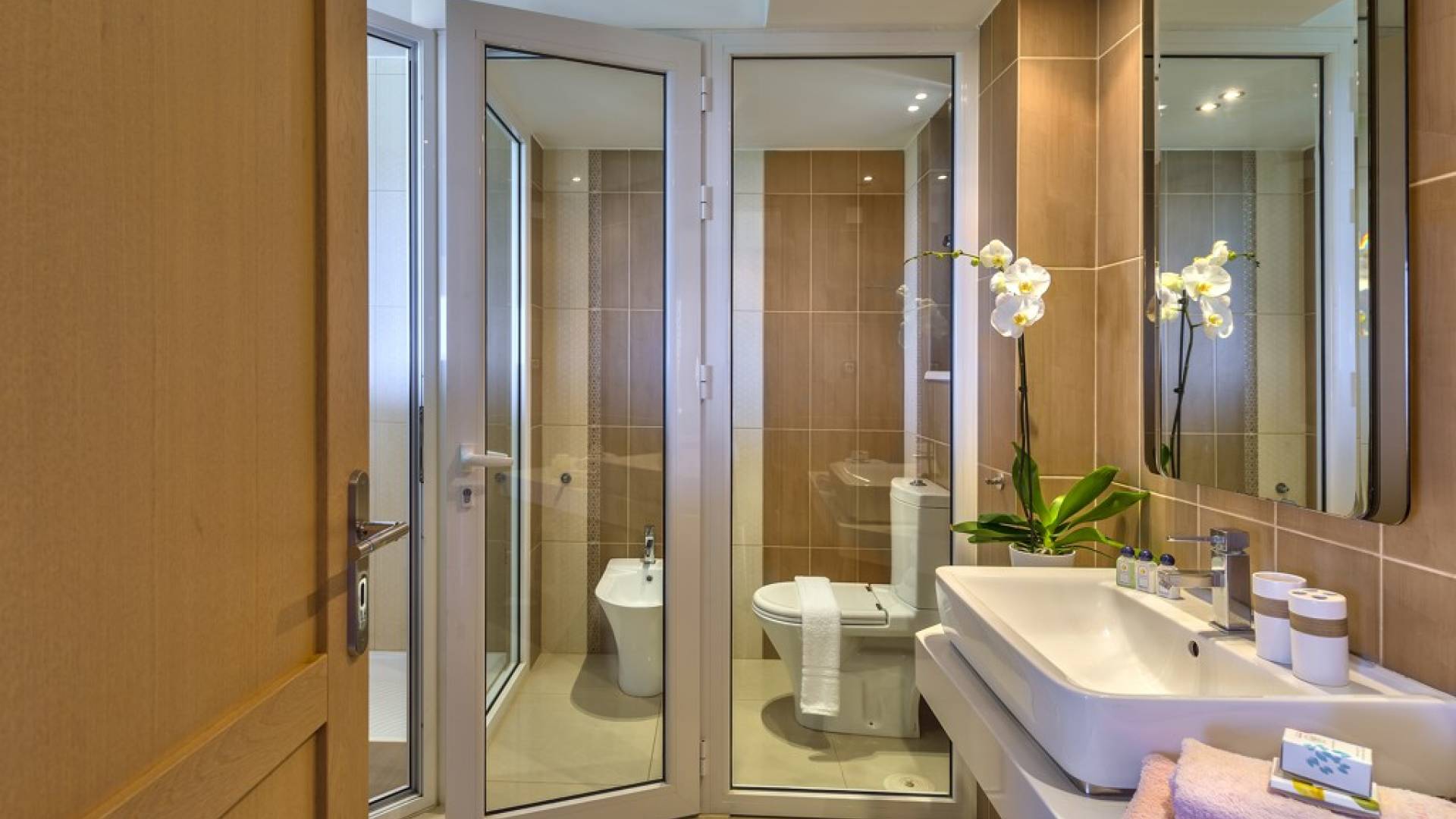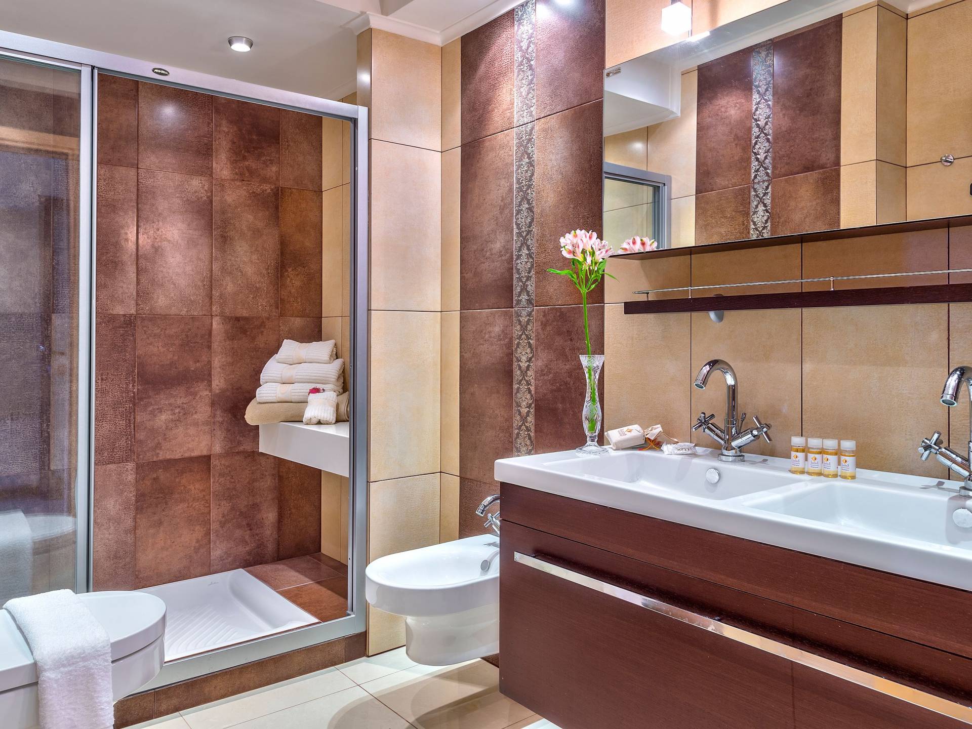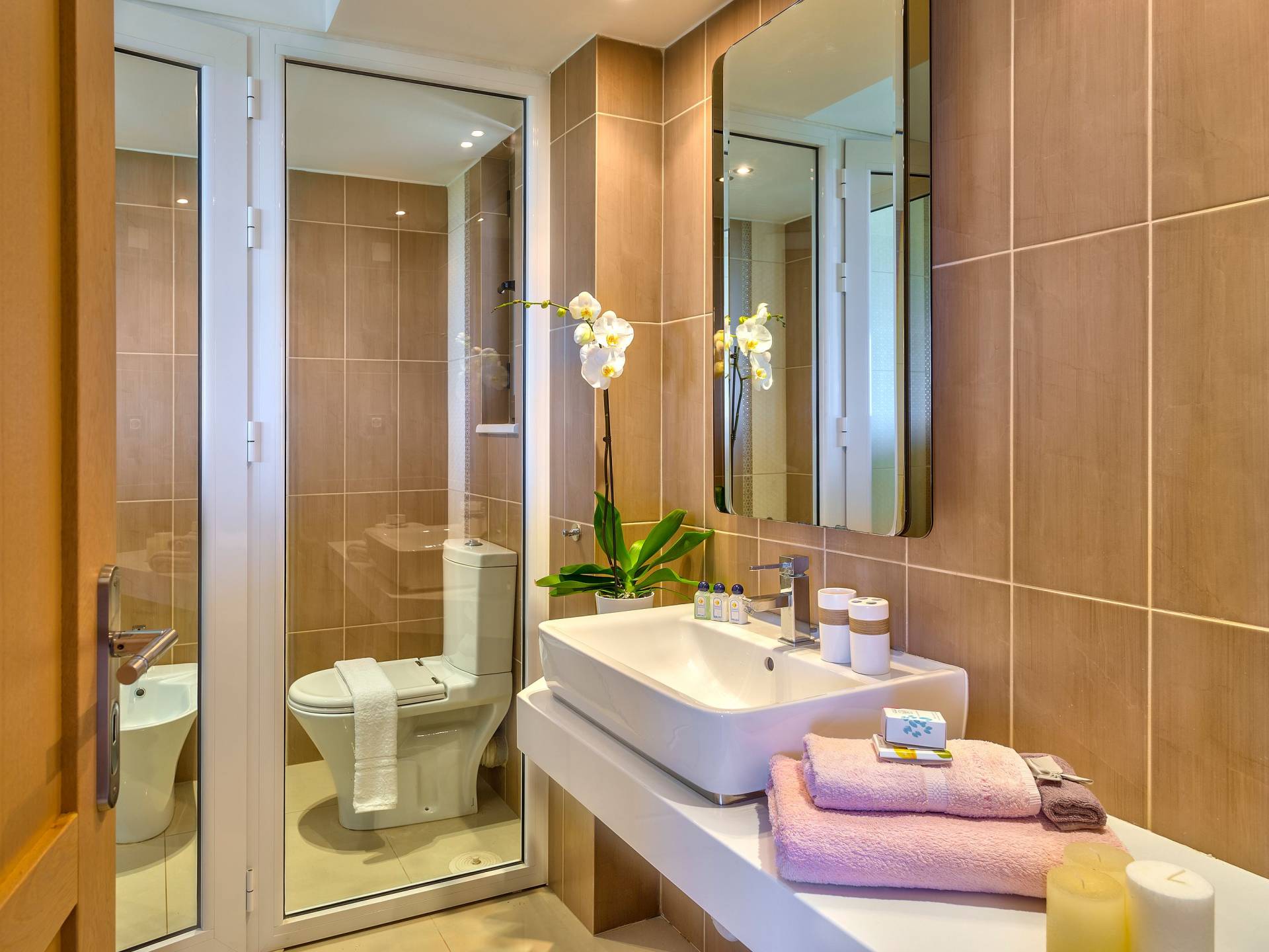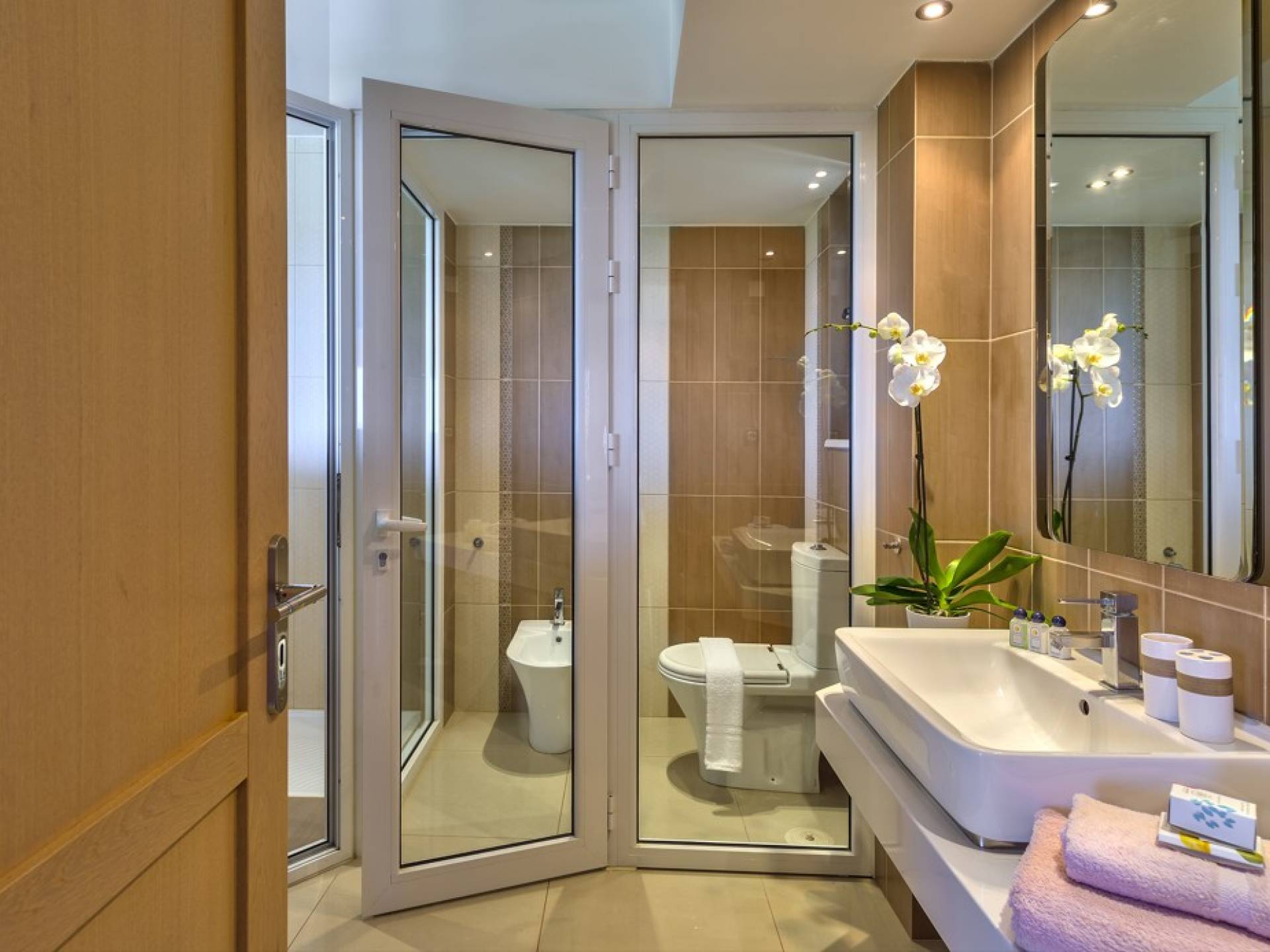Aménagement intérieur : en entrant dans la villa Anastasia au rez-de-chaussée, vous trouverez un espace ouvert spacieux composé d'un salon avec une cheminée, d'une télévision HD par satellite de 40 pouces, d'une salle à manger intérieure et d'une cuisine entièrement équipée avec des accessoires de qualité supérieure et appareils électroménagers. Le salon s'ouvre sur une véranda avec un coin salon et une table à manger qui vous mène également à la piscine et au jardin. Un espace bureau organisé avec un système de son et un ordinateur portable et des toilettes se trouvent également au même étage. Le rez-de-chaussée accueille une chambre avec un lit king-size et une salle de bain en suite. Atteindre le premier étage par un escalier, il y a une chambre principale avec un lit king-size, un dressing et une salle de bain avec baignoire jacuzzi et douche hydro-massage. La chambre principale a accès à une grande véranda avec un coin salon qui offre une vue imprenable sur la mer.
