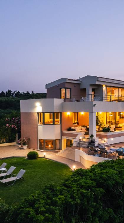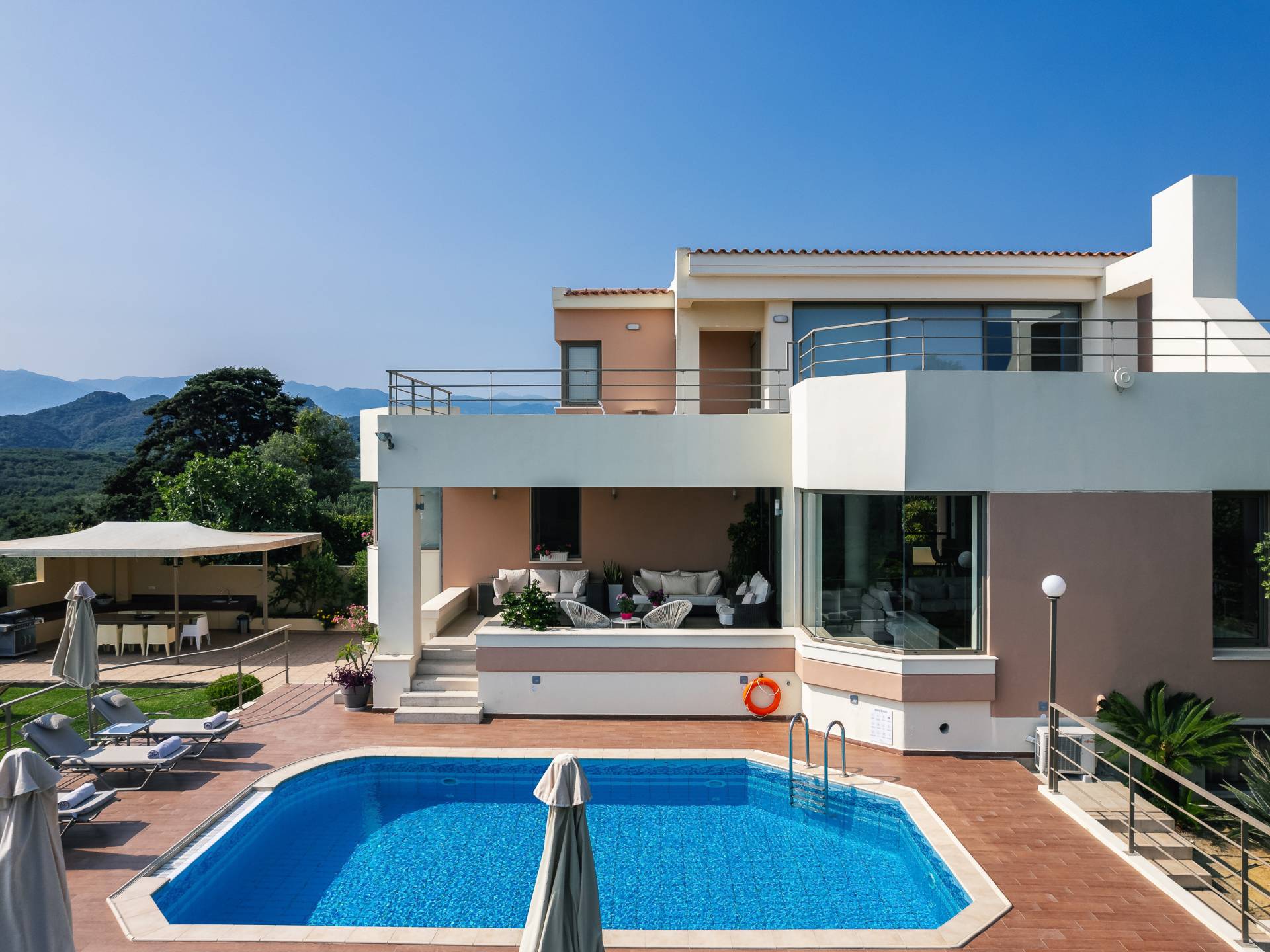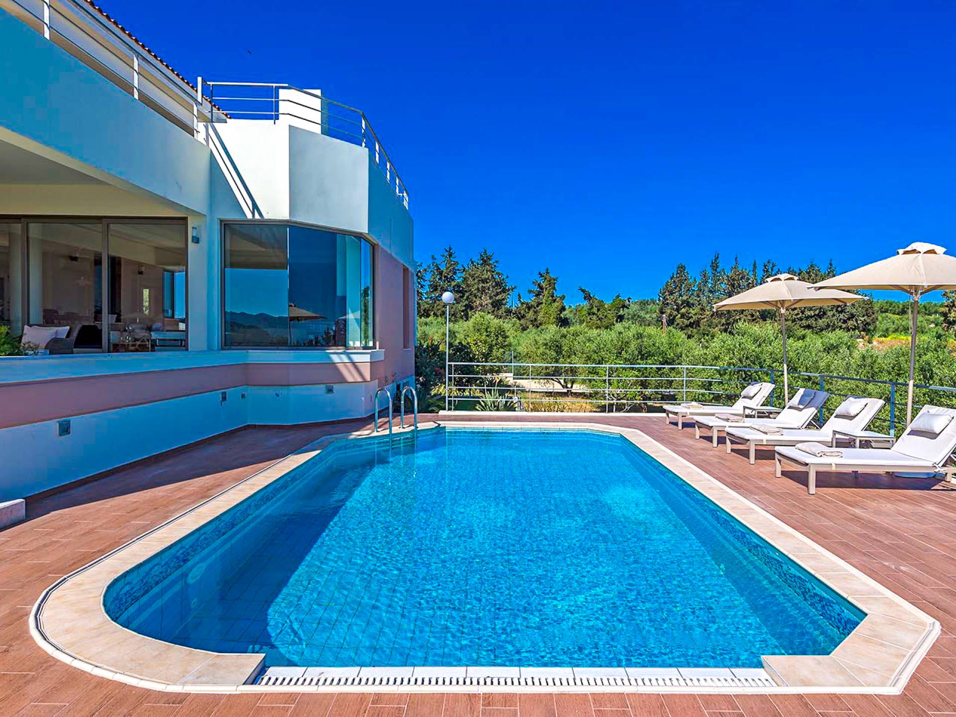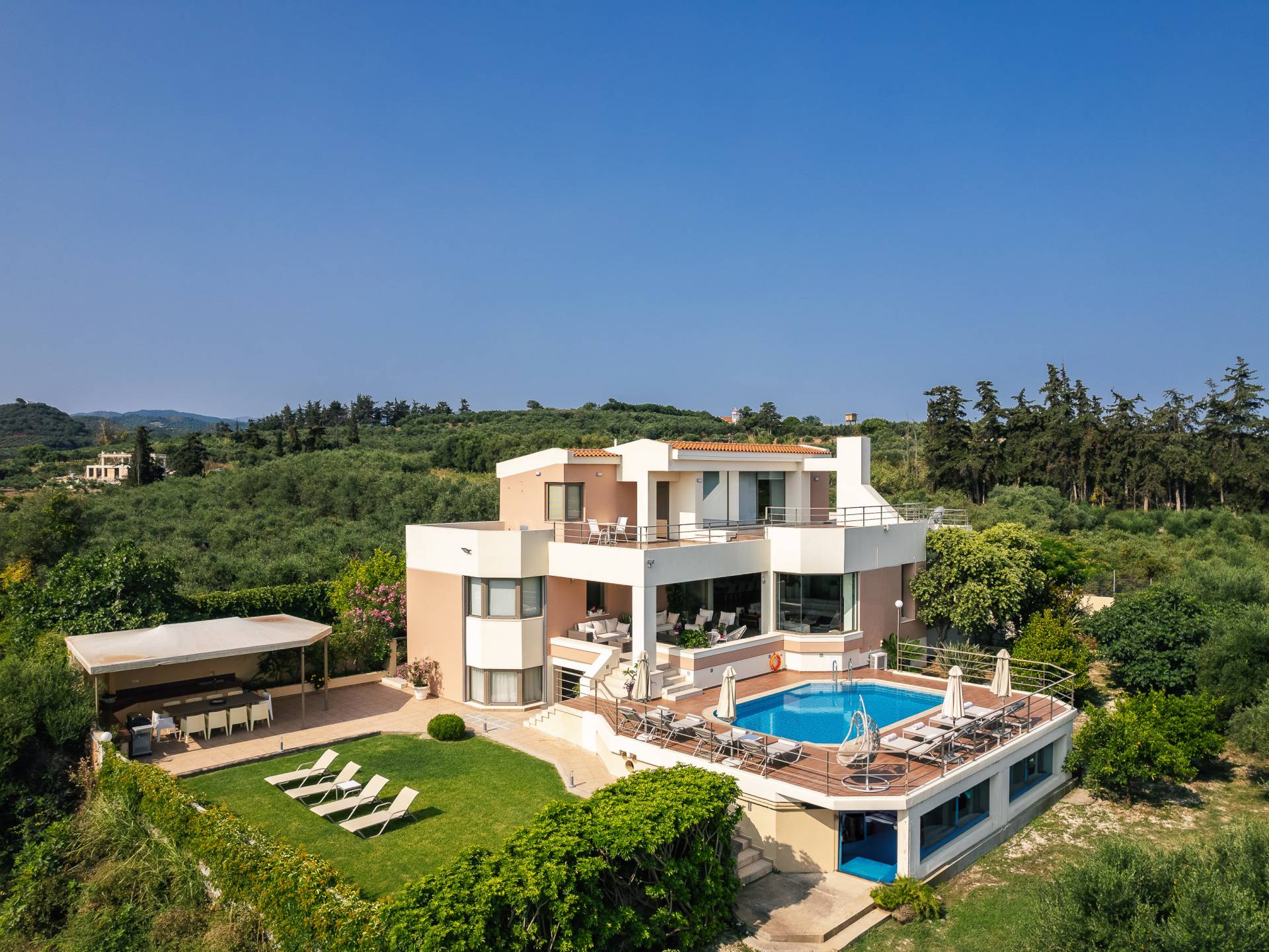 Située sur un terrain privé paisible de 2 800 m² entouré par la nature, Anastasia Villa Chania est une villa de luxe de 520 m² avec une qualité de construction de haut niveau et de riches installations. Face à la mer de Crète et à seulement 2,5 km de la plage de sable et de la célèbre zone touristique de Platanias, la villa offre une vue imprenable sur la mer et les montagnes environnantes. Une atmosphère paisible et des équipements modernes pour des vacances reposantes, parfaites pour les familles et les enfants, les couples, les jeunes mariés et les personnes de bon goût. Profitez de la tranquillité, du confort et du luxe dans cette villa exquise et unique.