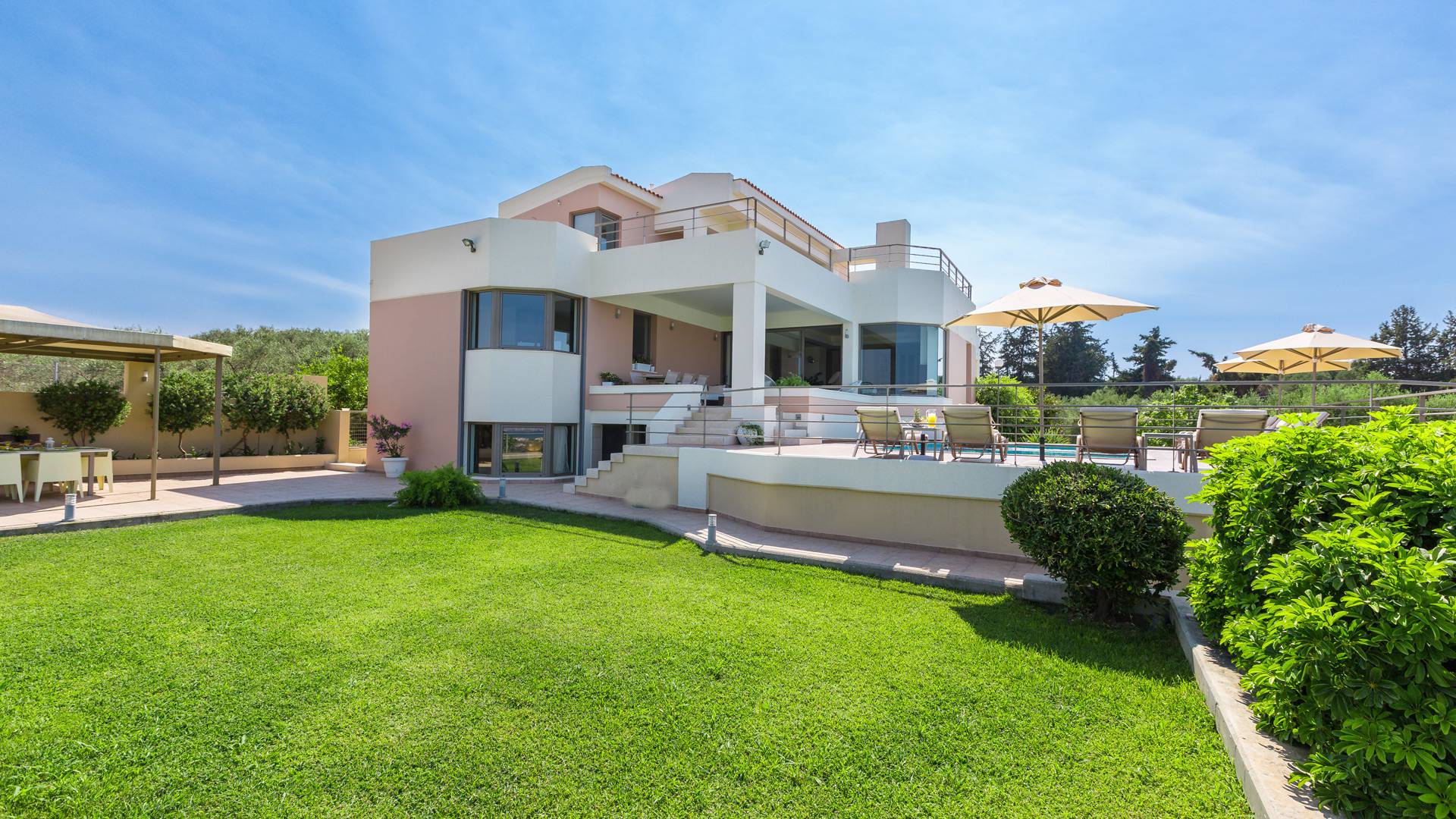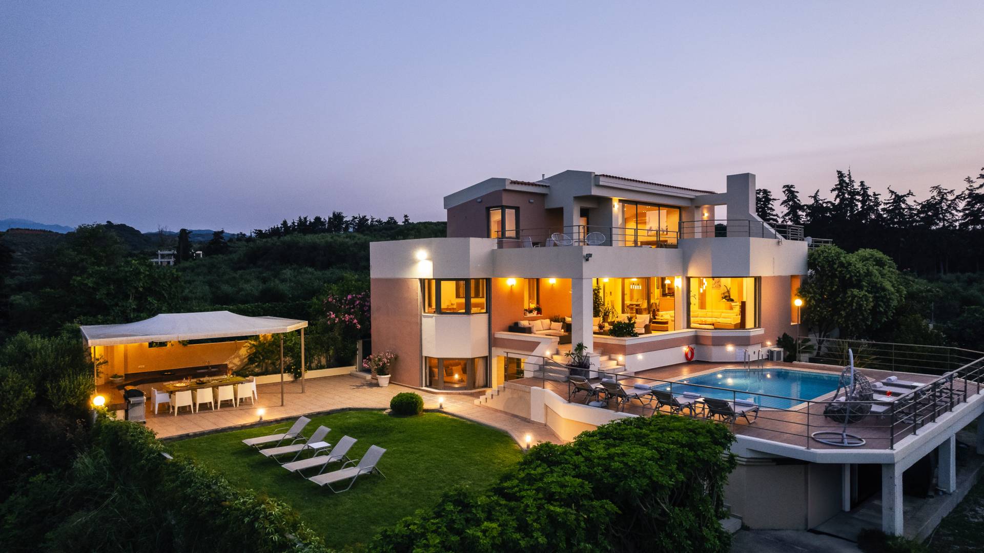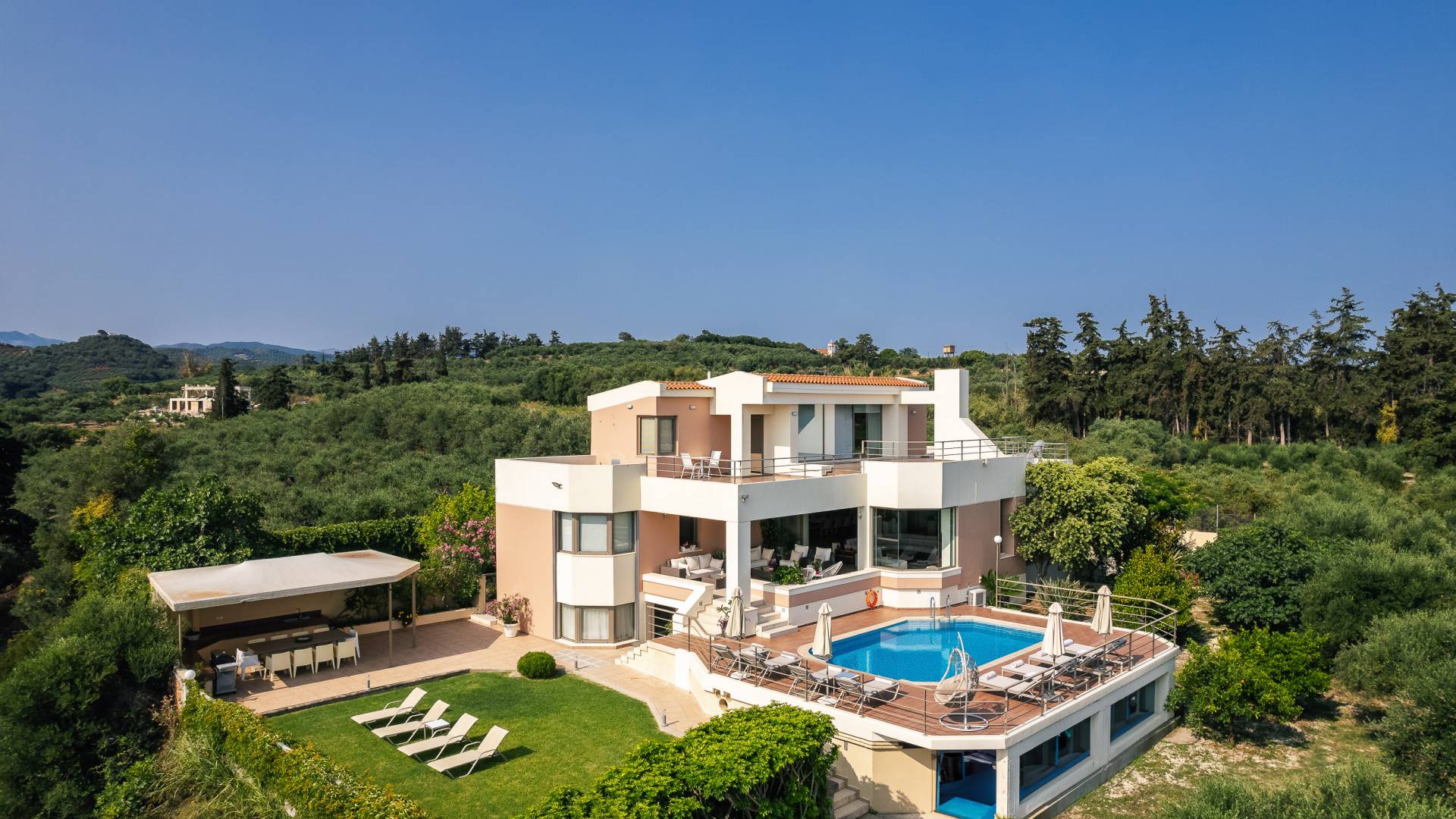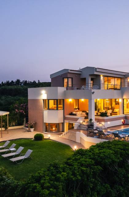 Située sur un terrain privé paisible de 2 800 m² entouré par la nature, Anastasia Villa Chania est une villa de luxe de 520 m² avec une qualité de construction de haut niveau et de riches installations. Face à la mer de Crète et à seulement 2,5 km de la plage de sable et de la célèbre zone touristique de Platanias, la villa offre une vue imprenable sur la mer et les montagnes environnantes. Une atmosphère paisible et des équipements modernes pour des vacances reposantes, parfaites pour les familles et les enfants, les couples, les jeunes mariés et les personnes de bon goût. Profitez de la tranquillité, du confort et du luxe dans cette villa exquise et unique.