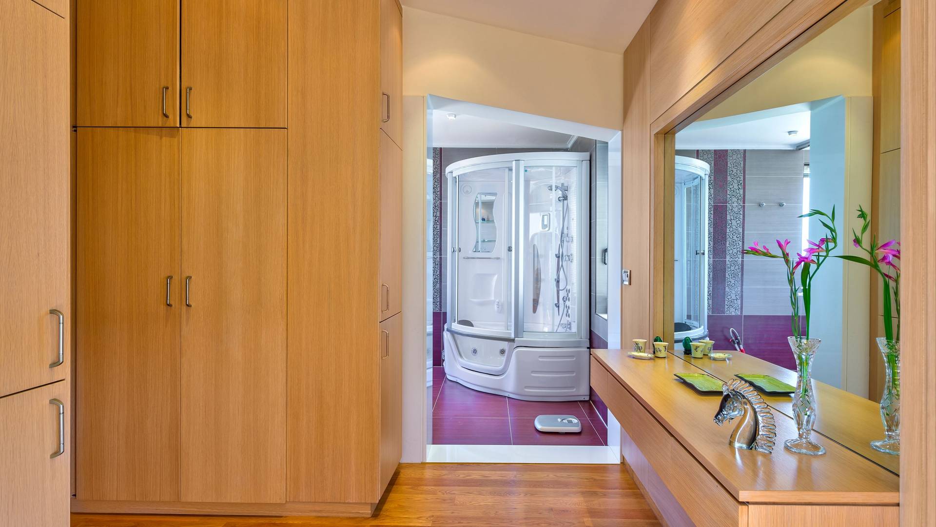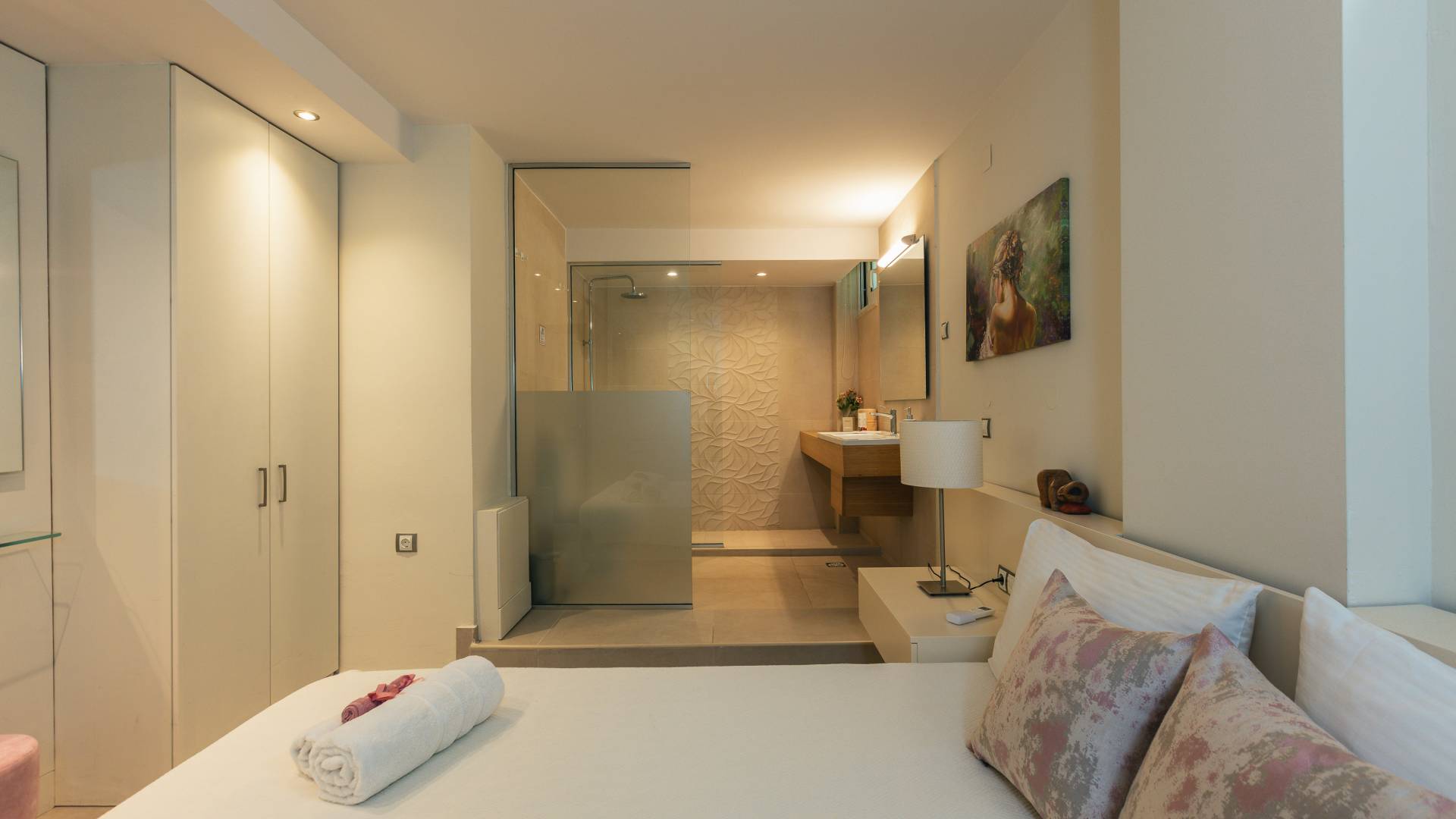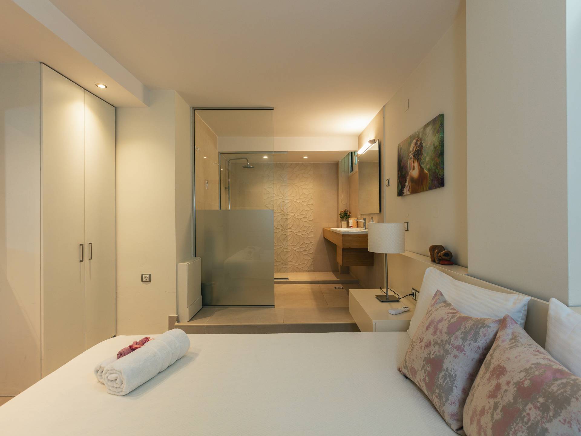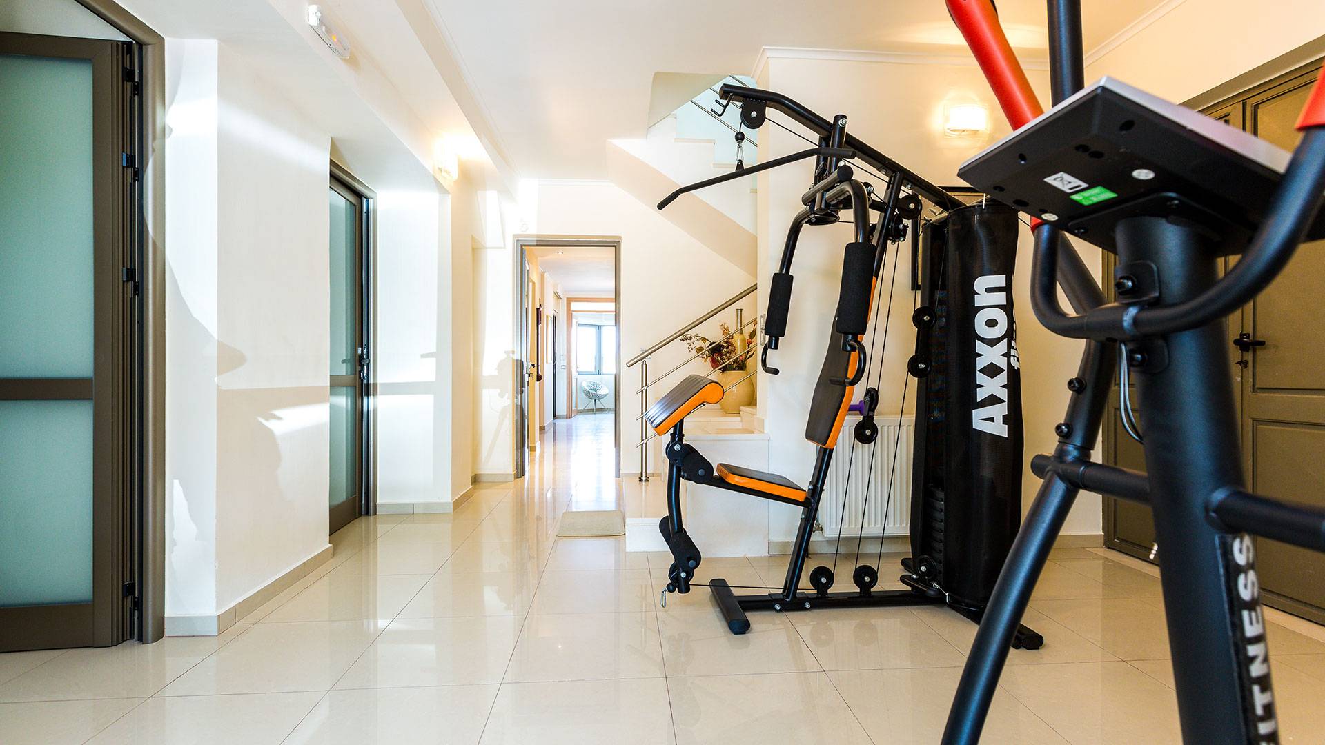 Un escalier depuis le salon au rez-de-chaussée vous mène à l'étage inférieur. A cet étage, il y a une salle de sport et quatre chambres avec salles de bains privatives. Trois des chambres disposent d'un lit king-size et l'autre de 2 lits simples. Notre salle de sport dispose d'une large collection d'équipements de fitness tels qu'un step, des appareils pour abdominaux et un appareil multifonctionnel de fitness. L'espace gym a accès au garage. Depuis l'étage inférieur, vous pouvez accéder à un espace extérieur comprenant un barbecue, un jardin et une piscine. Tous les étages sont également reliés par un ascenseur. Espace extérieur : L'espace extérieur magnifiquement aménagé offre une variété d'installations et de lieux de détente.