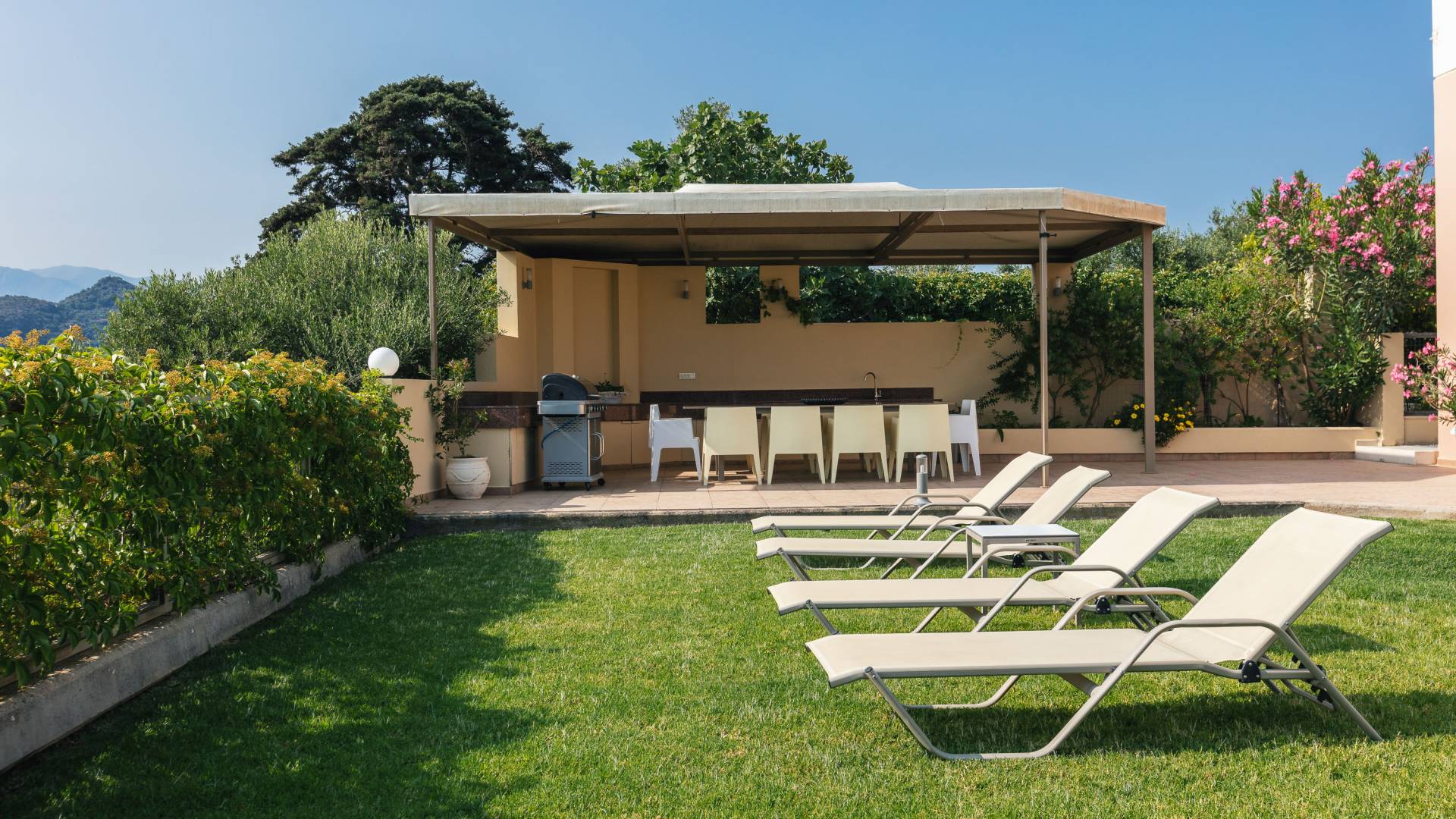Une piscine de 35 m², un jardin d'arbres fruitiers avec une variété de fruits comme la pêche, la pomme, la poire, le raisin, l'orange, la figue, la grenade et la cerise, un barbecue entièrement équipé au charbon et au gaz sous la pergola, 2 tables à manger en plein air sous pergolas, une variété d'endroits meublés (avec chaises longues, parasols, canapés d'extérieur et fauteuils) pour se détendre dans la véranda et les jardins autour de la villa, parking pour 4 voitures. L'ensemble de l'espace extérieur est totalement privé et clôturé, offrant 100% d'intimité à nos clients.