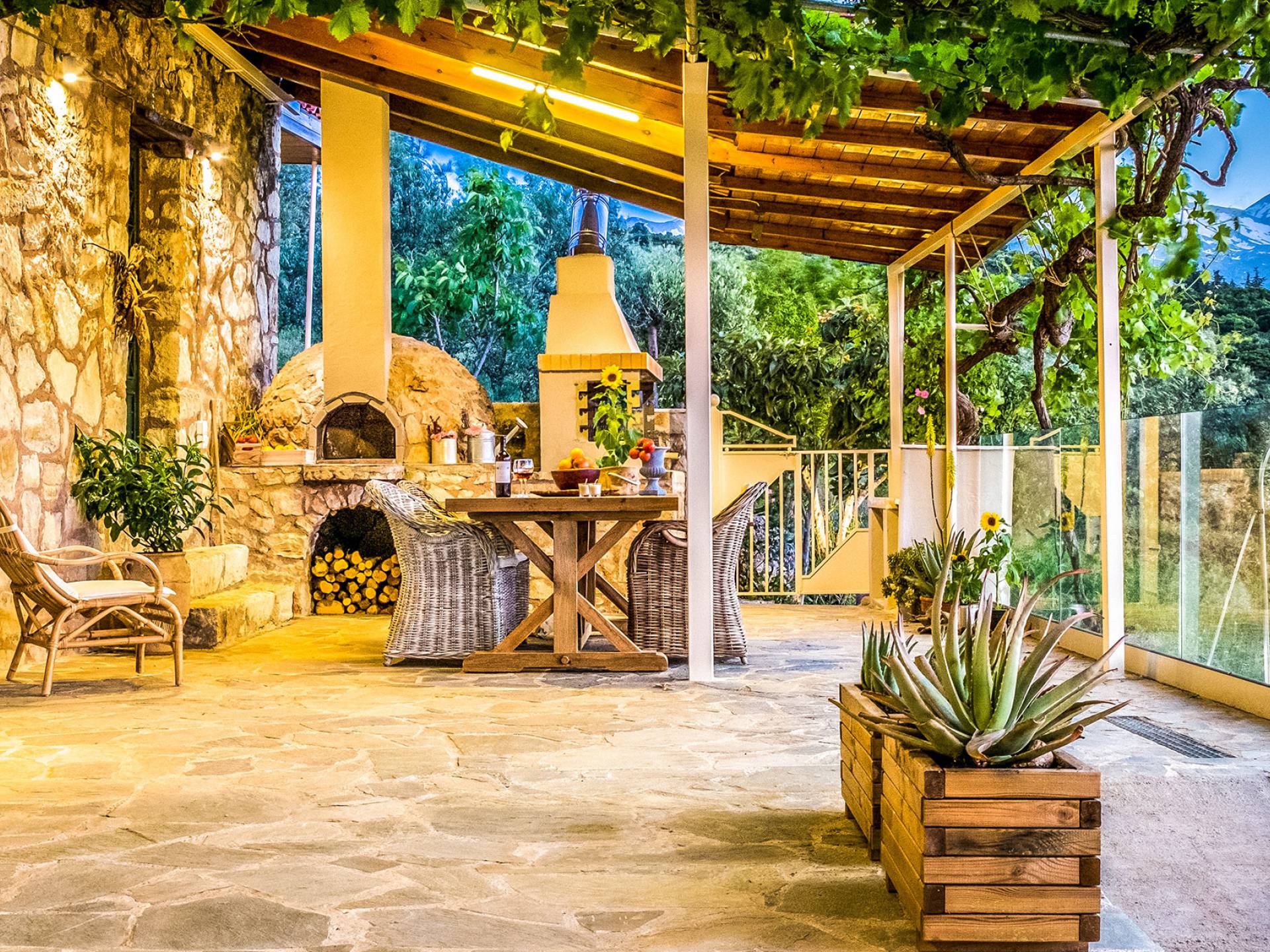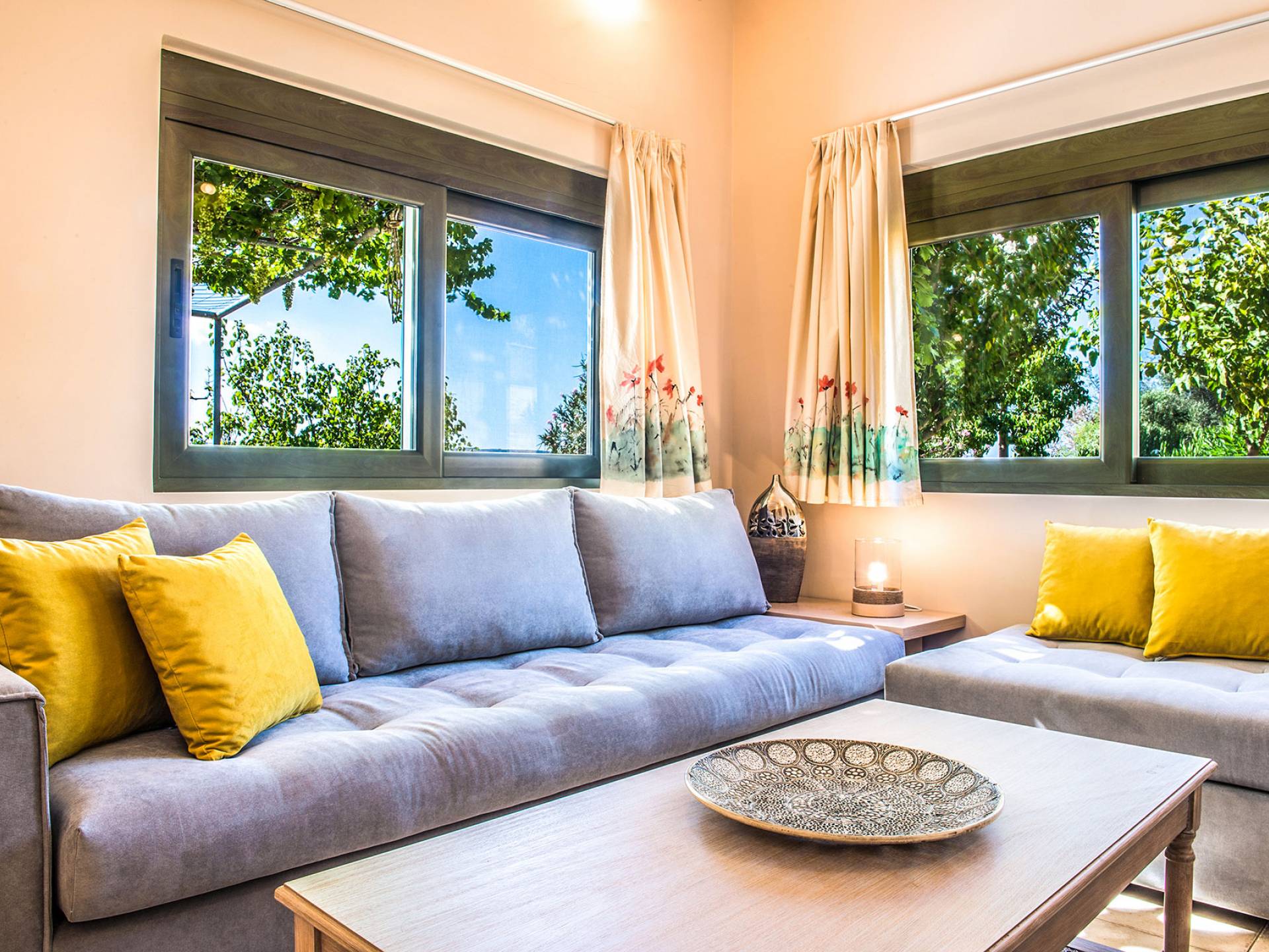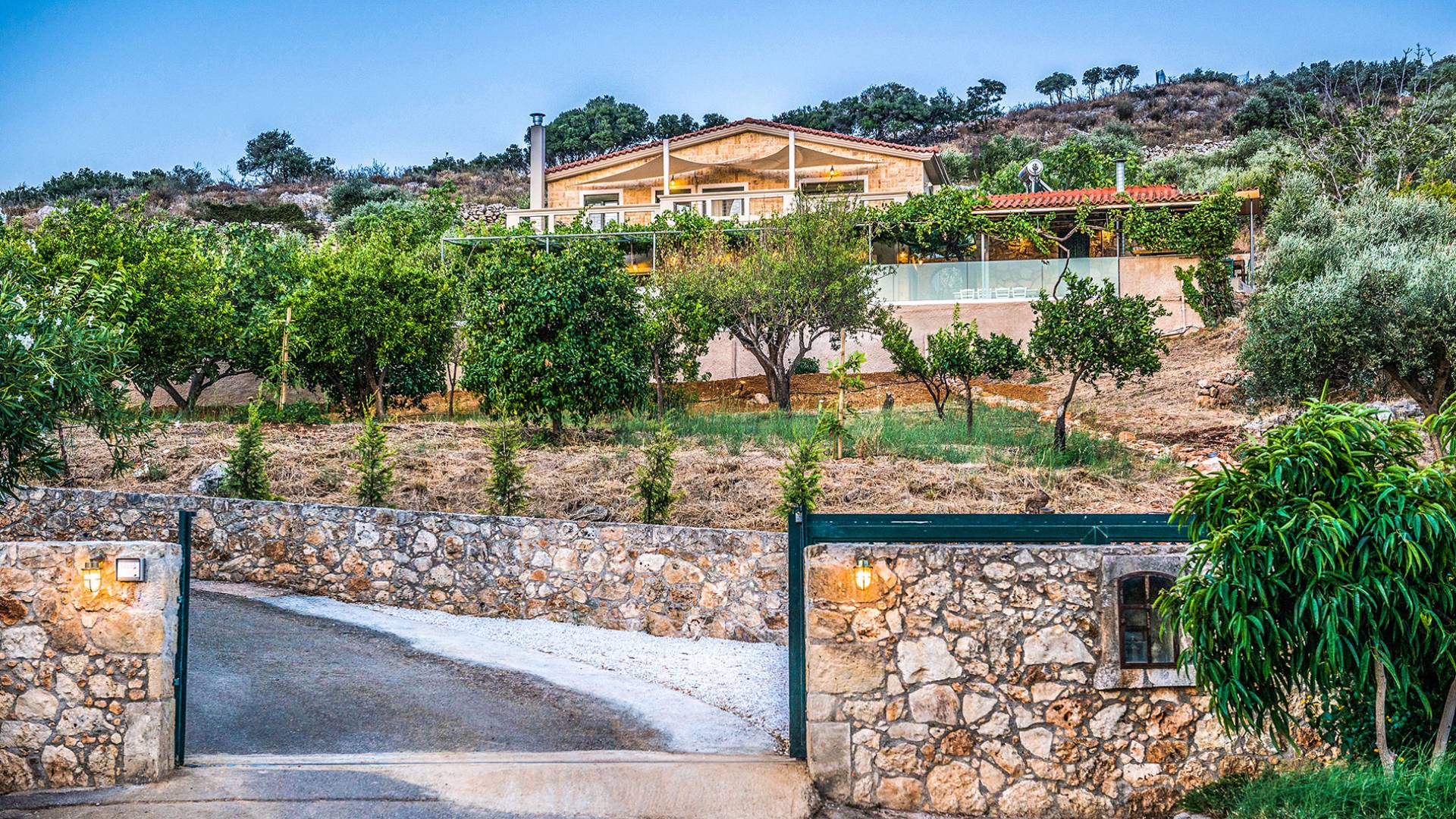 Les autres installations de l'Aoria Estate Chania comprennent une terrasse bien exposée avec coin salon et chaises longues, une véranda avec barbecue et coin repas, un jardin avec pelouse, fleurs et herbes aromatiques crétoises, une ferme avec toutes sortes d'arbres, par ex. olive, citron, orange, figue, abricot, etc. À l'extérieur, il y a une piscine privée CHAUFFÉE et un espace piscine spacieux pour se détendre près des chaises longues et profiter de la vue à couper le souffle.