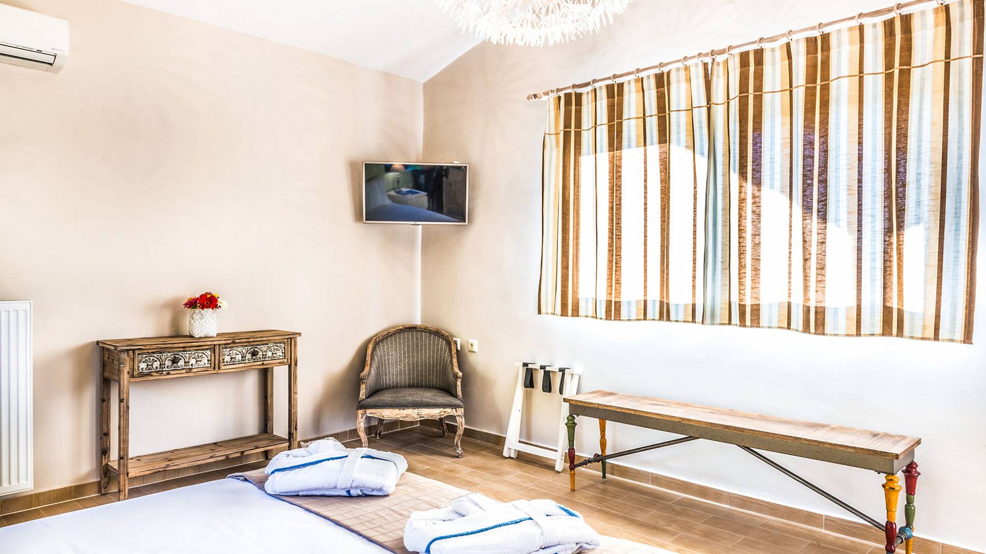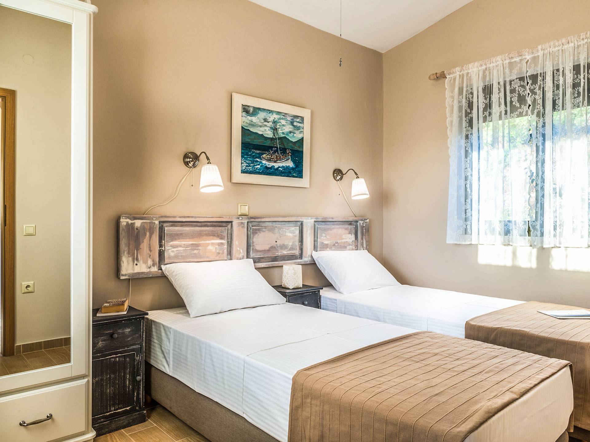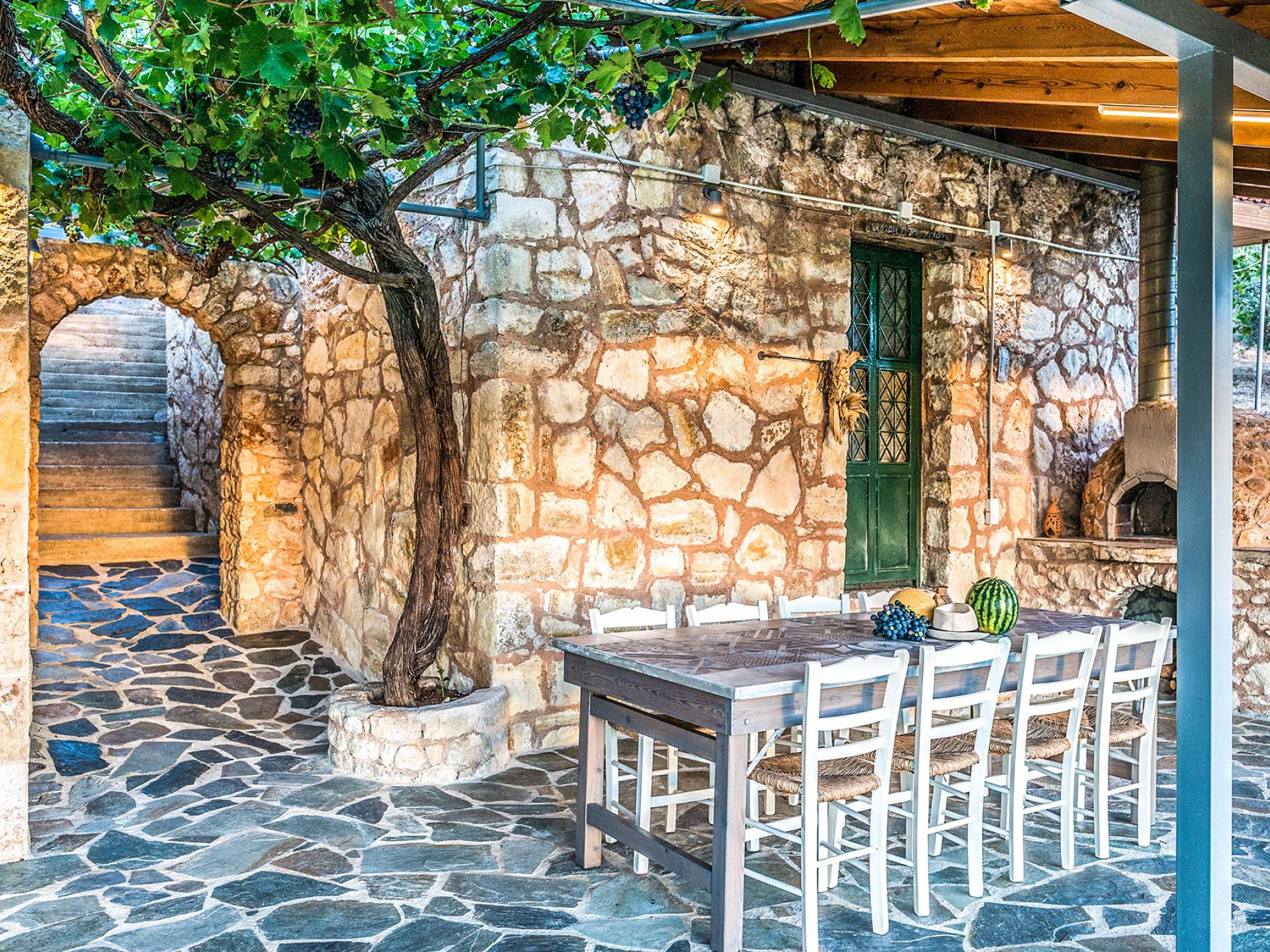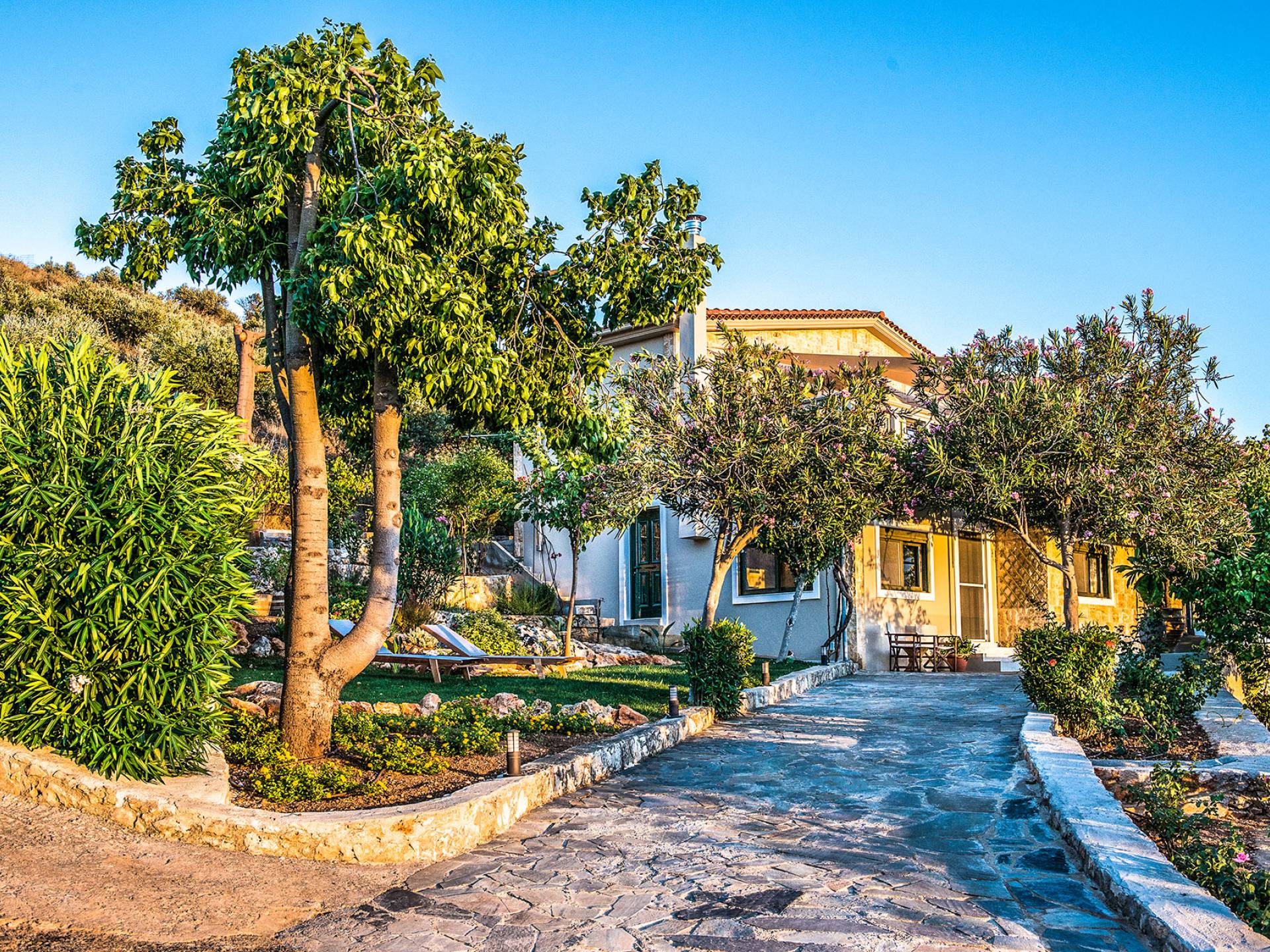 Les autres installations de l'Aoria Estate Chania comprennent une terrasse bien exposée avec coin salon et chaises longues, une véranda avec barbecue et coin repas, un jardin avec pelouse, fleurs et herbes aromatiques crétoises, une ferme avec toutes sortes d'arbres, par ex. olive, citron, orange, figue, abricot, etc. À l'extérieur, il y a une piscine privée CHAUFFÉE et un espace piscine spacieux pour se détendre près des chaises longues et profiter de la vue à couper le souffle.