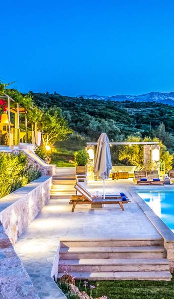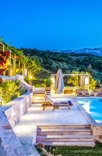 Aoria Estate Chania est une toute nouvelle retraite de luxe spacieuse avec une piscine privée de 170 m² dans un domaine crétois traditionnel. Située à proximité d'Armenoi et de Kalyves, cette location de vacances est située à 18 km de La Canée et offre une vue sur la vallée d'Apokoronas entourée par les montagnes blanches de Crète. Une location de vacances distinctive alliant intimité, luxe et confort, idéale pour les familles et les amis. Ressentez l'hospitalité hellénique, explorez des goûts naturels uniques, sentez la vraie Crète !