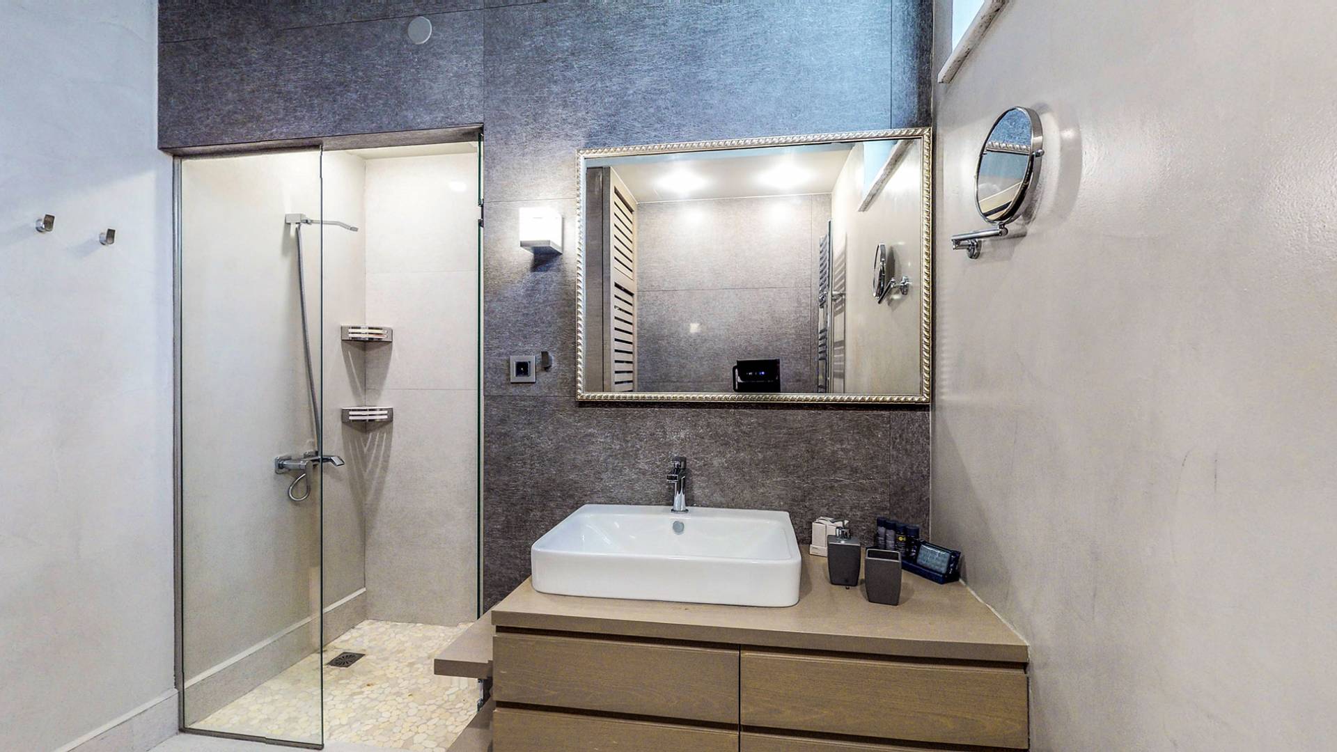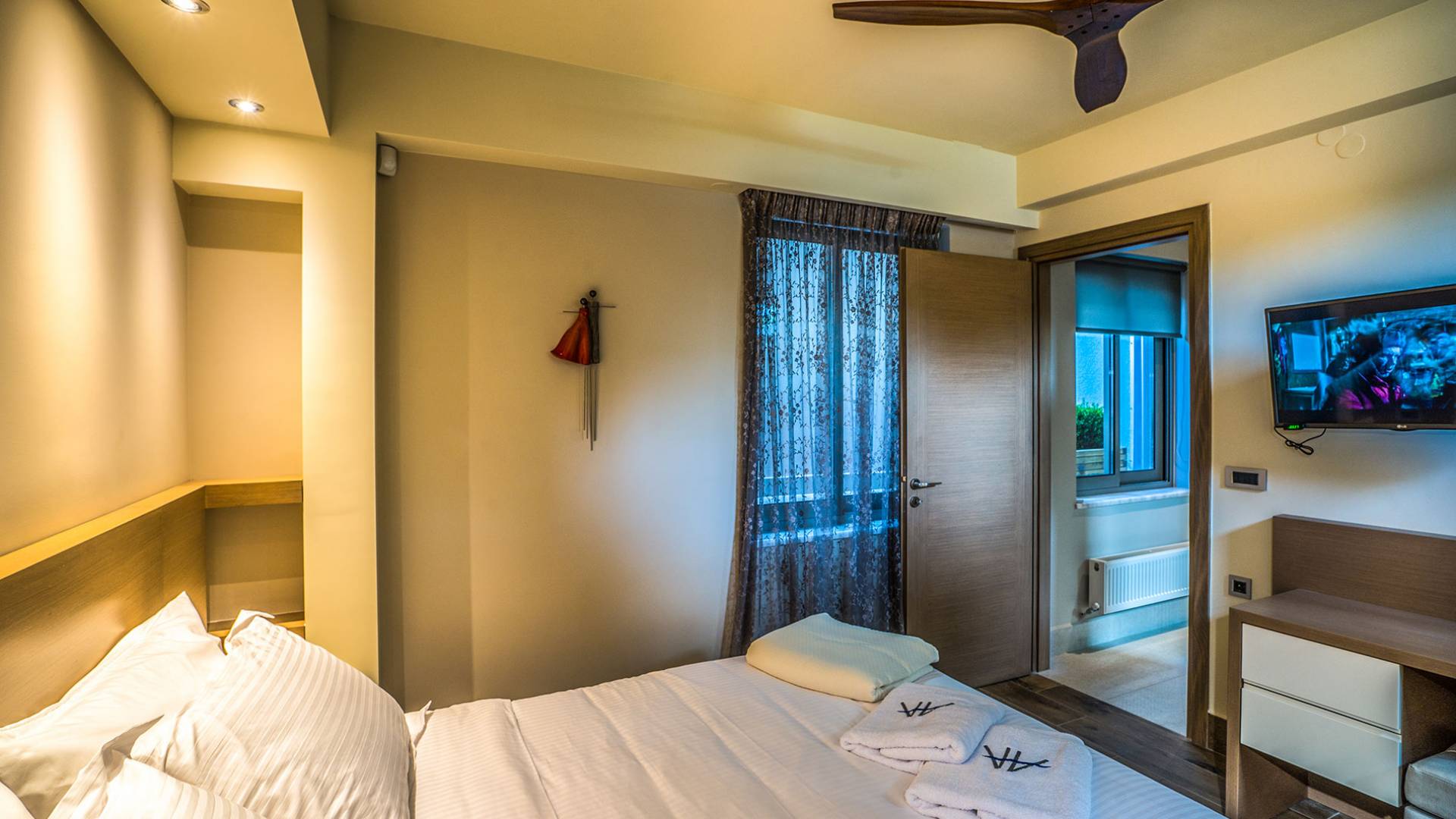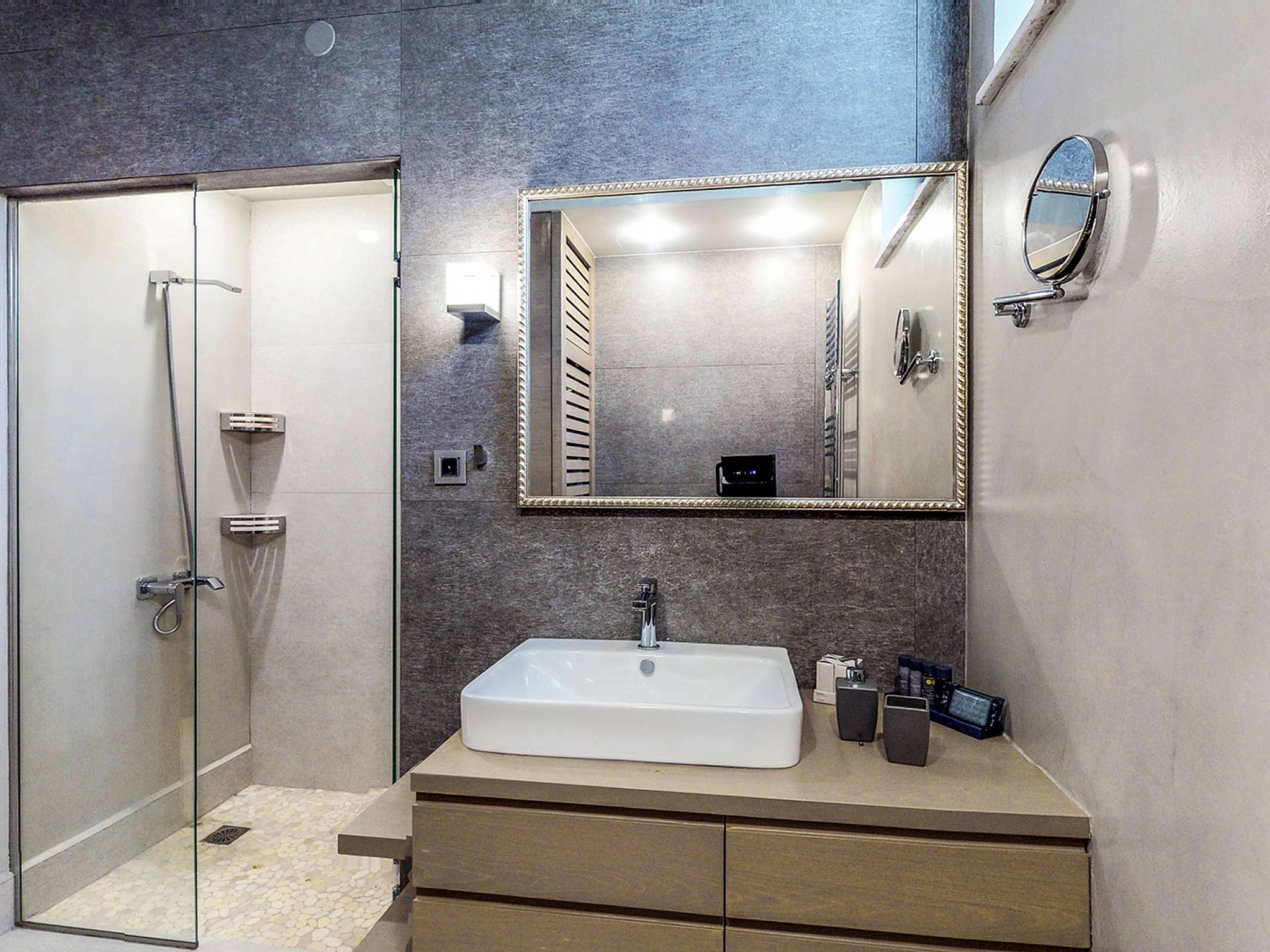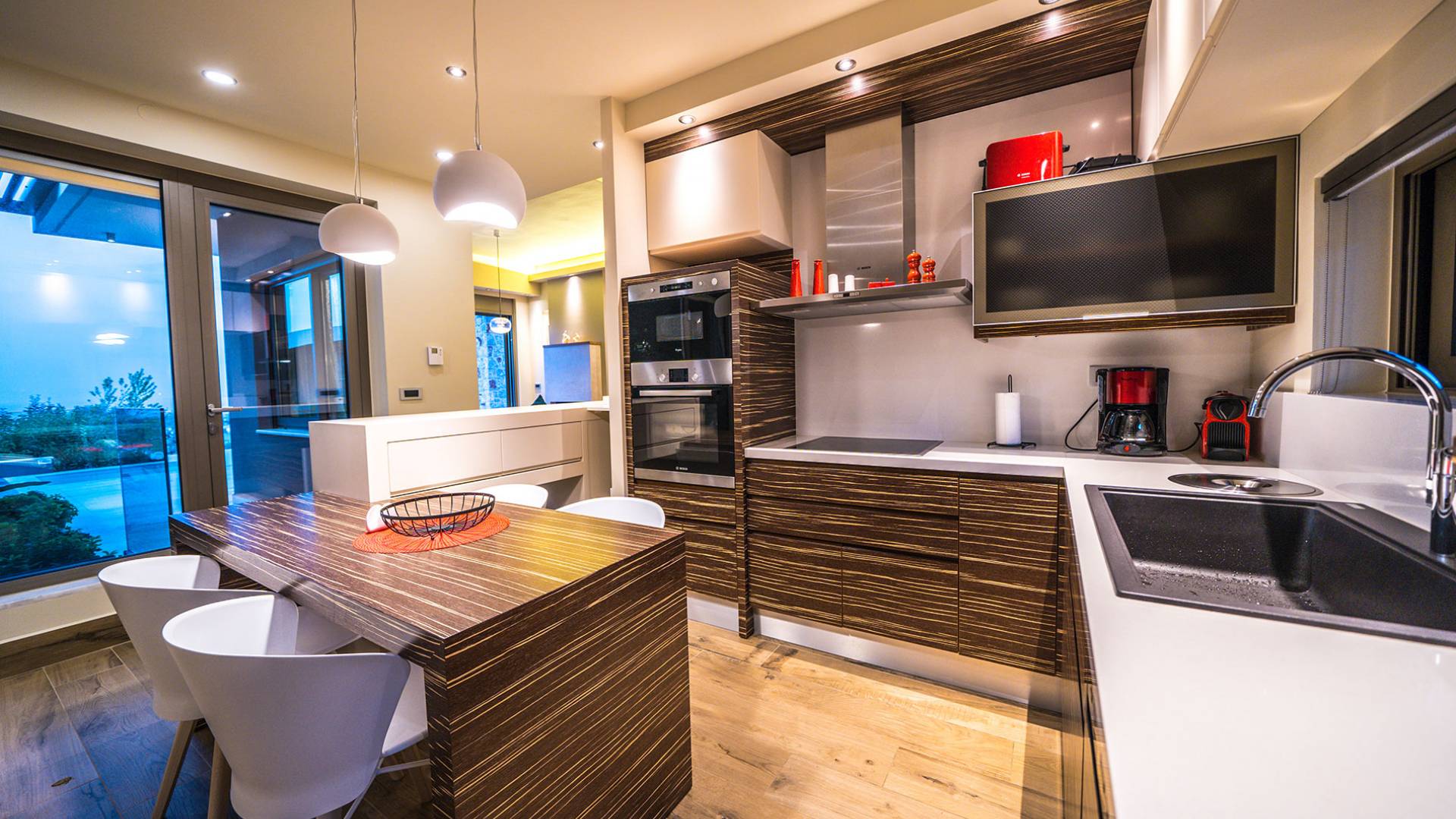 Ariadne Villa Chania se compose de 3 niveaux et peut accueillir jusqu'à 8 adultes + 1 enfant. Au rez-de-chaussée, il y a le salon principal avec de grands et confortables canapés, un coin repas et une cuisine entièrement équipée. Il y a aussi 2 chambres avec lits doubles qui partagent une salle de bain avec douche. Au premier étage, il y a une autre chambre avec un grand lit double et une salle de bain avec douche. À l'étage inférieur, il y a un autre salon, une chambre avec une salle de bain en suite et une salle de jeux avec une salle de gym et une table de billard.