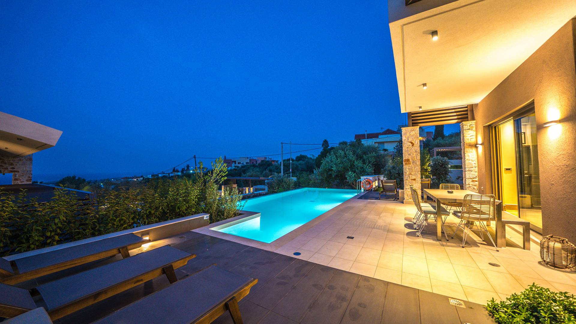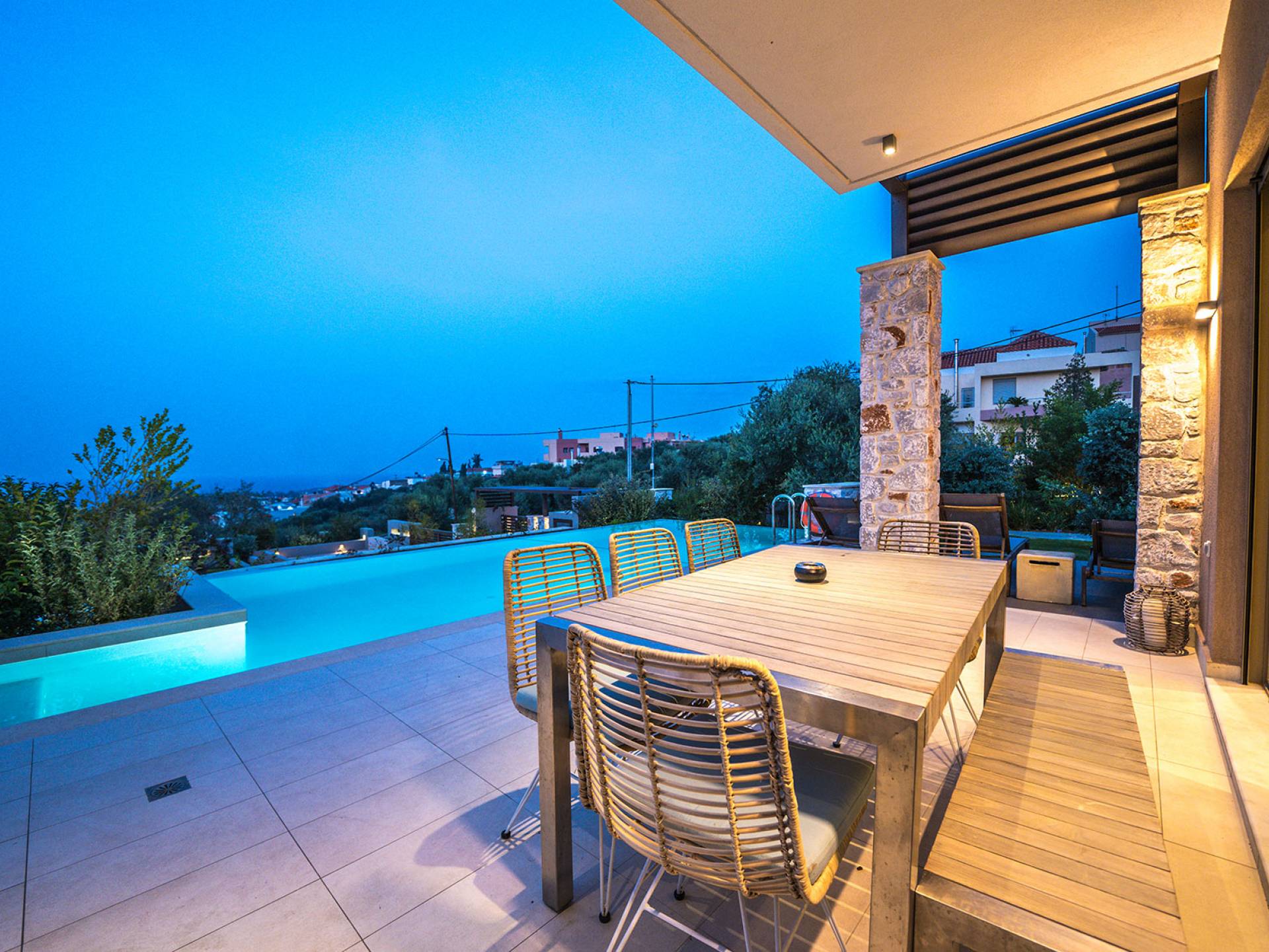 Ariadne villa Chania est une location de villa de luxe avec 4 chambres et une piscine privée, située sur une colline avec vue panoramique sur la mer de Crète et le village de Daratso. À 200 mètres de la villa, vous trouverez un restaurant, un supermarché et des cafés sur la place principale du village de Daratso. C'est un choix idéal pour un groupe d'amis, de couples ou de familles qui recherchent une ambiance sophistiquée et qui recherchent la base idéale pour explorer la région de La Canée et l'ouest de la Crète. Il est construit selon des normes élevées et il est dominé par la forte présence d'éléments locaux et une vue magnifique.