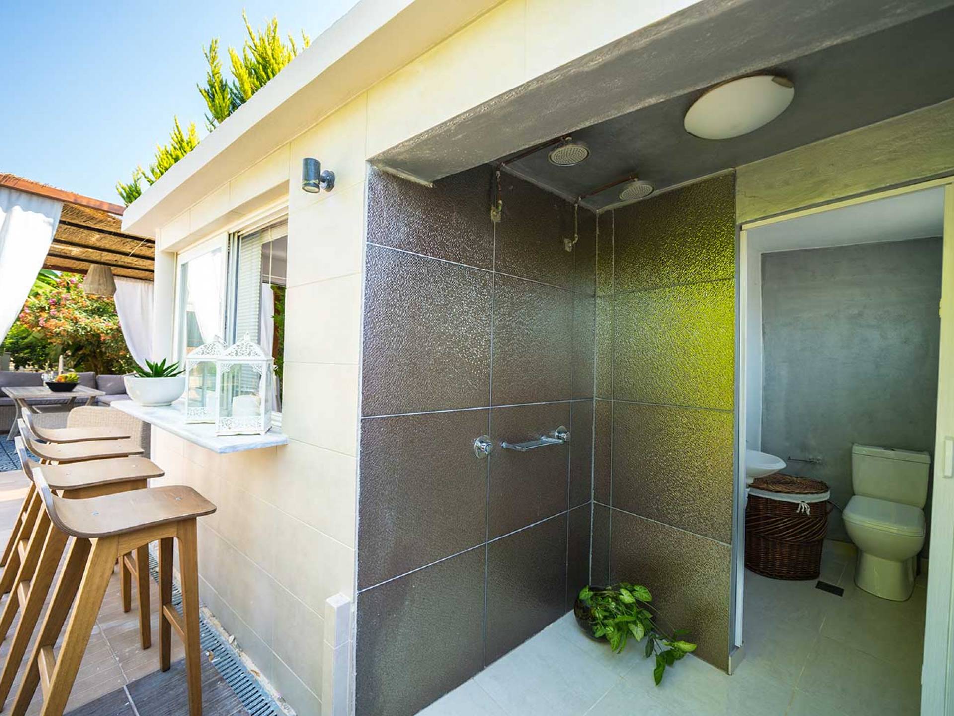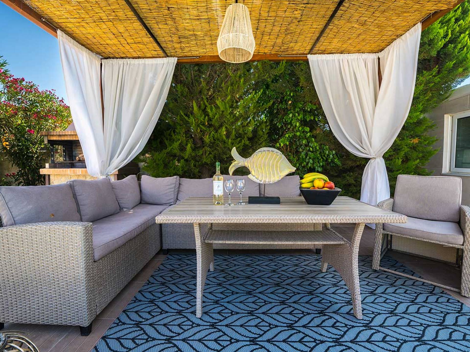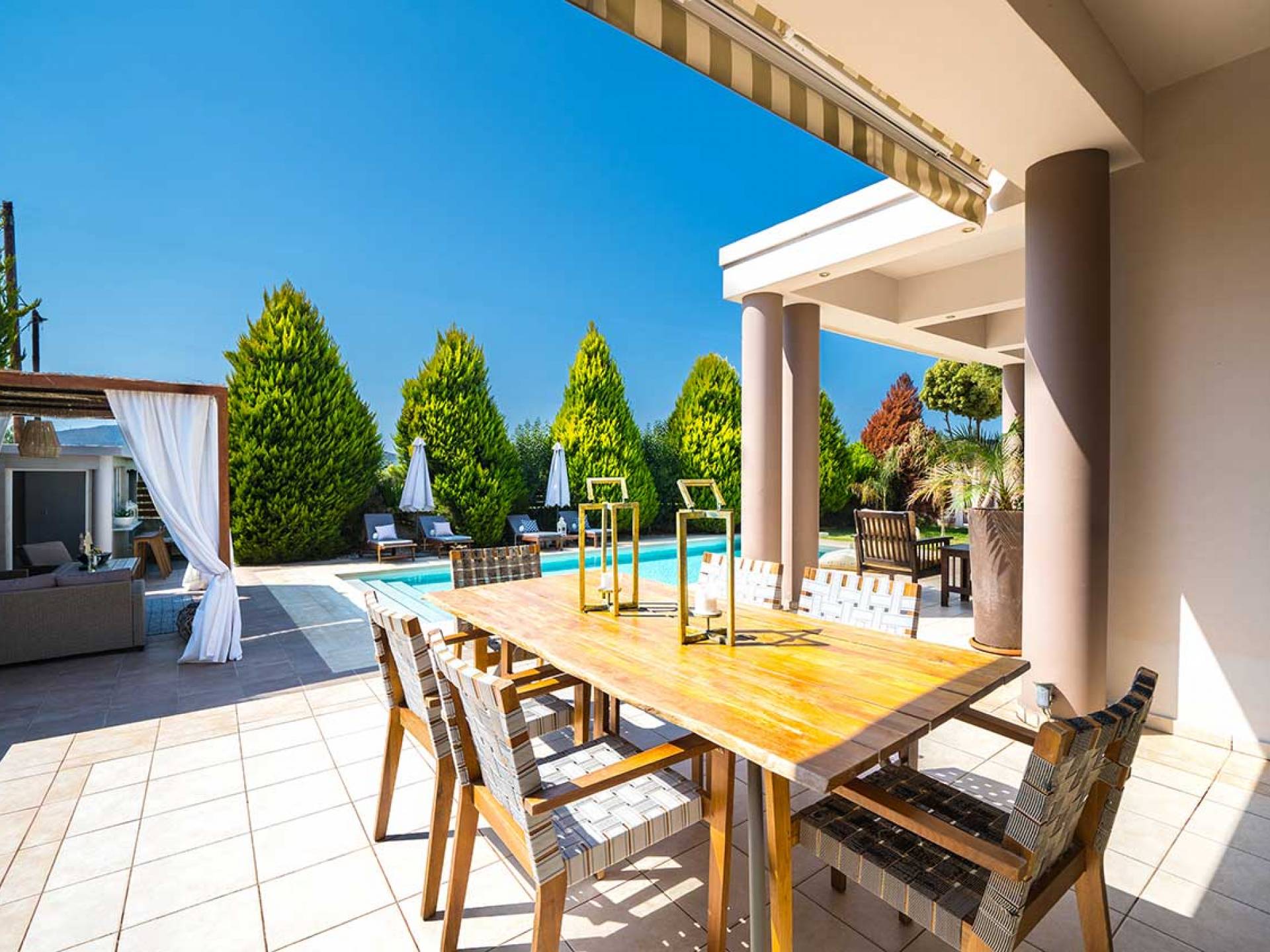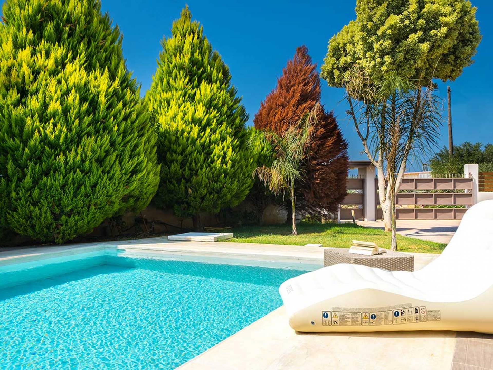 À l'extérieur, vous adorerez la piscine privée et l'immense jardin. Le jardin est entièrement clôturé pour plus d'intimité. Il y a aussi un coin repas extérieur pour profiter de vos repas sous le soleil crétois. Généralement, un endroit parfait pour des vacances reposantes, près de la plage et du centre-ville.