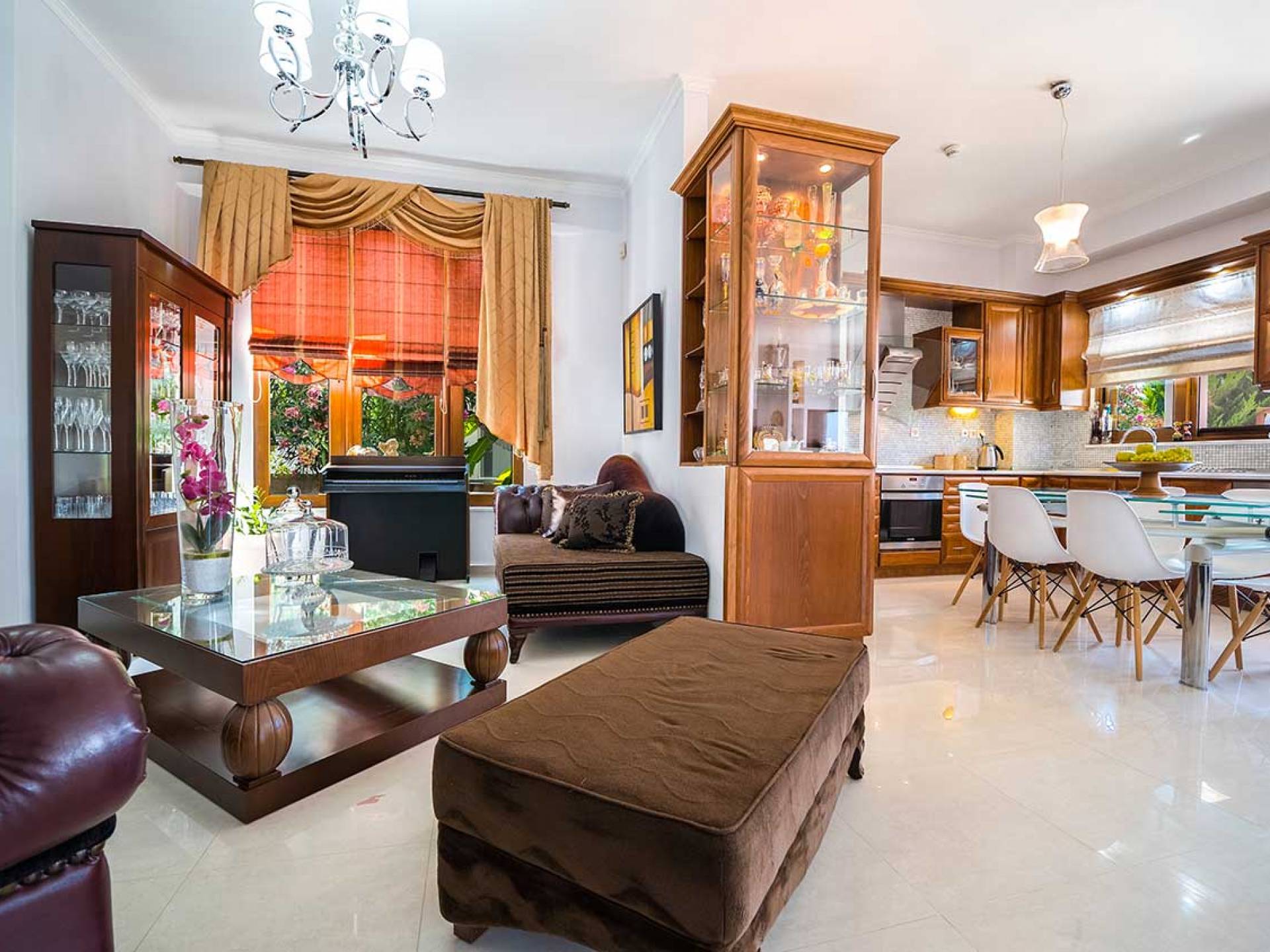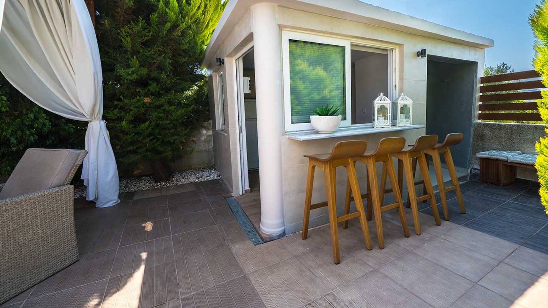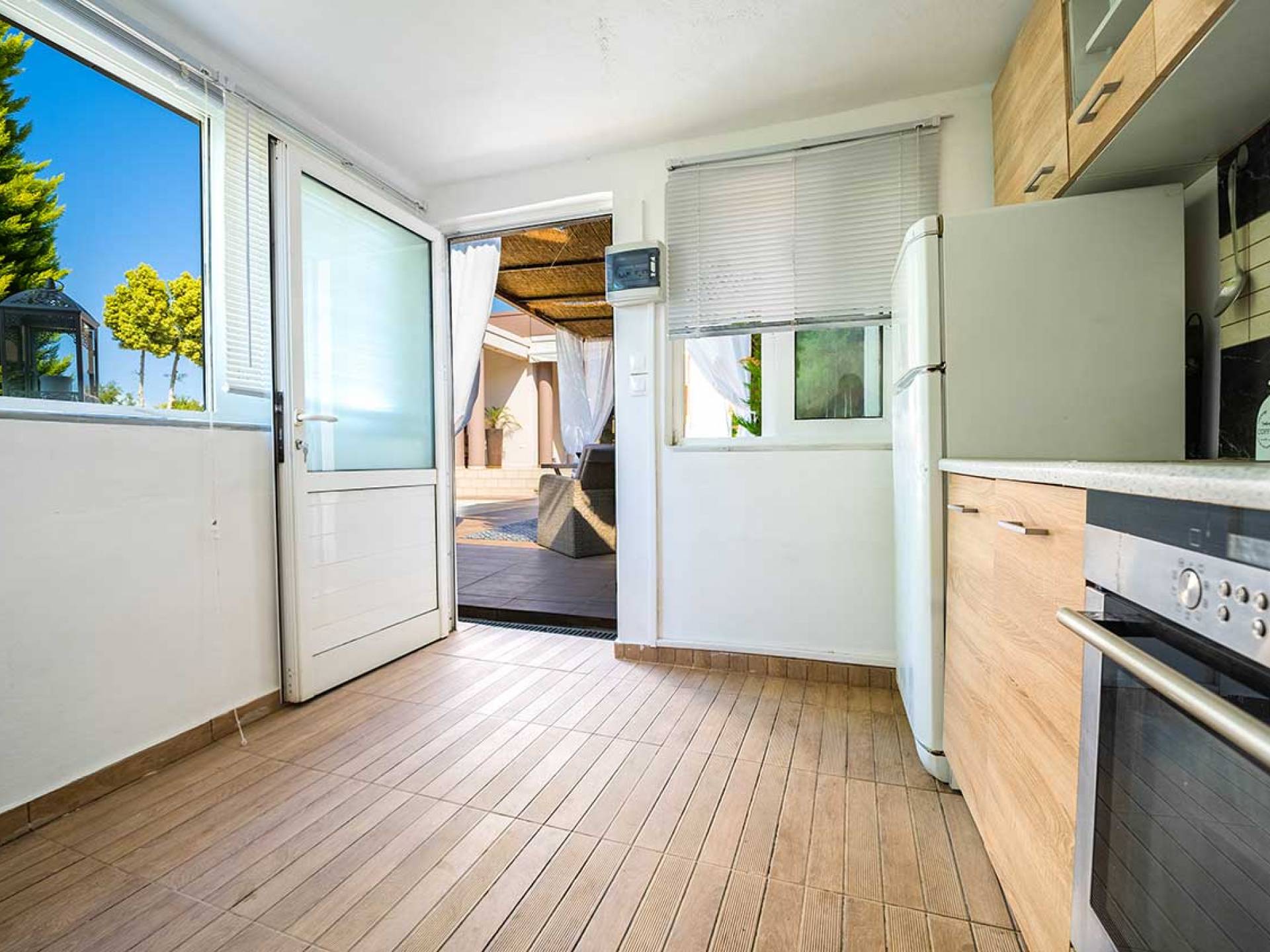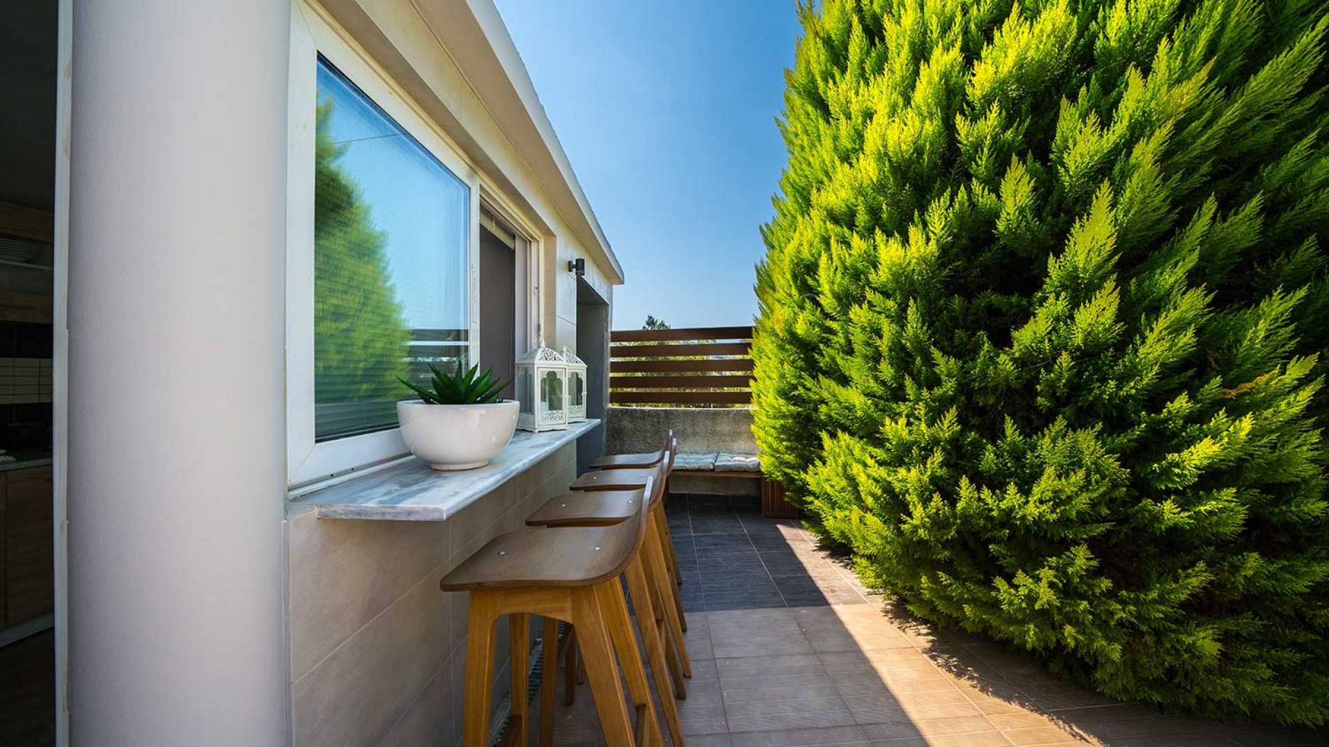 À l'extérieur, vous adorerez la piscine privée et l'immense jardin. Le jardin est entièrement clôturé pour plus d'intimité. Il y a aussi un coin repas extérieur pour profiter de vos repas sous le soleil crétois. Généralement, un endroit parfait pour des vacances reposantes, près de la plage et du centre-ville.