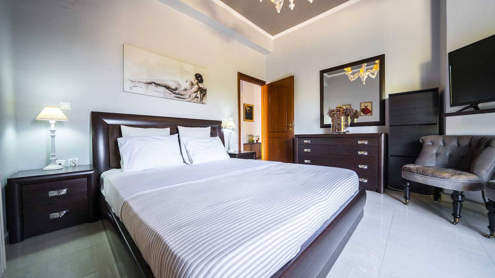 Arka Villa Chania dispose de 4 chambres et 2 salles de bains avec baignoires et peut facilement accueillir jusqu'à 10 personnes avec des lits supplémentaires. Il y a 3 chambres doubles et 1 autre chambre avec 2 lits simples. En entrant dans l'Arka Villa Chania, vous ferez face au grand salon avec des canapés confortables, un coin repas et une cuisine entièrement équipée. Arka Villa Chania dispose d'un mobilier de haute qualité et de toutes les commodités nécessaires pour un séjour confortable !