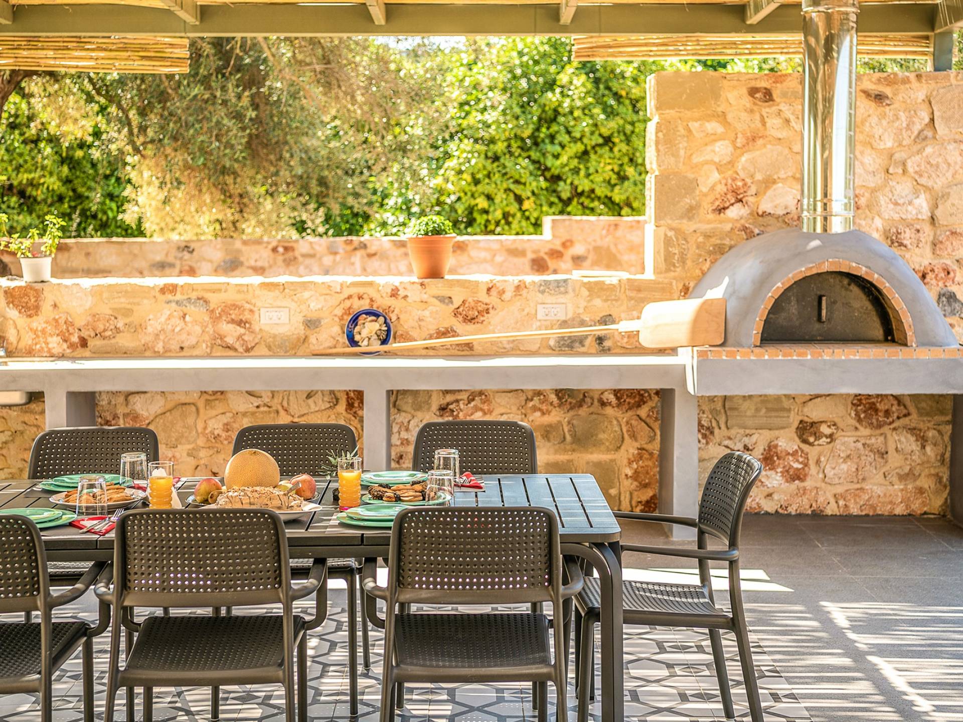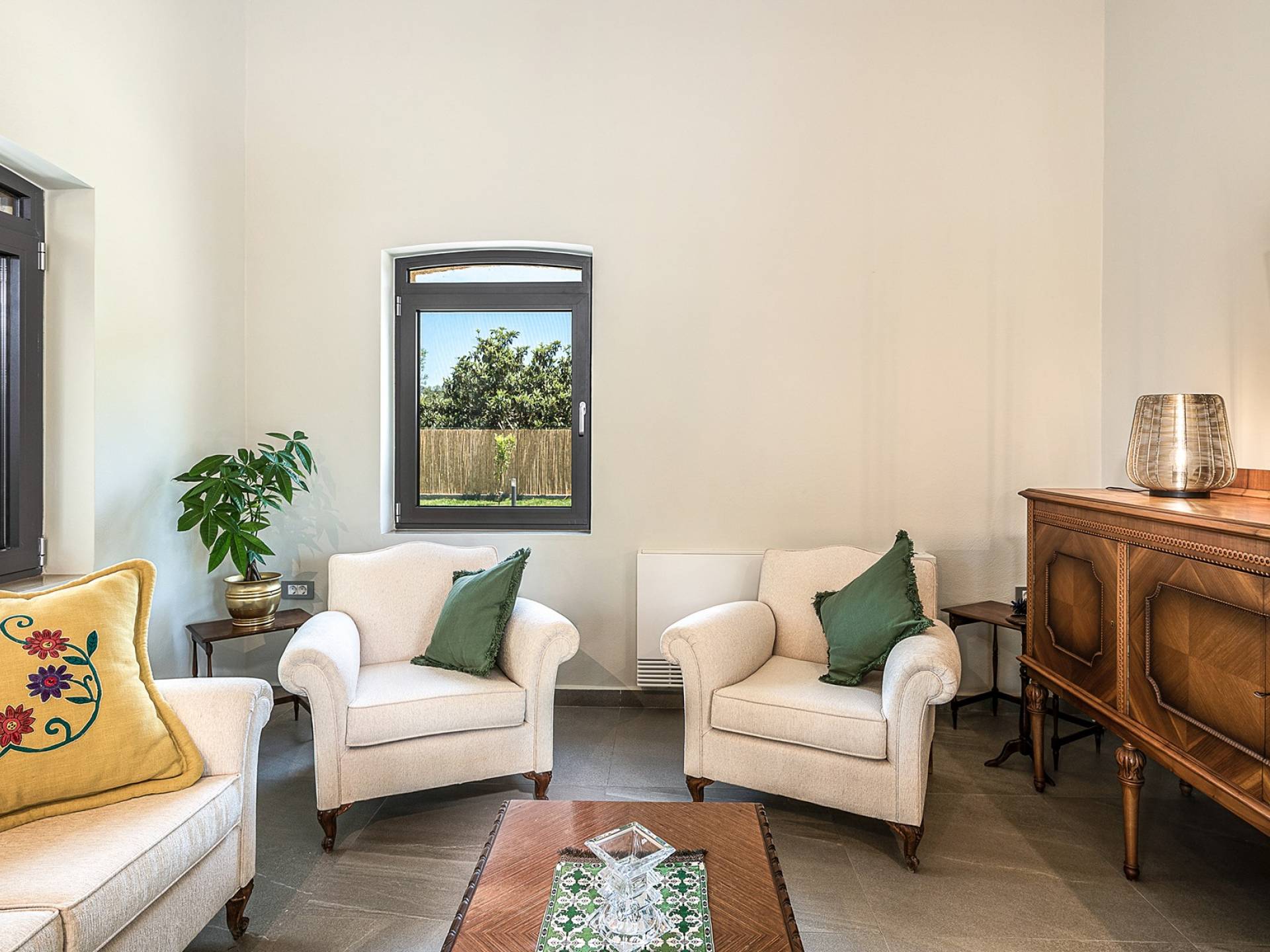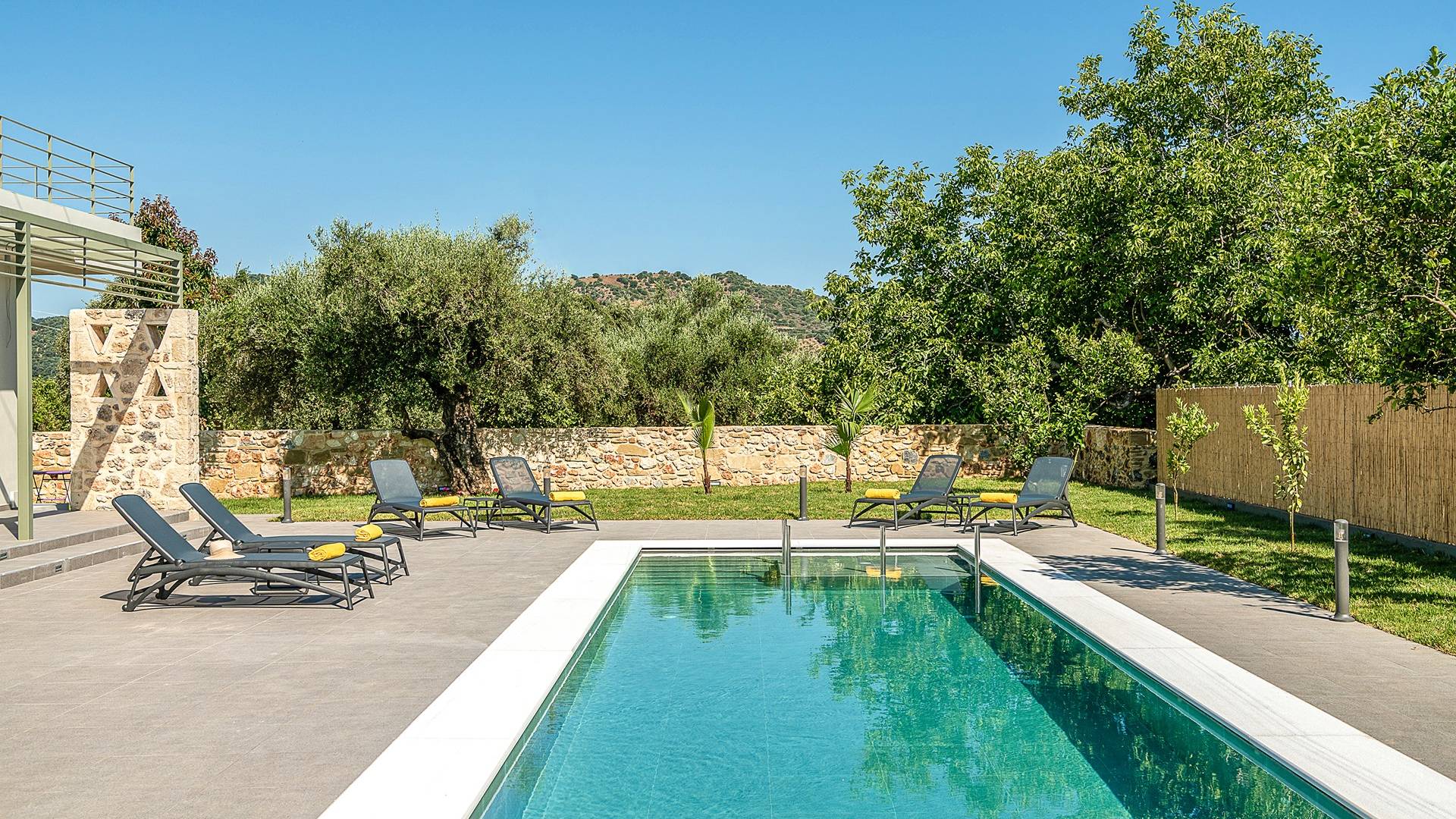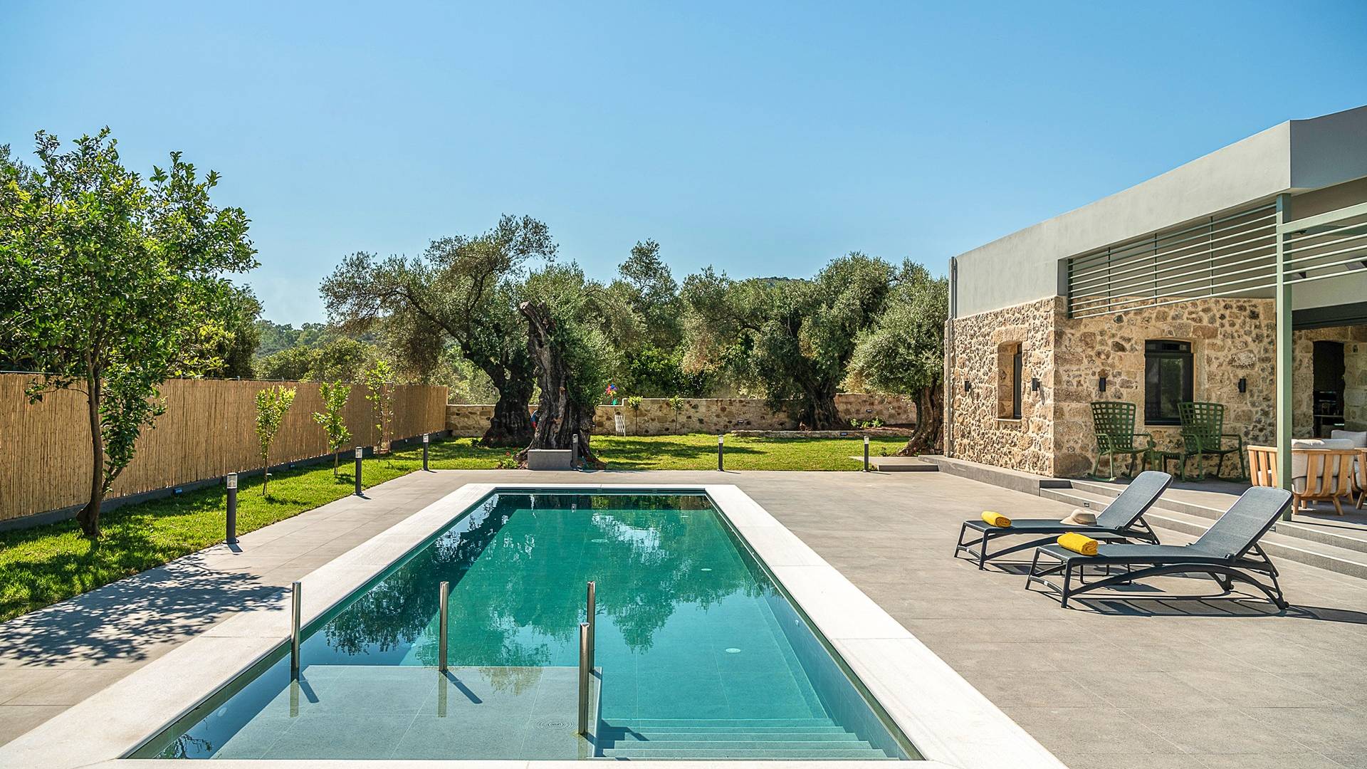 L'intérieur d'Athena Elea comprend 3 chambres doubles, 3 salles de bains, un salon/salle à manger et une cuisine. Dans tout l'espace de la villa, le style moderne rencontre des éléments sélectionnés de la tradition familiale, notamment des meubles en bois fabriqués à la main et des textiles centenaires fabriqués par nos propres arrière-grands-mères. Le terrain de 1600 m² de la villa comprend des oliviers millénaires, une piscine (40 m²) et beaucoup d'espace pour la détente et les activités familiales. Une caractéristique unique à côté de la villa est un petit sanctuaire rénové, construit par la grand-mère du propriétaire au milieu du XXe siècle. Juste à côté de la parcelle de la villa, nous entretenons un verger biologique de 4 500 m², dans lequel les clients sont invités à se promener et à explorer les arbres fruitiers et les légumes de saison.