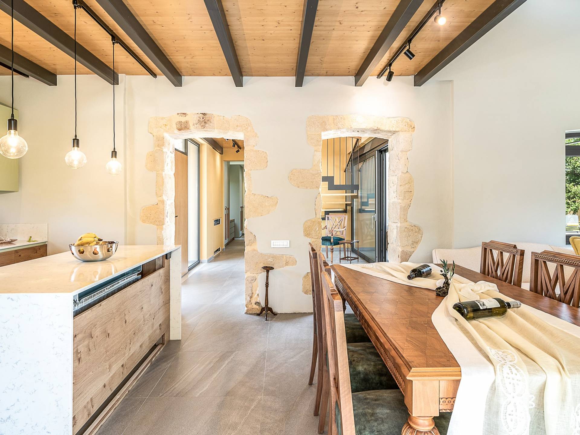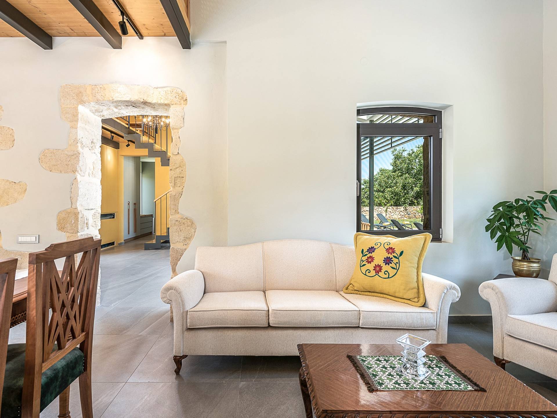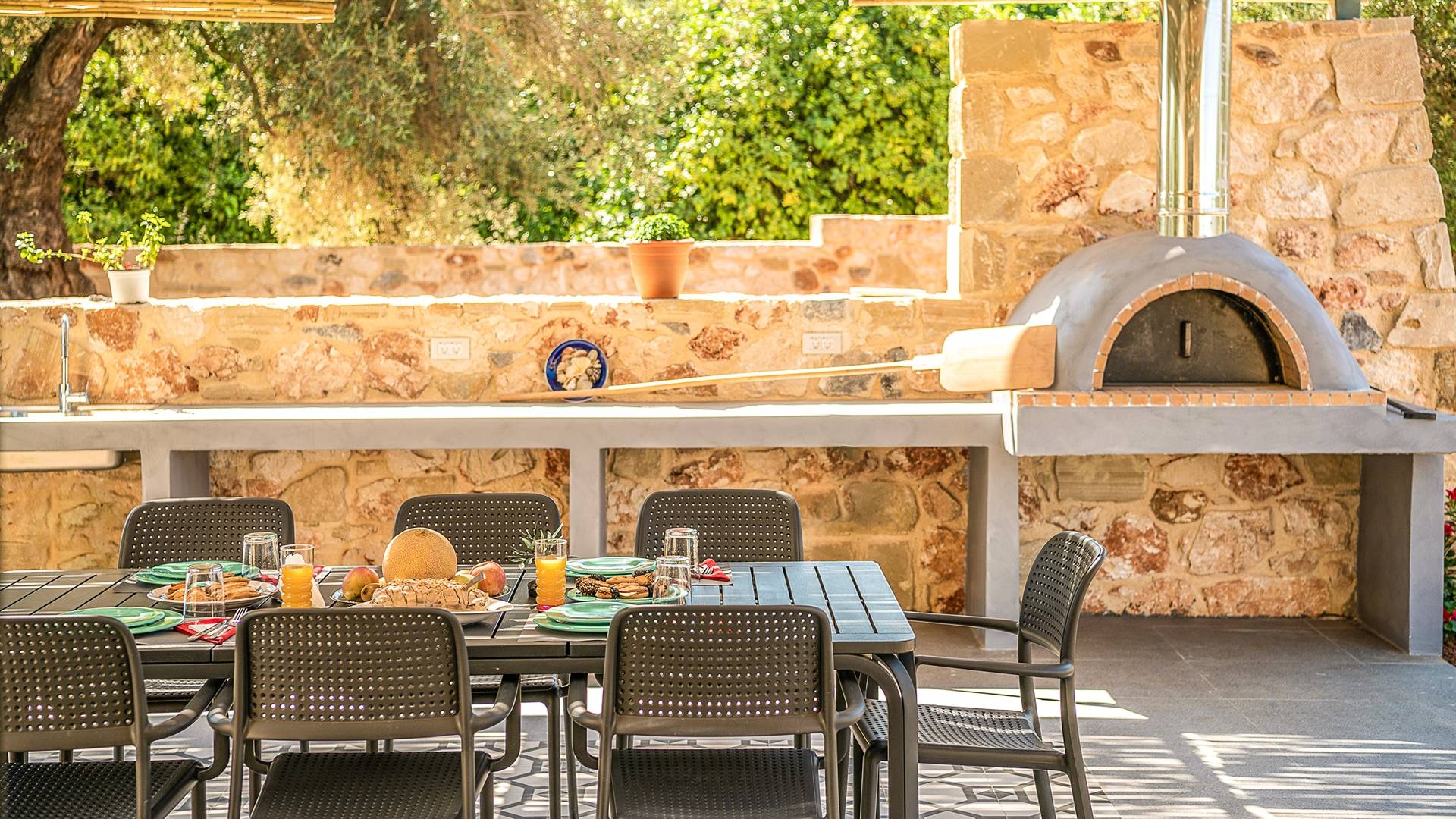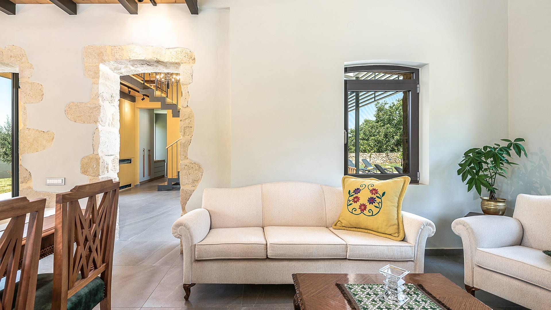 L'intérieur d'Athena Elea comprend 3 chambres doubles, 3 salles de bains, un salon/salle à manger et une cuisine. Dans tout l'espace de la villa, le style moderne rencontre des éléments sélectionnés de la tradition familiale, notamment des meubles en bois fabriqués à la main et des textiles centenaires fabriqués par nos propres arrière-grands-mères. Le terrain de 1600 m² de la villa comprend des oliviers millénaires, une piscine (40 m²) et beaucoup d'espace pour la détente et les activités familiales. Une caractéristique unique à côté de la villa est un petit sanctuaire rénové, construit par la grand-mère du propriétaire au milieu du XXe siècle. Juste à côté de la parcelle de la villa, nous entretenons un verger biologique de 4 500 m², dans lequel les clients sont invités à se promener et à explorer les arbres fruitiers et les légumes de saison.