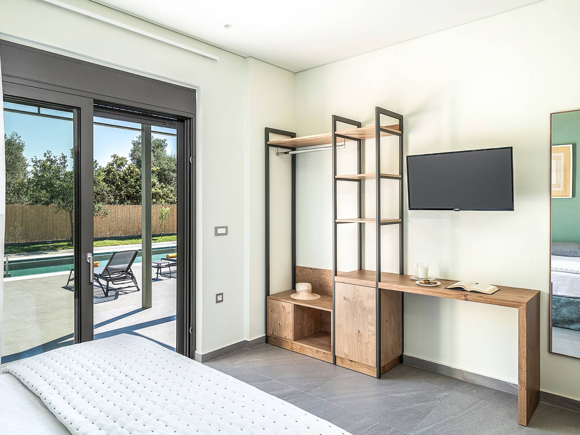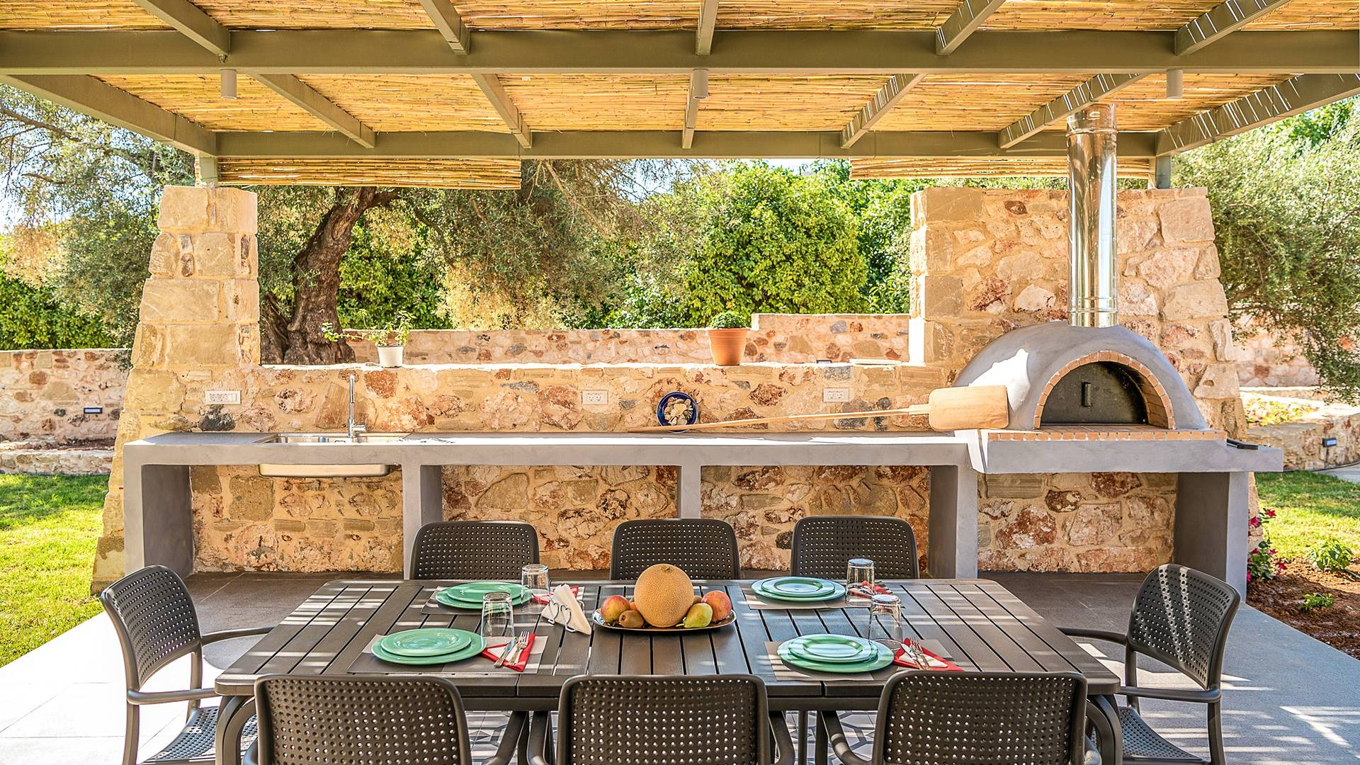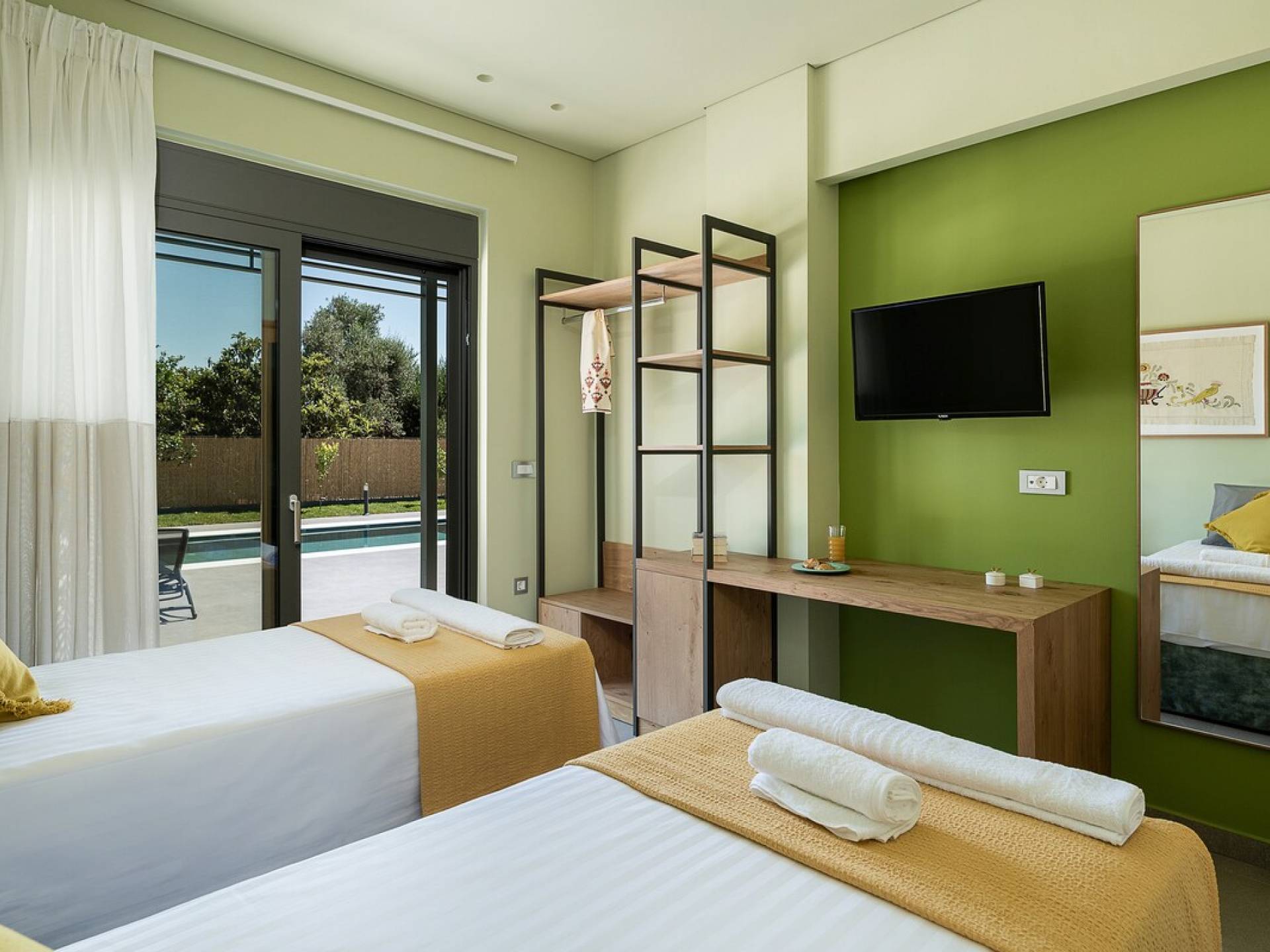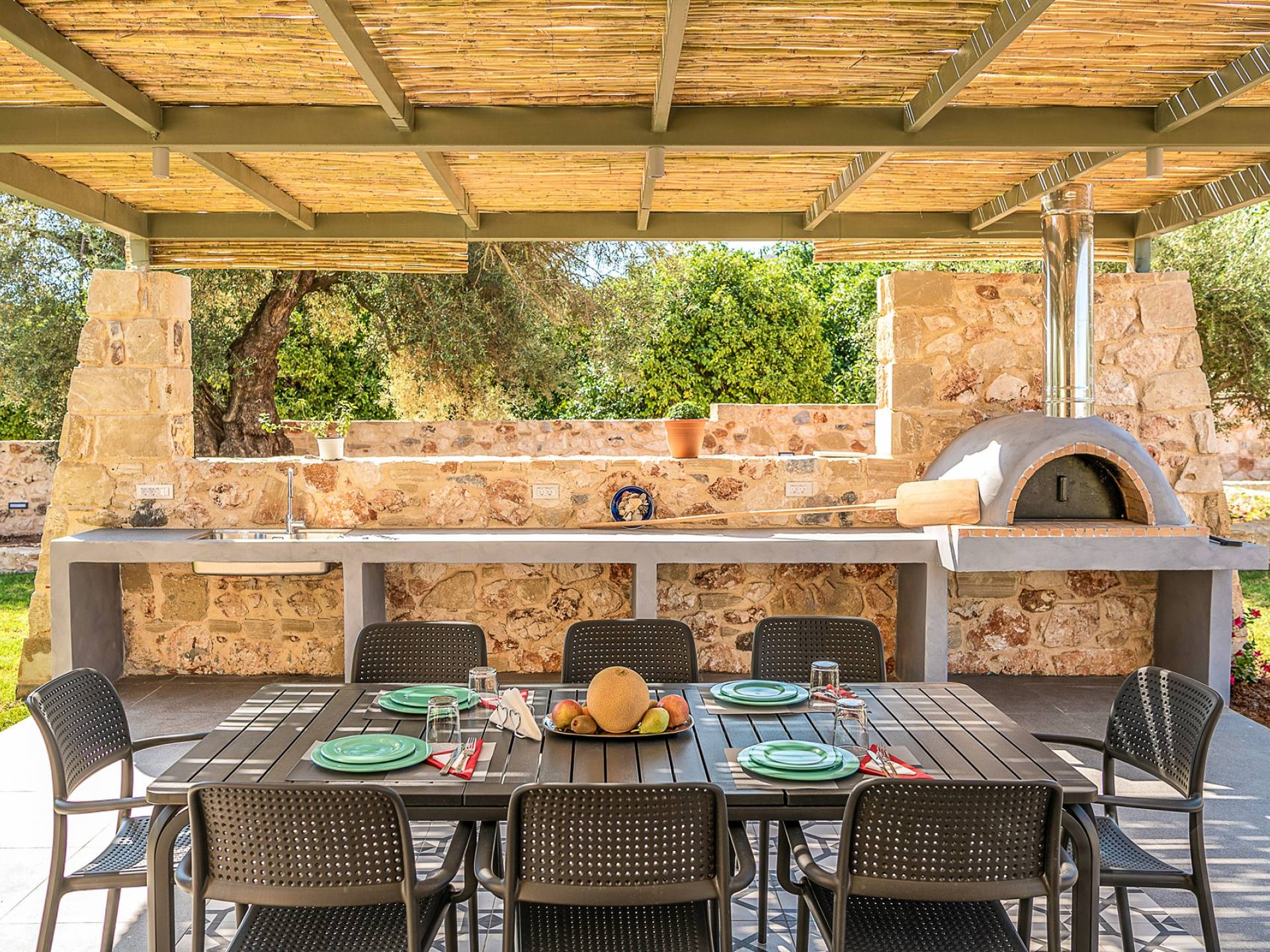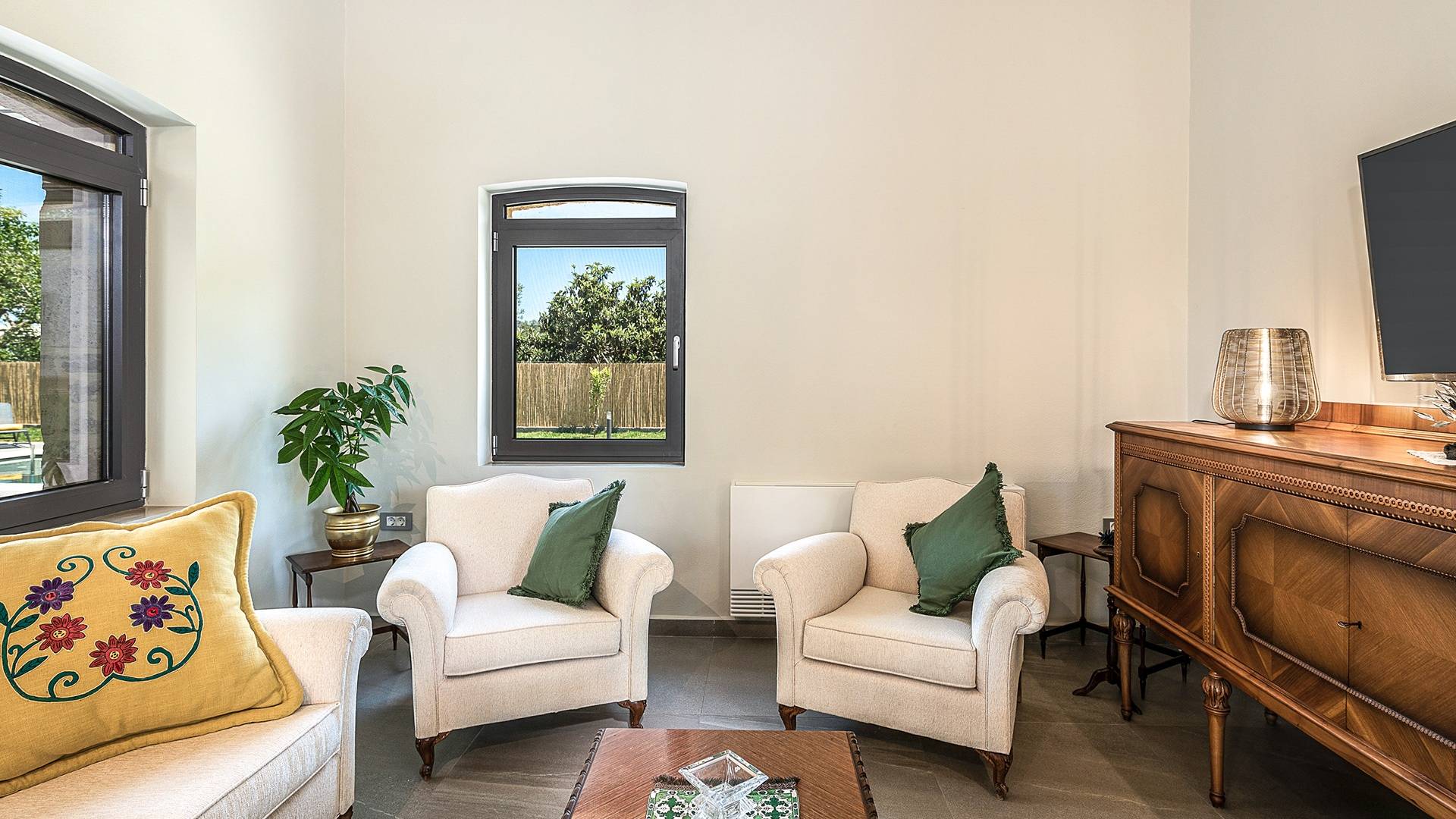 L'intérieur d'Athena Elea comprend 3 chambres doubles, 3 salles de bains, un salon/salle à manger et une cuisine. Dans tout l'espace de la villa, le style moderne rencontre des éléments sélectionnés de la tradition familiale, notamment des meubles en bois fabriqués à la main et des textiles centenaires fabriqués par nos propres arrière-grands-mères. Le terrain de 1600 m² de la villa comprend des oliviers millénaires, une piscine (40 m²) et beaucoup d'espace pour la détente et les activités familiales. Une caractéristique unique à côté de la villa est un petit sanctuaire rénové, construit par la grand-mère du propriétaire au milieu du XXe siècle. Juste à côté de la parcelle de la villa, nous entretenons un verger biologique de 4 500 m², dans lequel les clients sont invités à se promener et à explorer les arbres fruitiers et les légumes de saison.