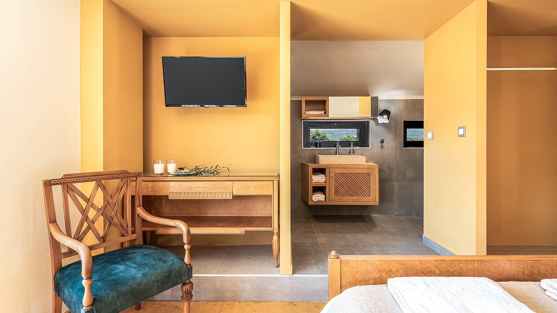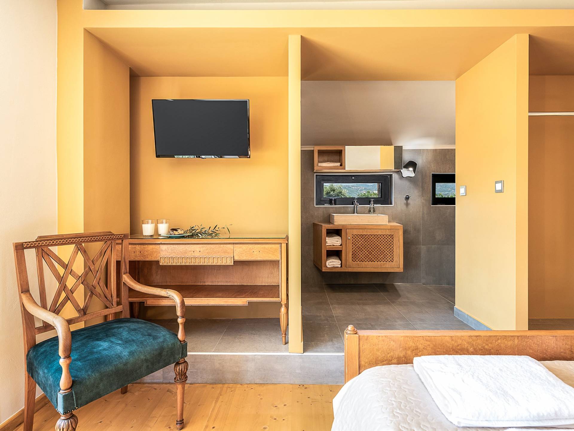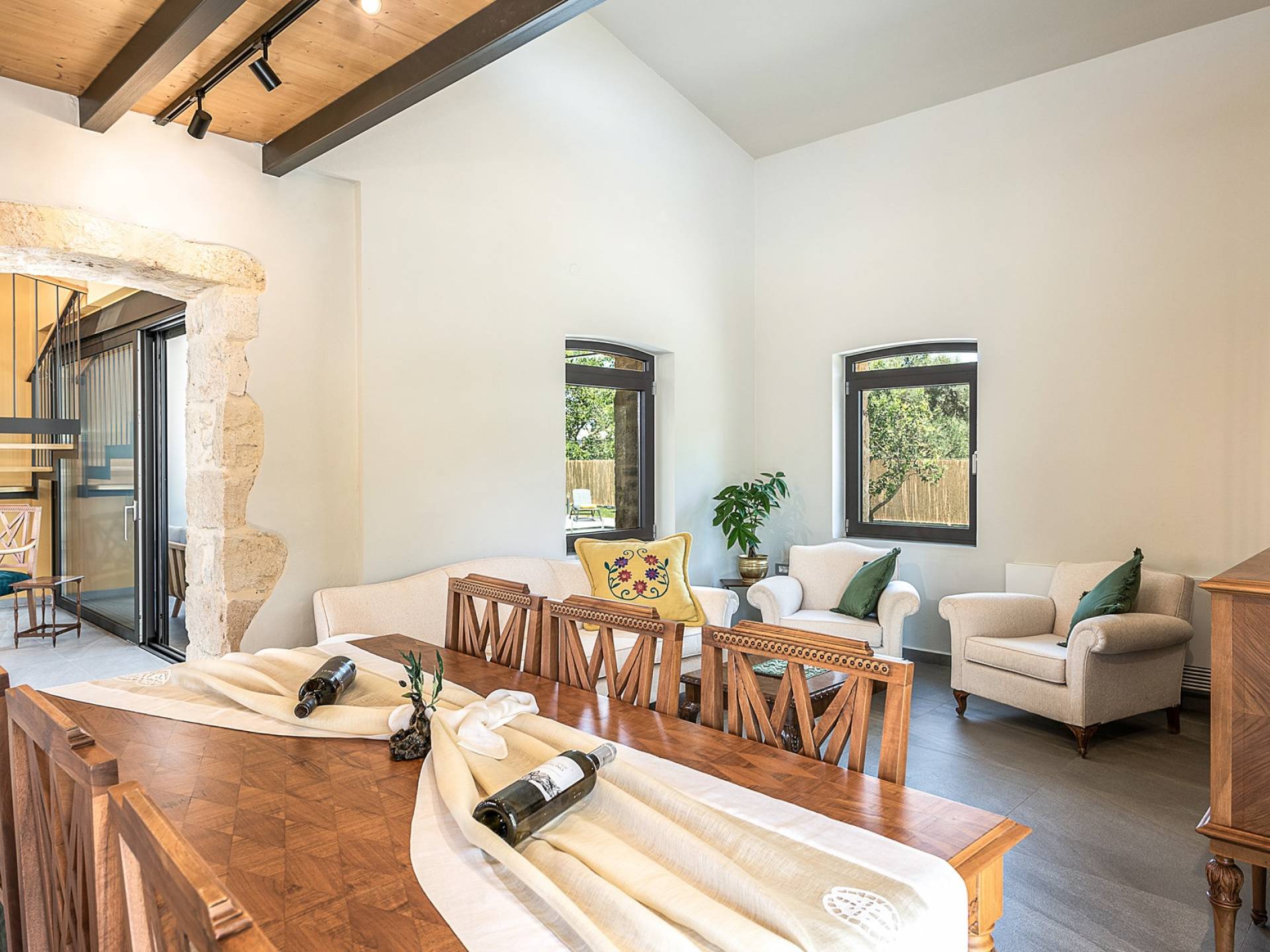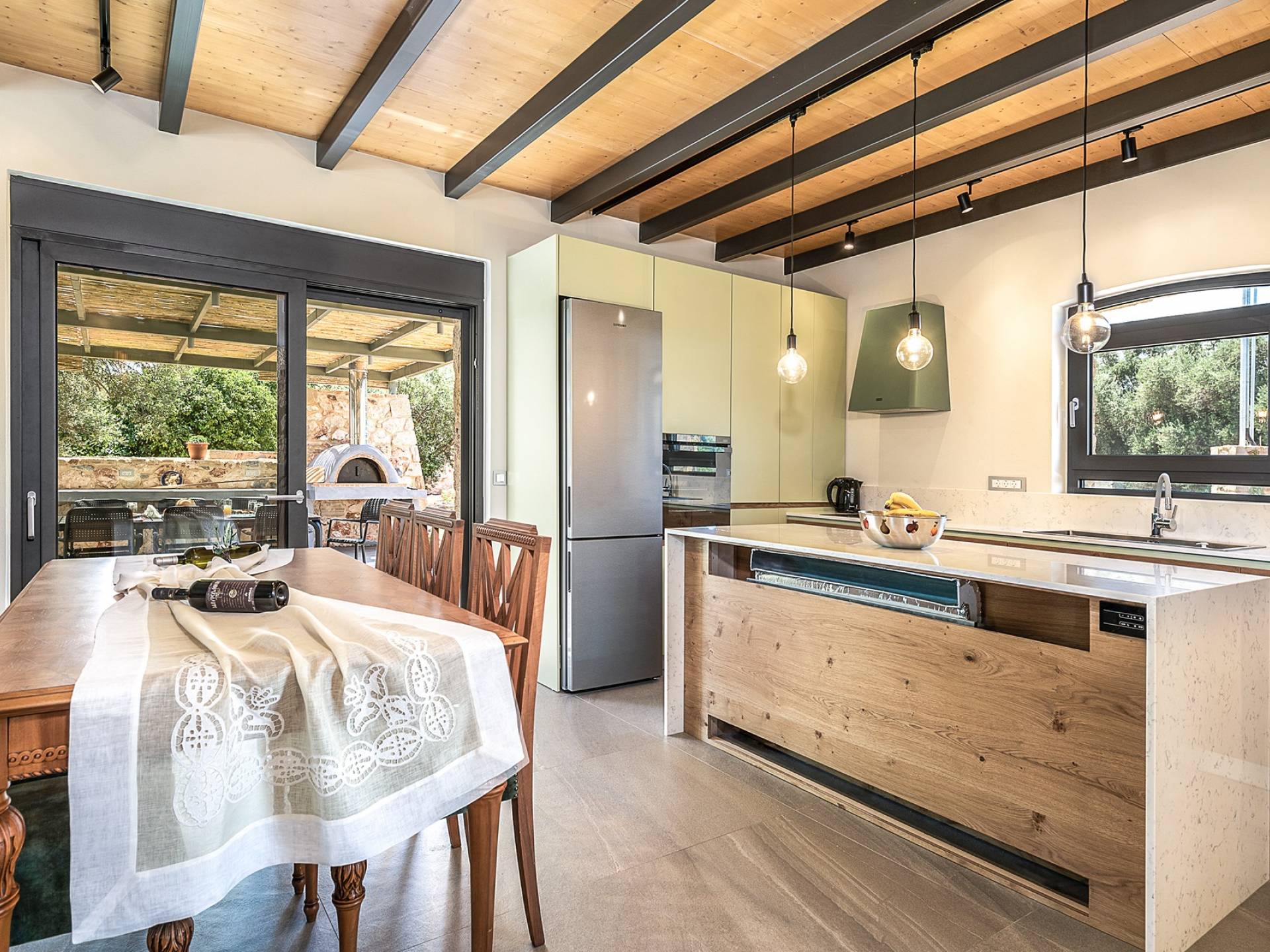 L'intérieur d'Athena Elea comprend 3 chambres doubles, 3 salles de bains, un salon/salle à manger et une cuisine. Dans tout l'espace de la villa, le style moderne rencontre des éléments sélectionnés de la tradition familiale, notamment des meubles en bois fabriqués à la main et des textiles centenaires fabriqués par nos propres arrière-grands-mères. Le terrain de 1600 m² de la villa comprend des oliviers millénaires, une piscine (40 m²) et beaucoup d'espace pour la détente et les activités familiales. Une caractéristique unique à côté de la villa est un petit sanctuaire rénové, construit par la grand-mère du propriétaire au milieu du XXe siècle. Juste à côté de la parcelle de la villa, nous entretenons un verger biologique de 4 500 m², dans lequel les clients sont invités à se promener et à explorer les arbres fruitiers et les légumes de saison.