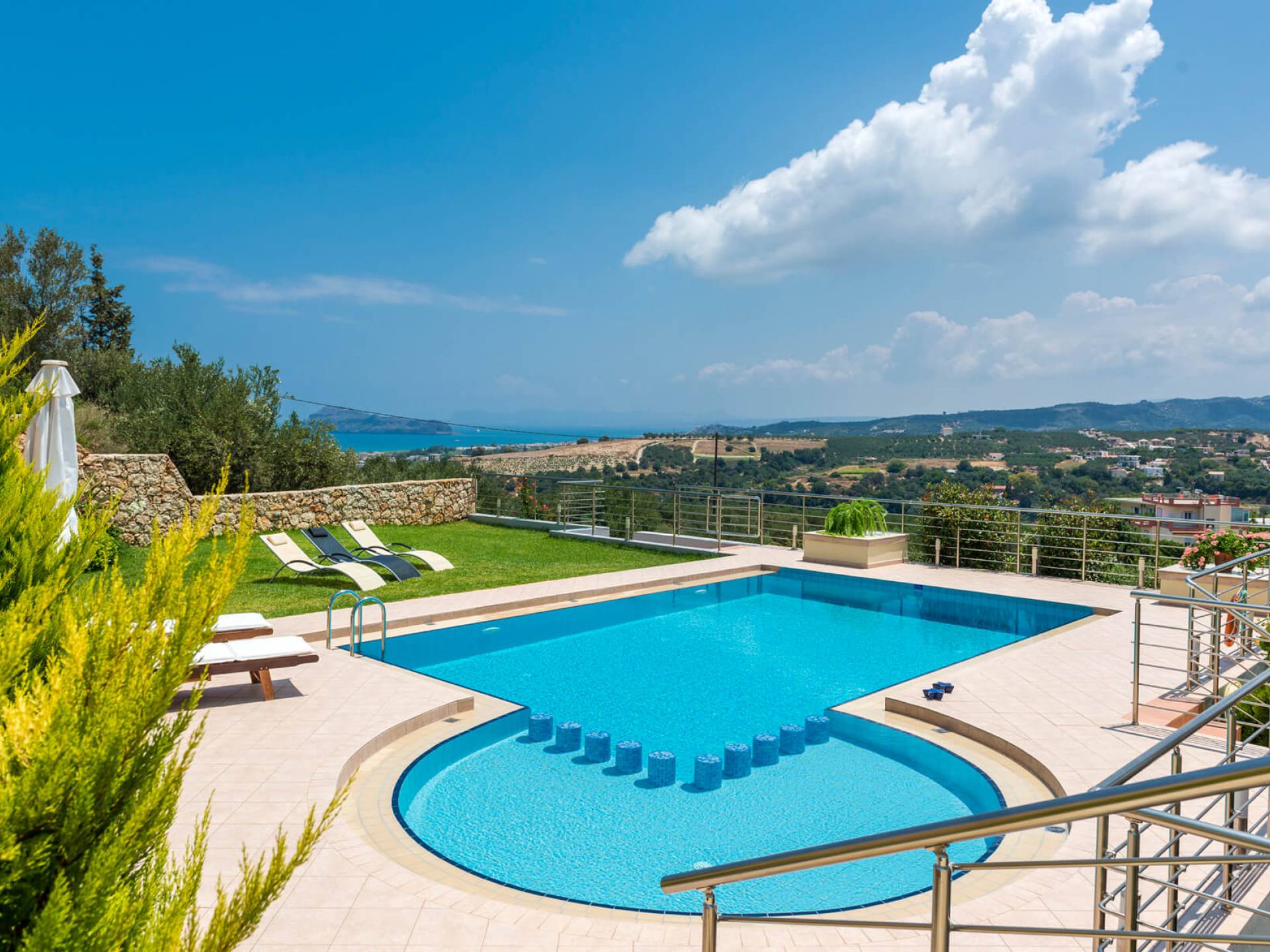Athinas Villa Chania dispose de grands espaces de vie, de deux cuisines entièrement équipées, de trois chambres avec salles de bains privatives, d'un studio indépendant, d'une piscine privée, de grandes vérandas avec vue sur la mer et d'un espace barbecue. L'élégante villa est un mélange de design traditionnel (extérieur) mais moderne et classique (intérieur). Des couleurs intérieures chaudes, une superbe décoration moderne, des détails subtils qui créent une belle atmosphère et toutes les installations nécessaires sont là pour compléter la sensation et l'apparence du luxe.