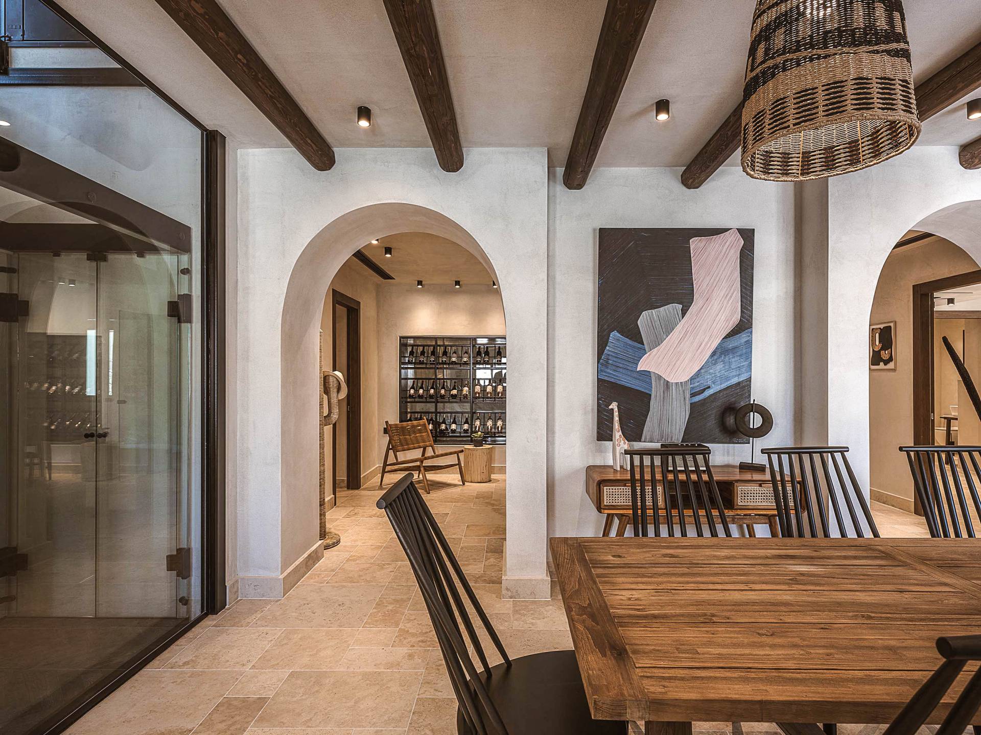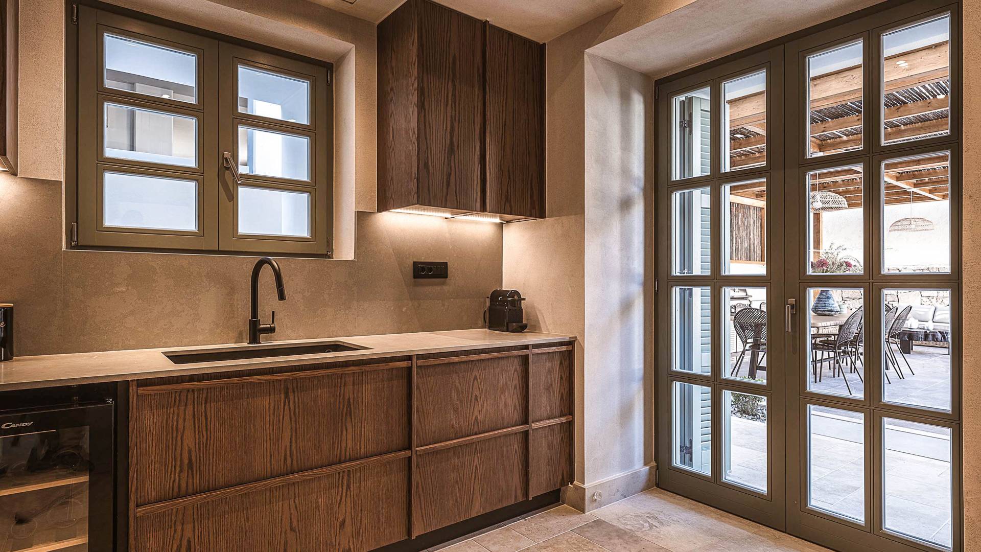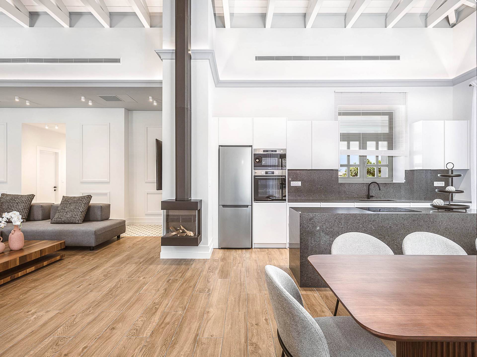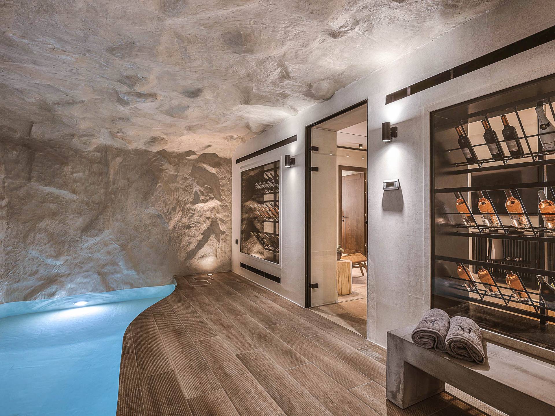 En entrant dans la villa au rez-de-chaussée, vous trouverez un espace ouvert spacieux avec une cuisine fantastiquement équipée qui est le paradis des gourmets. La zone est complétée par une salle à manger et un salon avec une grande télévision connectée à écran plat avec chaînes satellite et une cheminée à gaz. Le luxe et le design moderne complètent le décor de l'architecture contemporaine et des produits de haute qualité. La palette neutre utilisée ici crée le décor parfait pour une escapade sereine loin du rythme effréné de la vie, rendant votre séjour inoubliable. À l'étage inférieur se trouve une piscine intérieure qui offre le confort ultime et à côté de la piscine se trouve une cave élégante avec des détails élégants remplis de bouteilles de vin pour les connaisseurs qui aiment profiter de leurs bouteilles fraîches à la température idéale. Ensuite, la salle à manger est située dans une deuxième cuisine avec tous les appareils et commodités nécessaires où vous pourrez préparer votre repas et choisir un bon verre de vin. Des moments inoubliables et des journées sans soucis !