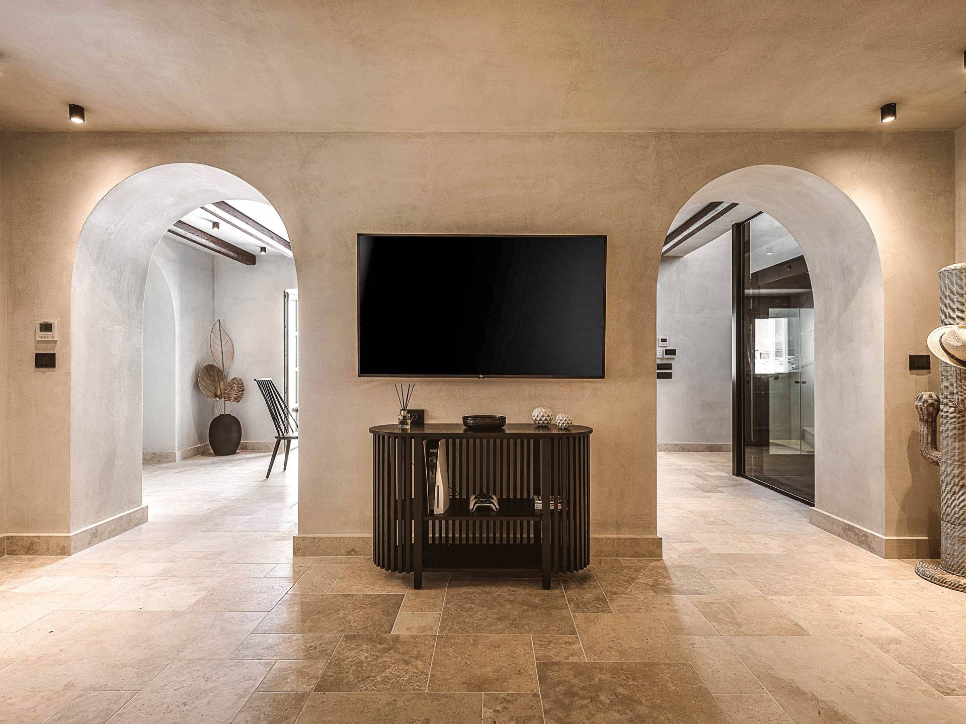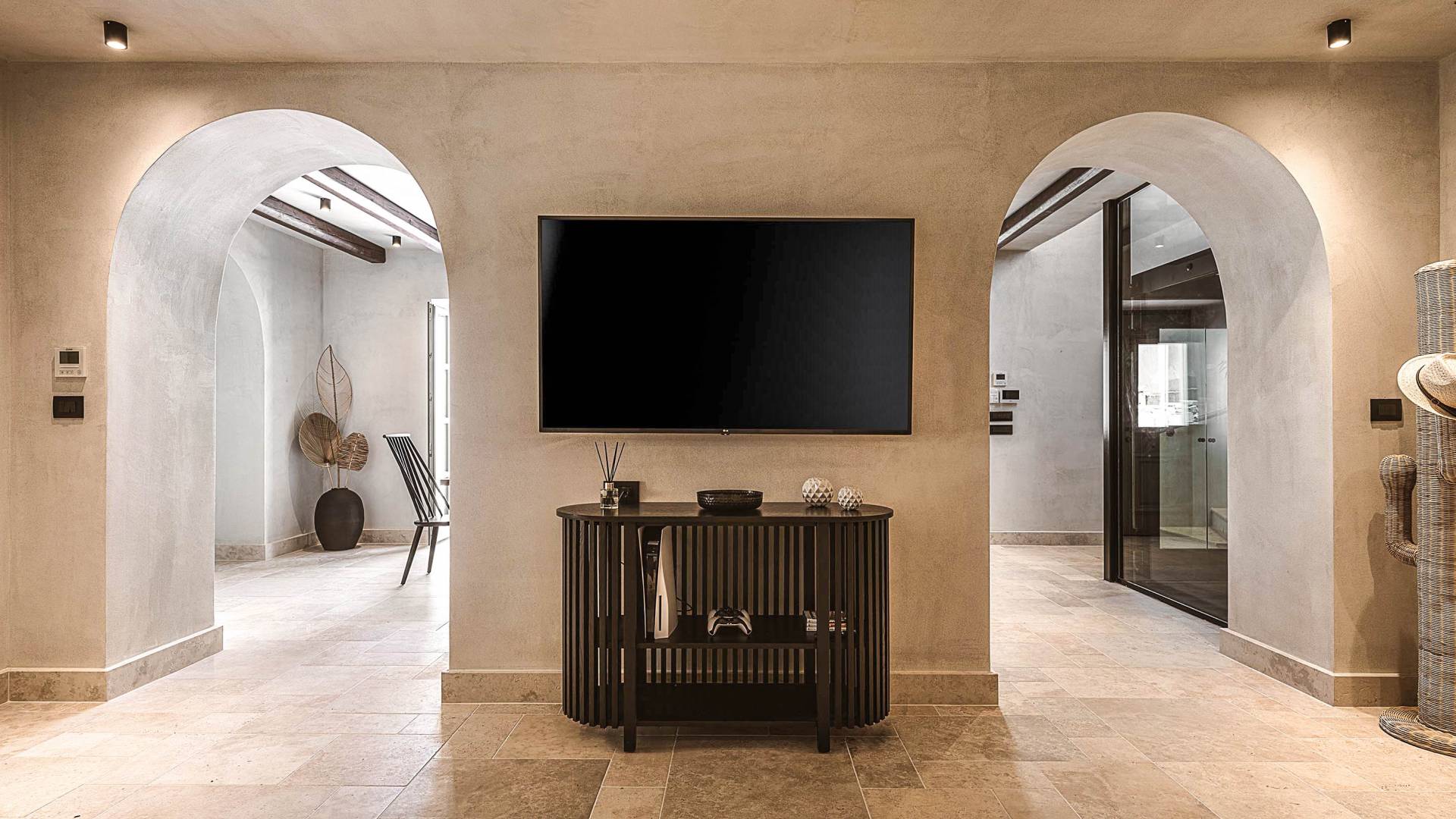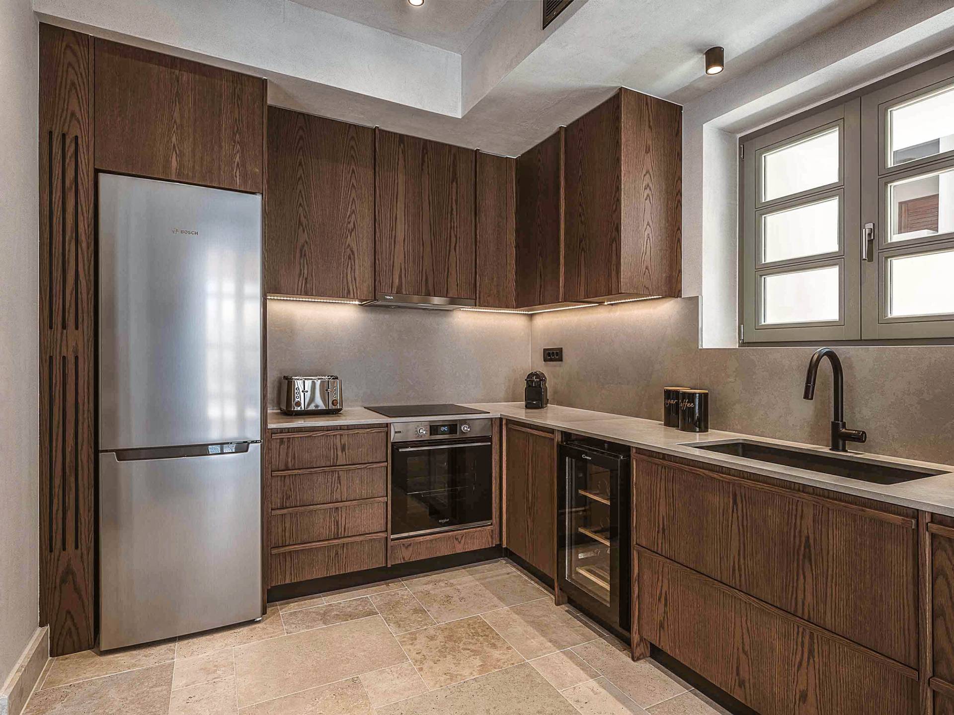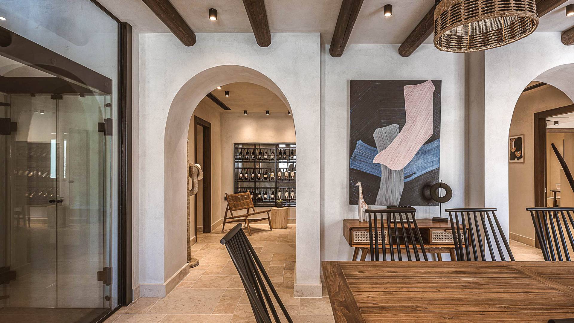 En entrant dans la villa au rez-de-chaussée, vous trouverez un espace ouvert spacieux avec une cuisine fantastiquement équipée qui est le paradis des gourmets. La zone est complétée par une salle à manger et un salon avec une grande télévision connectée à écran plat avec chaînes satellite et une cheminée à gaz. Le luxe et le design moderne complètent le décor de l'architecture contemporaine et des produits de haute qualité. La palette neutre utilisée ici crée le décor parfait pour une escapade sereine loin du rythme effréné de la vie, rendant votre séjour inoubliable. À l'étage inférieur se trouve une piscine intérieure qui offre le confort ultime et à côté de la piscine se trouve une cave élégante avec des détails élégants remplis de bouteilles de vin pour les connaisseurs qui aiment profiter de leurs bouteilles fraîches à la température idéale. Ensuite, la salle à manger est située dans une deuxième cuisine avec tous les appareils et commodités nécessaires où vous pourrez préparer votre repas et choisir un bon verre de vin. Des moments inoubliables et des journées sans soucis !