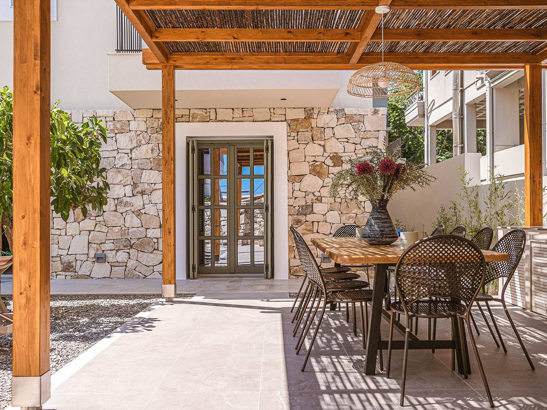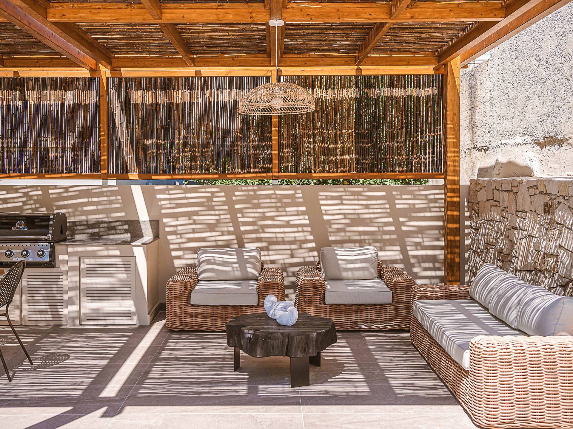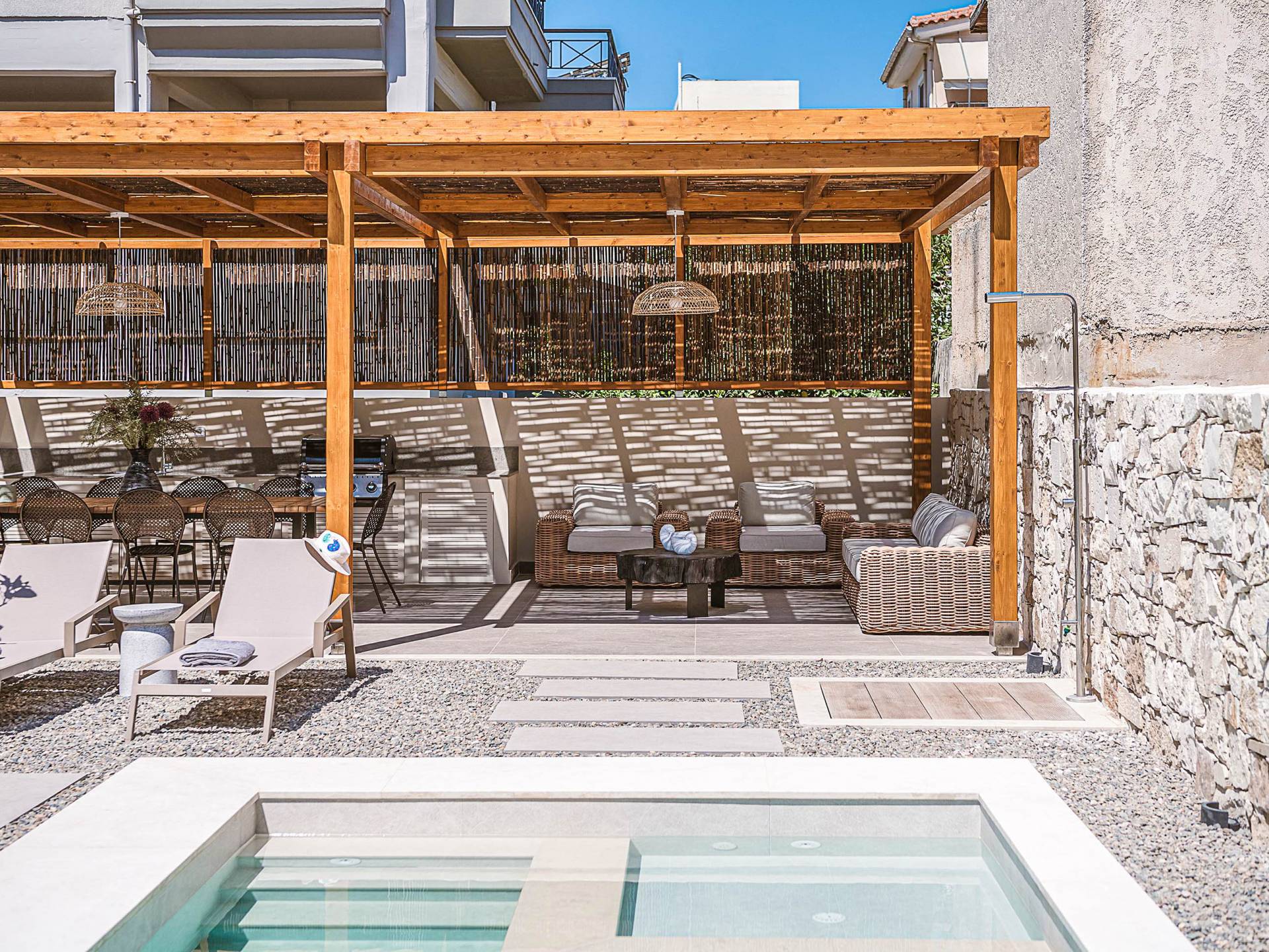 Installations extérieures : y a-t-il un meilleur endroit pour vous pendant les vacances d'été plutôt que de vous allonger au bord de la piscine et de faire votre séance de bronzage ? Le jardin arrière convient aux boissons au coucher du soleil et une piscine avec un coin salon avec des canapés en font l'endroit idéal pour se détendre. Assez proche de la piscine se trouve une table à manger pour 10 personnes, un barbecue et des chaises longues pour profiter du soleil et de la brise crétois, de petites choses qui vous impressionneront.