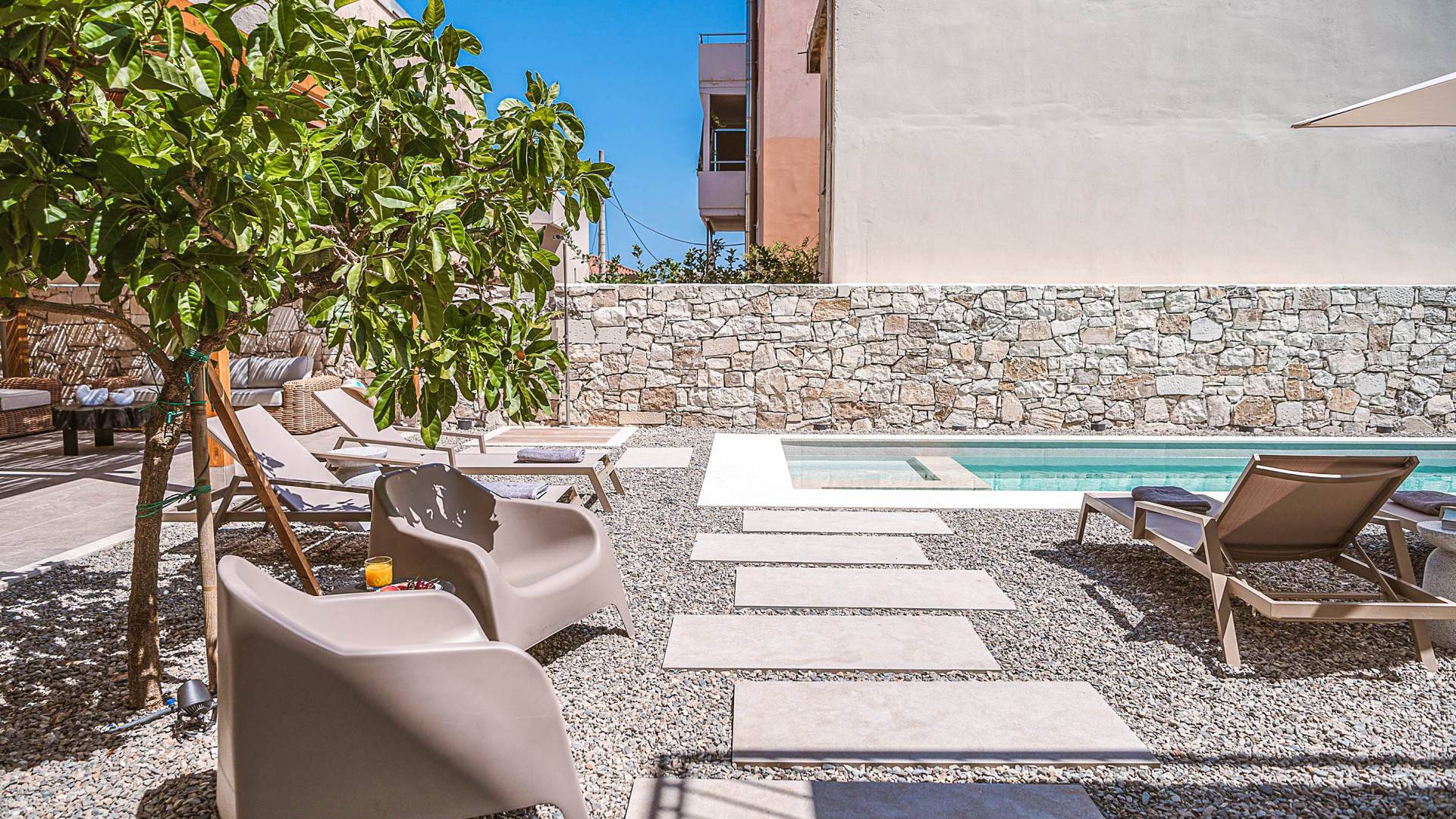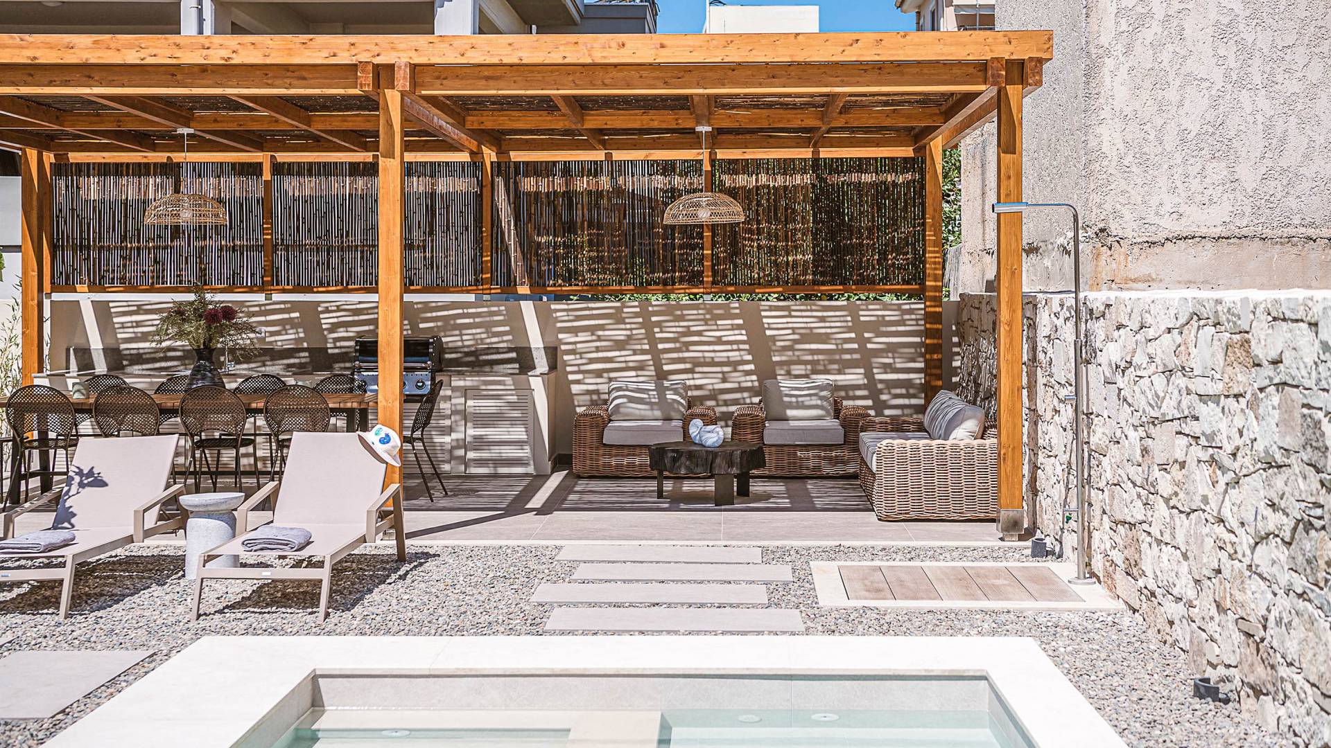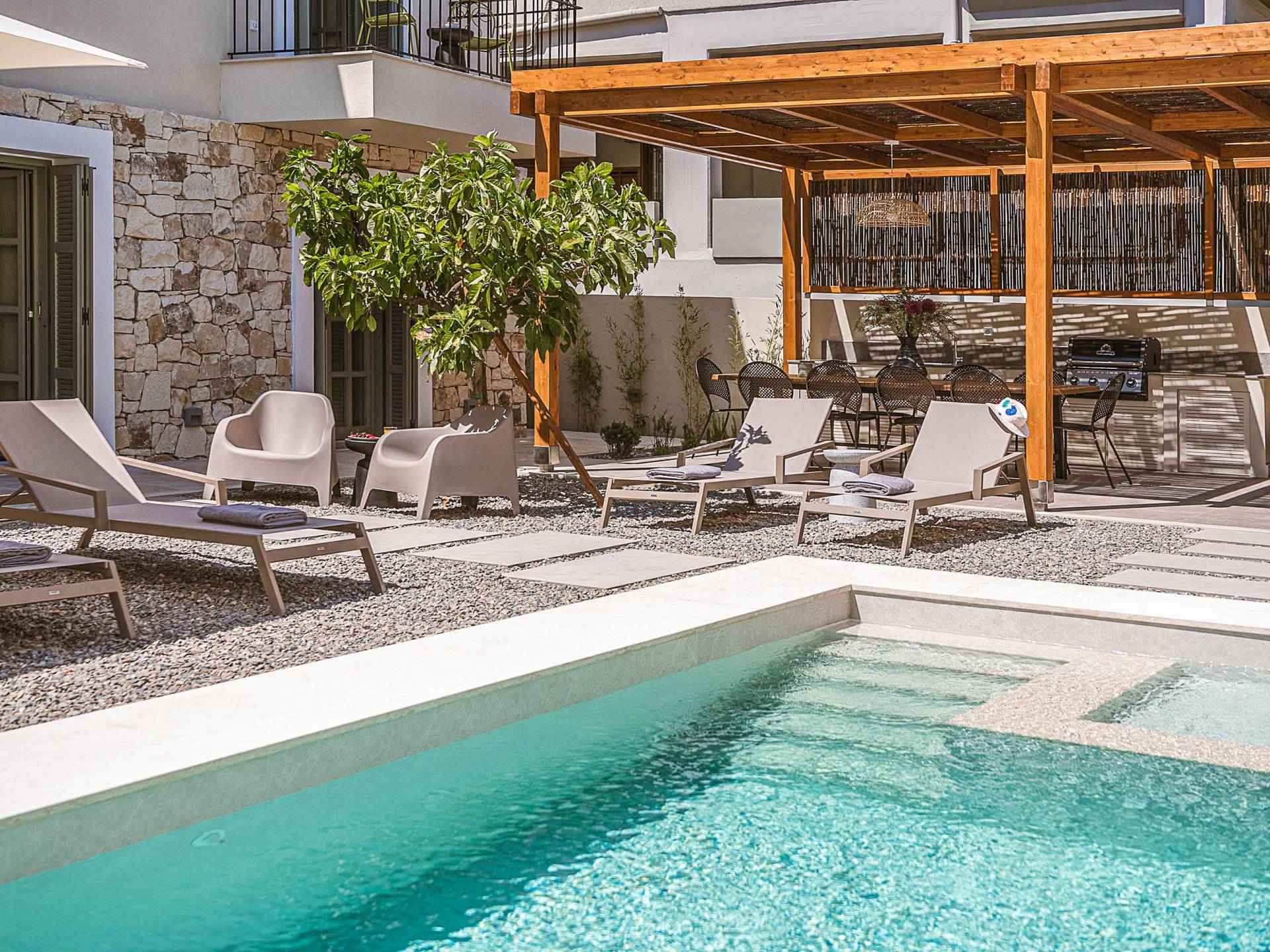 Installations extérieures : y a-t-il un meilleur endroit pour vous pendant les vacances d'été plutôt que de vous allonger au bord de la piscine et de faire votre séance de bronzage ? Le jardin arrière convient aux boissons au coucher du soleil et une piscine avec un coin salon avec des canapés en font l'endroit idéal pour se détendre. Assez proche de la piscine se trouve une table à manger pour 10 personnes, un barbecue et des chaises longues pour profiter du soleil et de la brise crétois, de petites choses qui vous impressionneront.