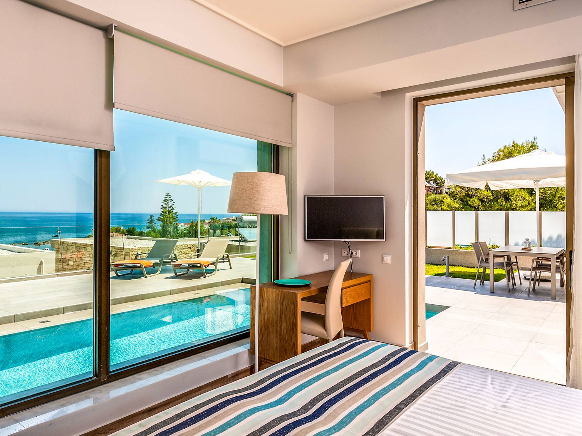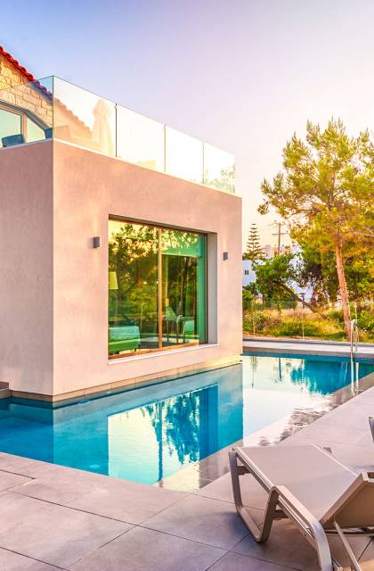 Séjourner dans une villa à Kalamaki, c’est se réveiller au son des vagues et savourer son café du matin face à la mer Égée. Avec piscine privée, terrasse ensoleillée et totale intimité, votre villa devient bien plus qu’un simple hébergement : c’est votre havre de paix.