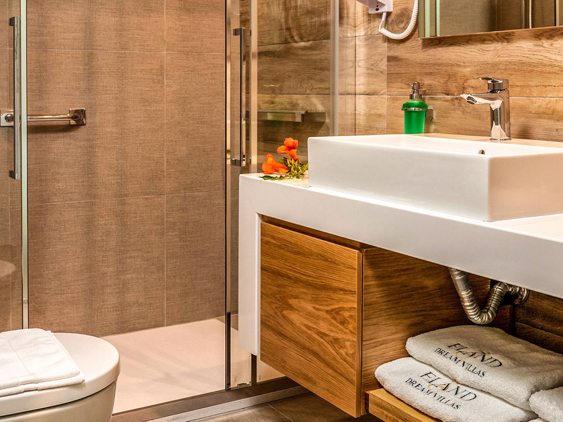 Le complexe Eland Dream Villas se compose de quatre villas nouvellement construites situées sur deux hectares qui descendent vers la mer et permettent aux quatre villas d'avoir une vue illimitée sur le littoral. Chaque villa dispose de baies vitrées permettant à nos clients d'avoir une vue magnifique sur la mer Égée. Les villas récemment achevées ont été construites avec des matériaux de pointe. Ils sont isolés et équipés d'une climatisation automatique à température contrôlée.
